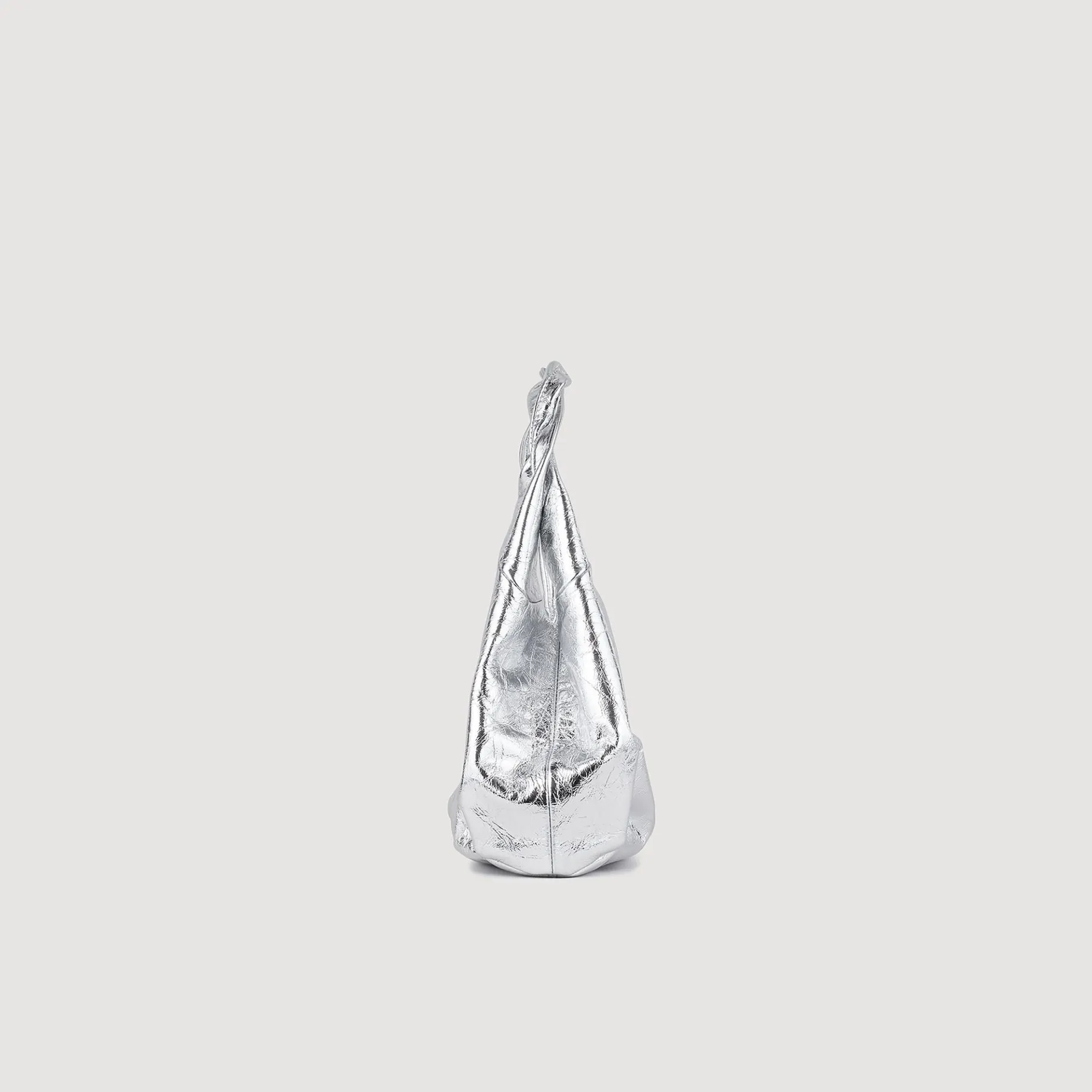 Bolsa Baguete Em Couro Metálico Prateado, Com Alça Curta Trançada Para Carregar Na Mão Ou No Ombro, Fecho Magnético E Bolso Interno.