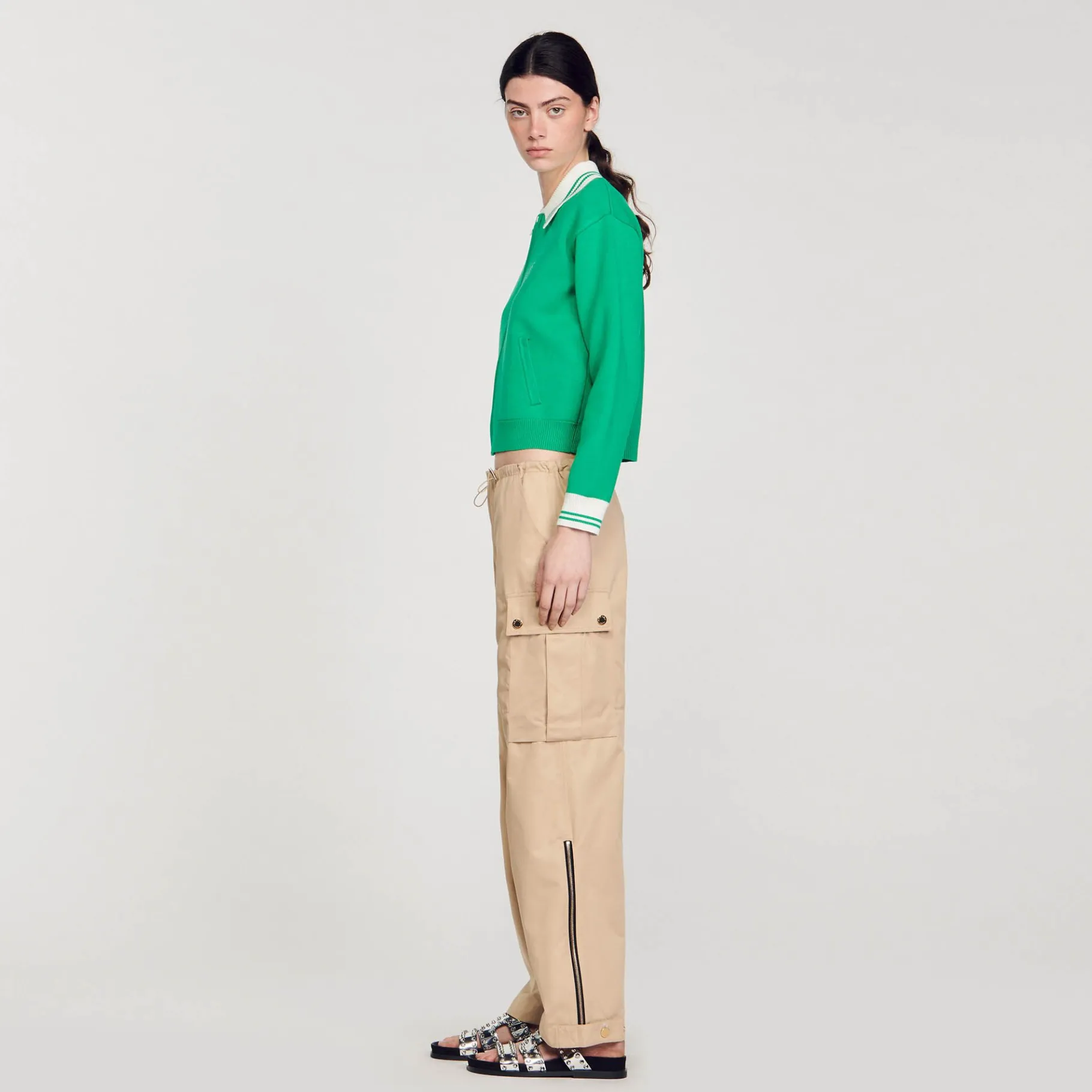 Calças Cargo Em Mistura De Algodão Com Cós Elástico Franzido Com Rolhas, Botões De Pressão Com Iniciais E Aberturas Com Zíper Na Bainha.