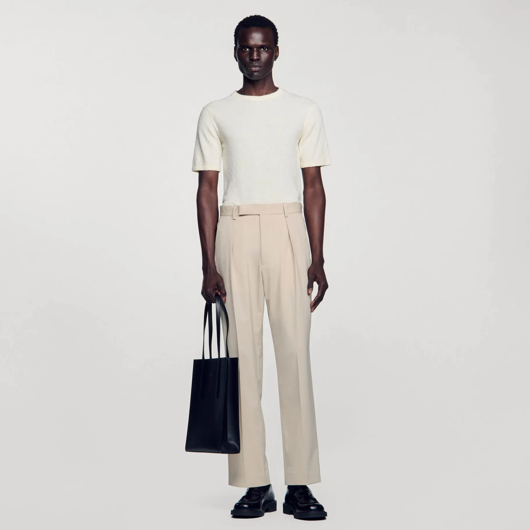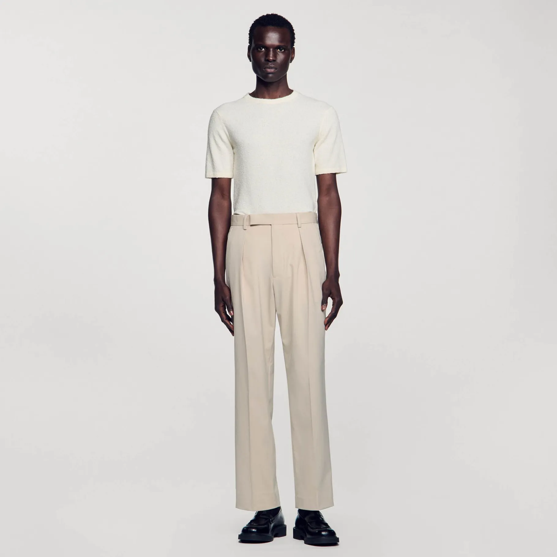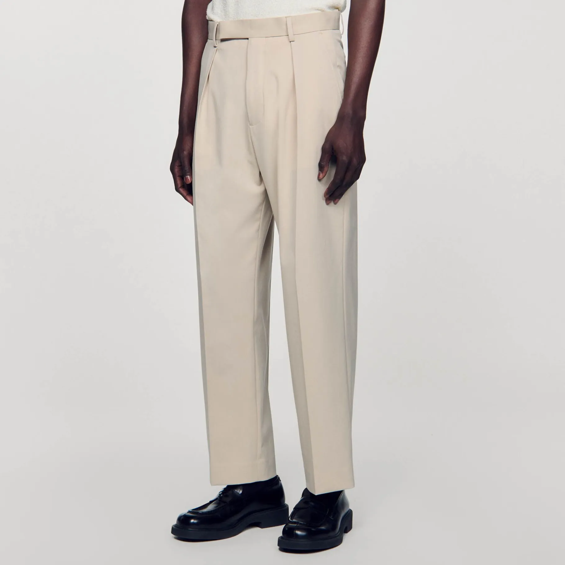 Calças Largas Com Pregas À Frente, Bolsos Italianos E Bolsos De Debrum Atrás.