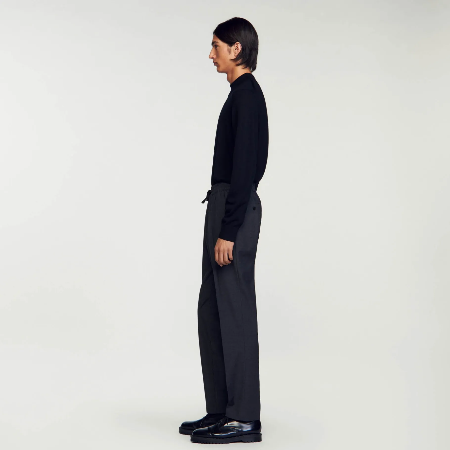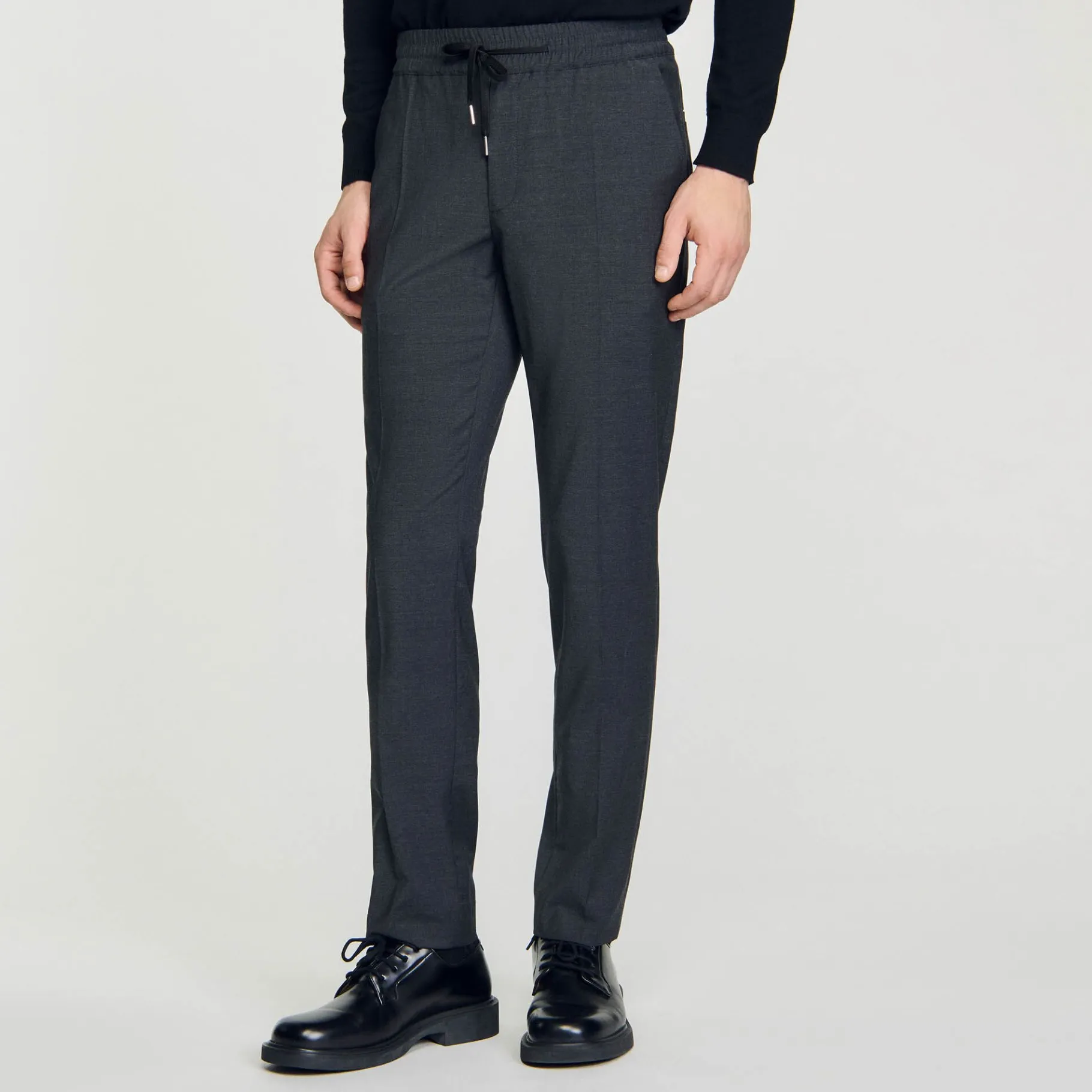 Calça Reta Com Cintura Elástica, Cordão E Bolsos.