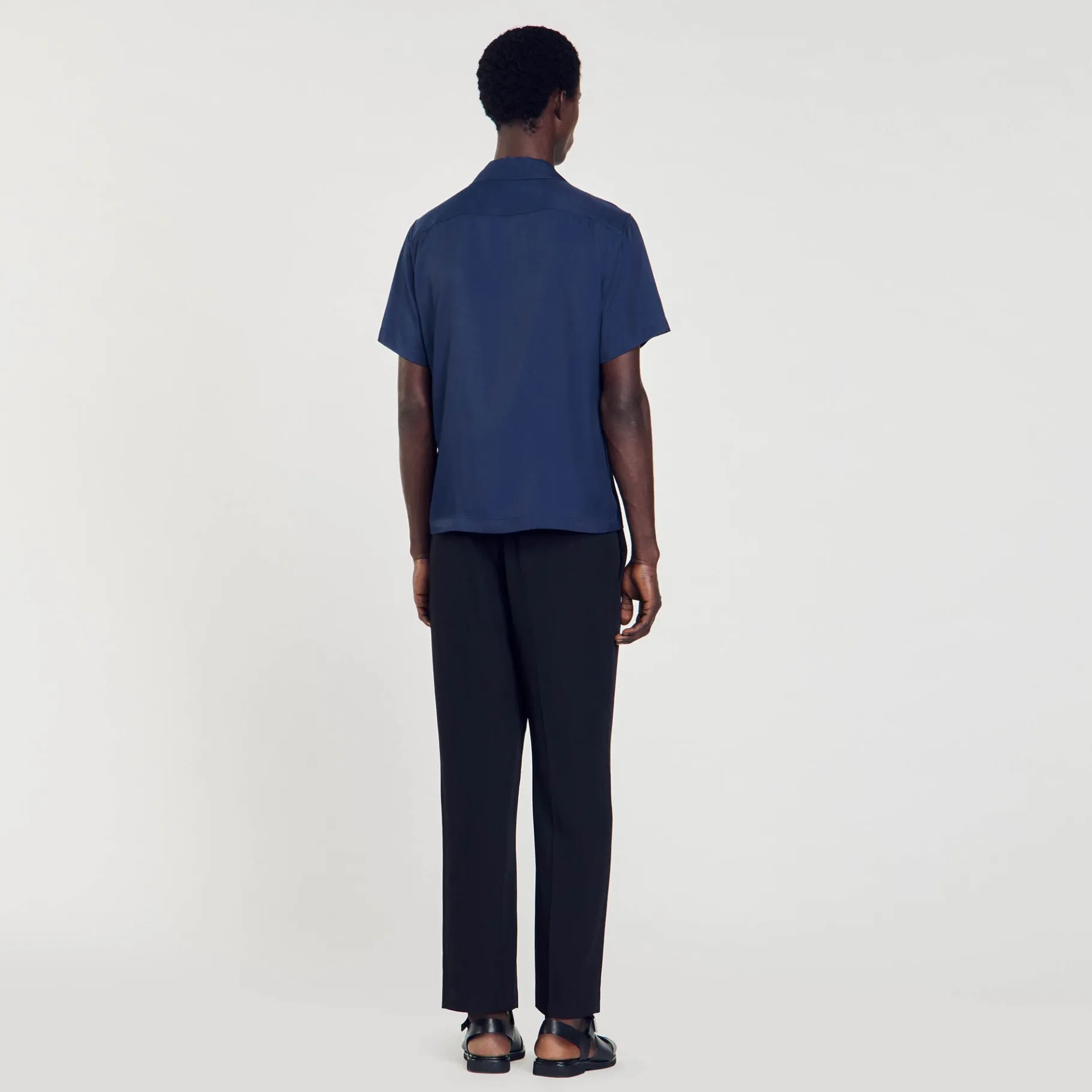 Camisa De Manga Curta Com Gola Italiana E Fecho De Botão.