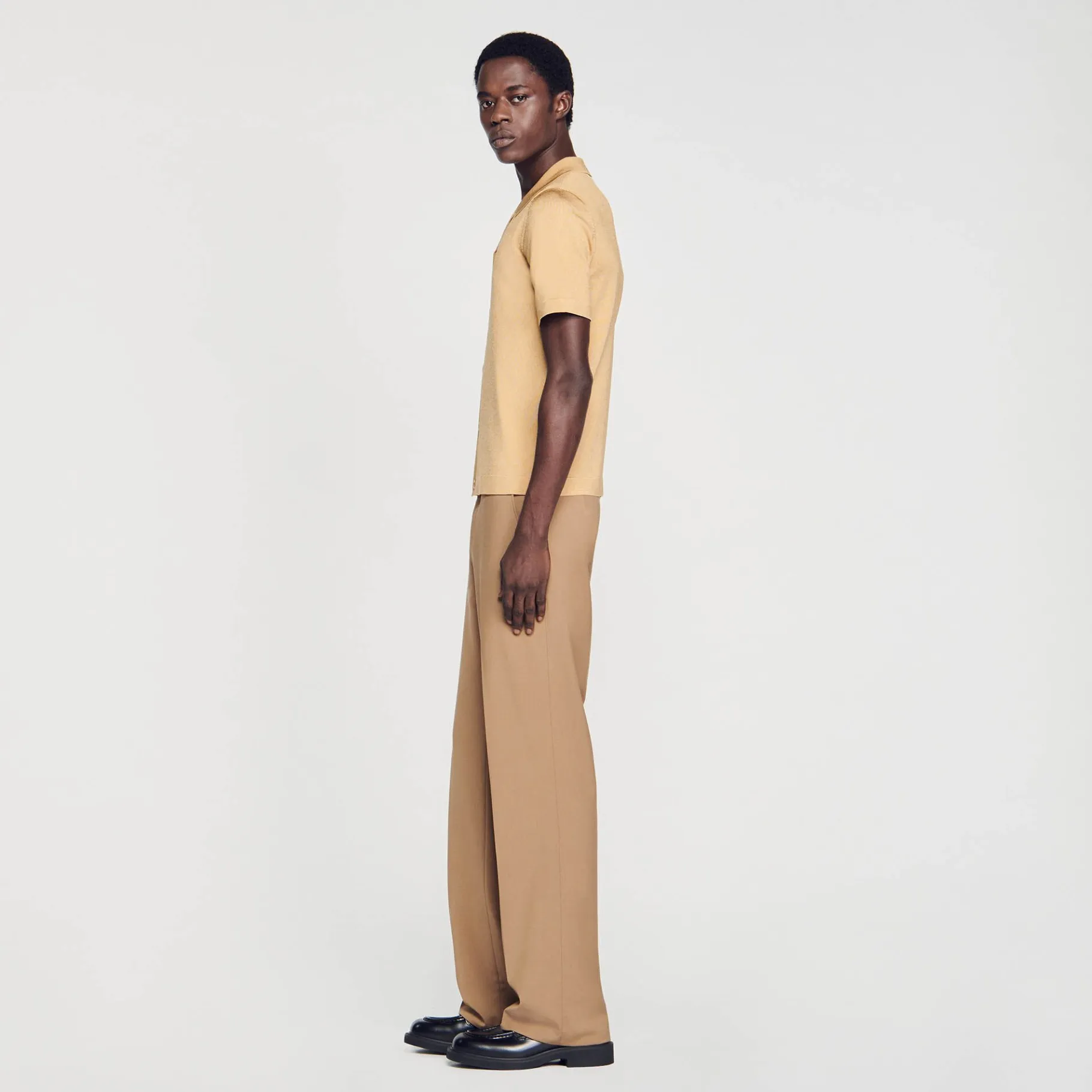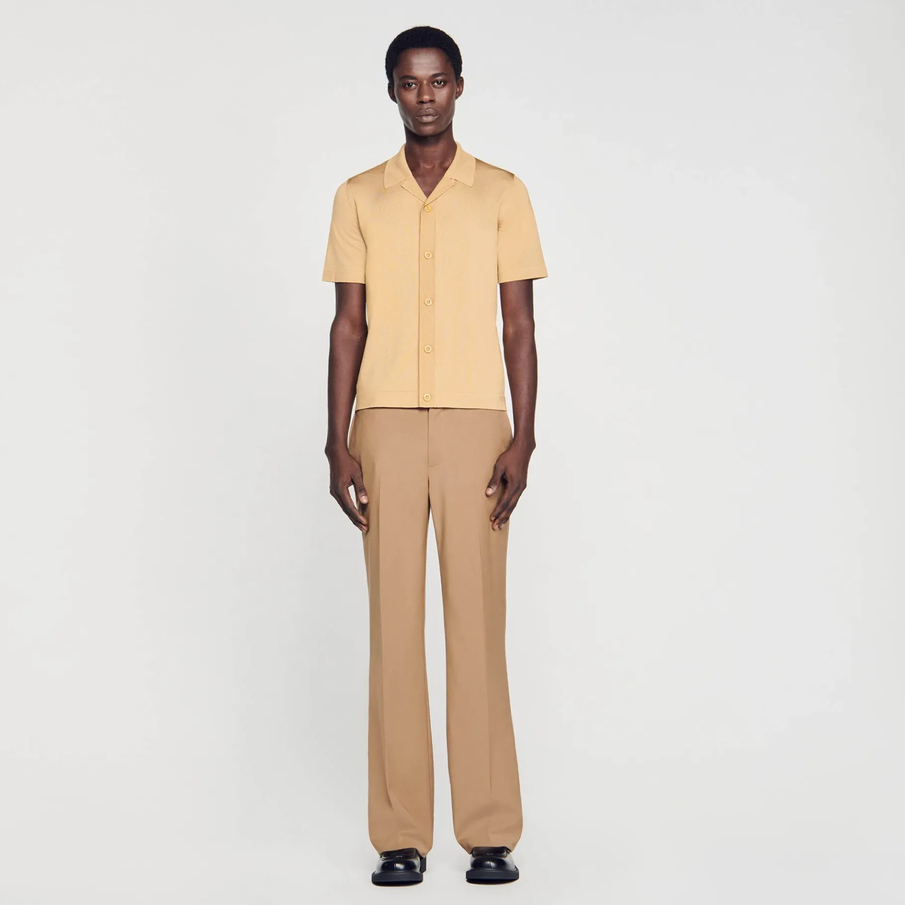 Camisa Fluida De Manga Curta E Gola Estilo Tubarão, Com Fecho De Botão.