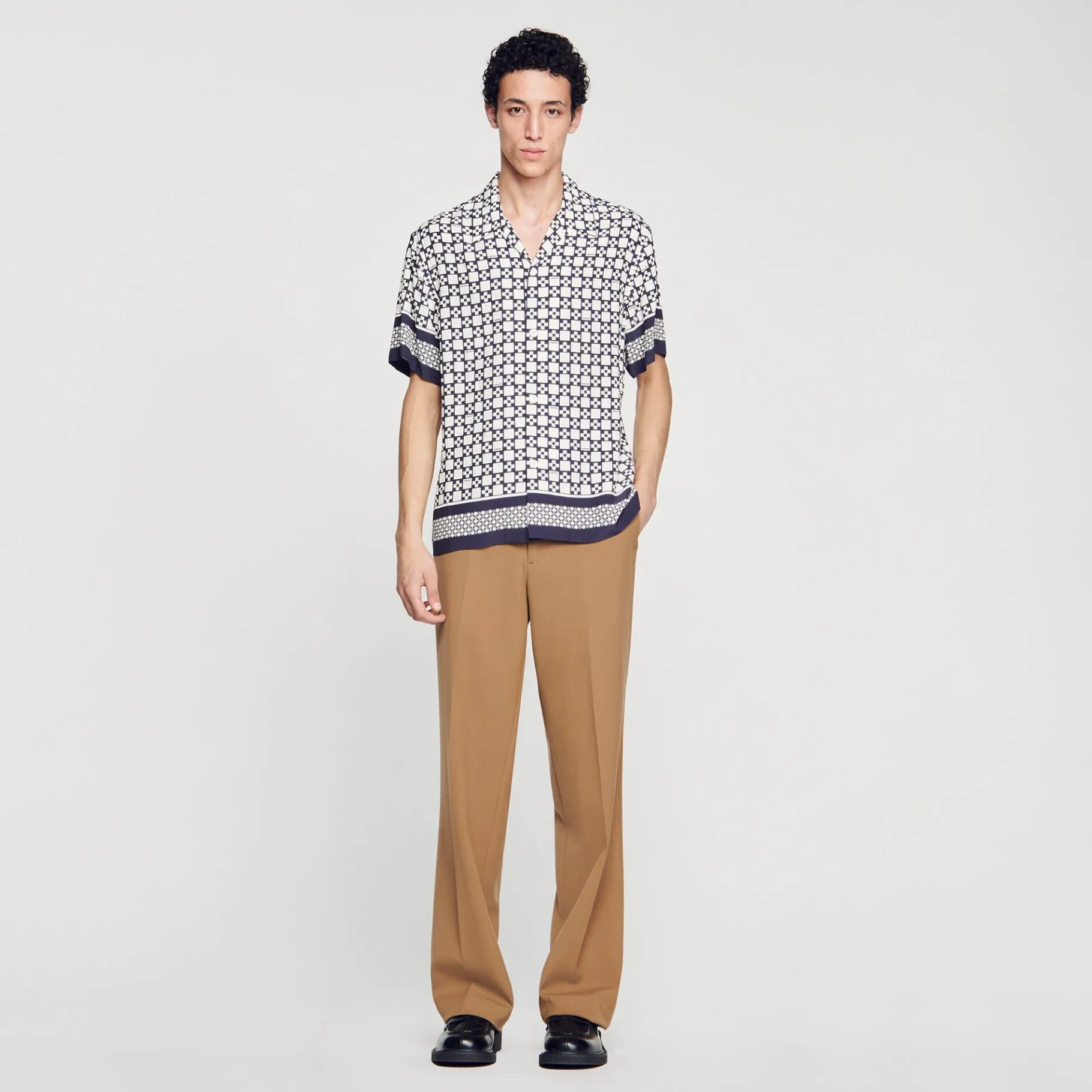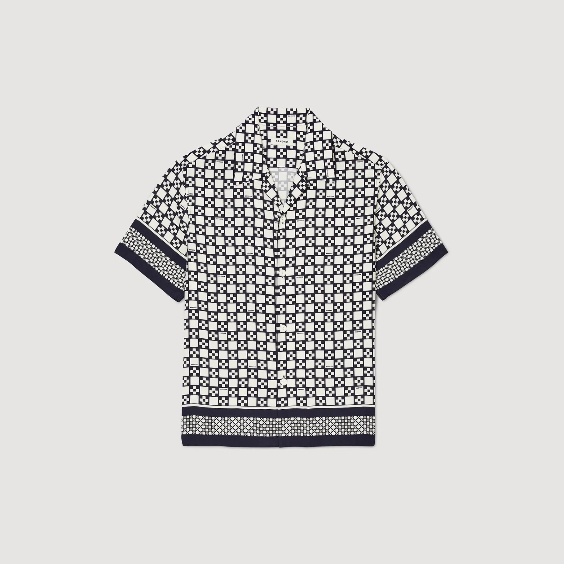 Camisa Fluida Com Estampa Square Cross, Gola Italiana, Manga Curta E Fecho De Botão.