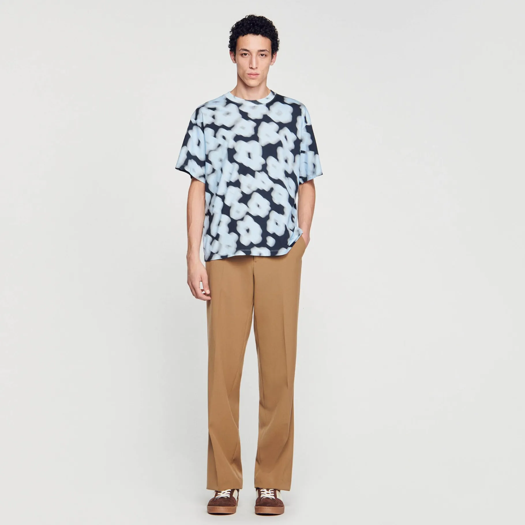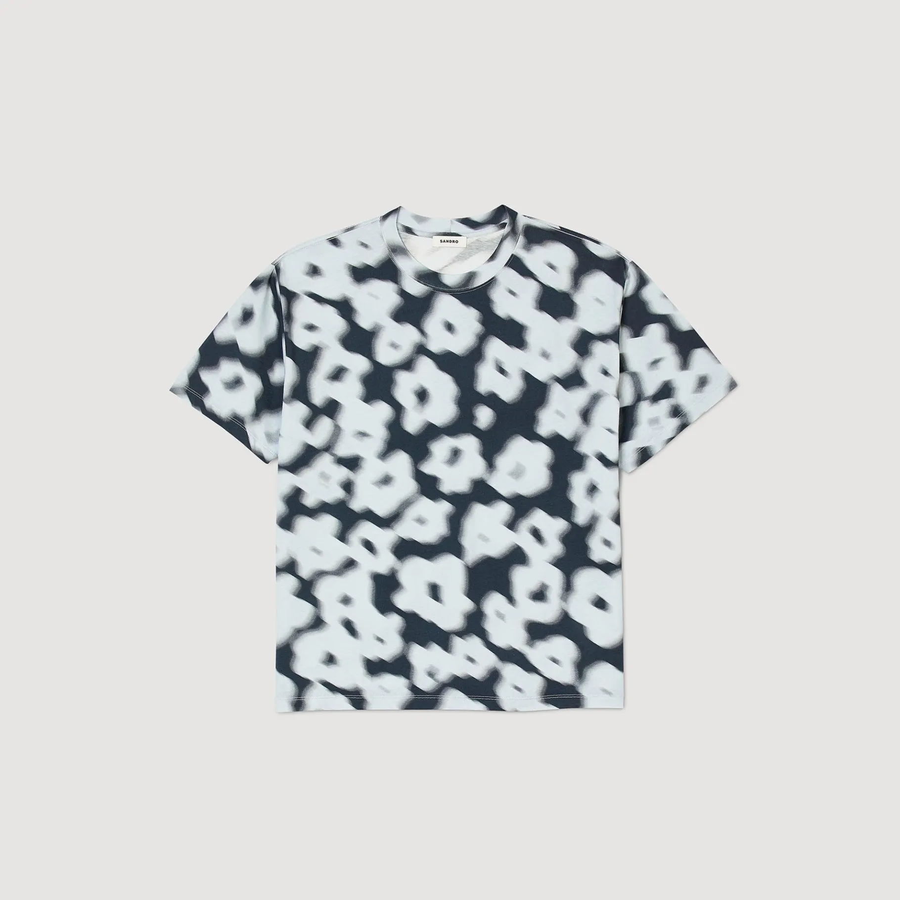 T-Shirt De Algodão Com Gola Redonda Clássica, Mangas Curtas E Decorada Com Estampado De Flores Desbotadas.