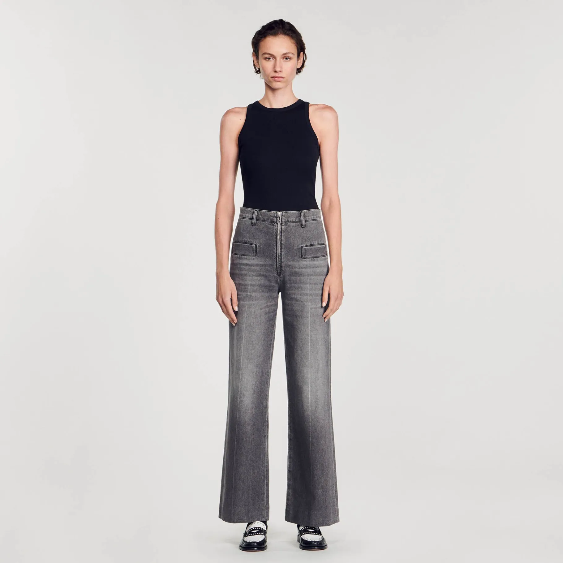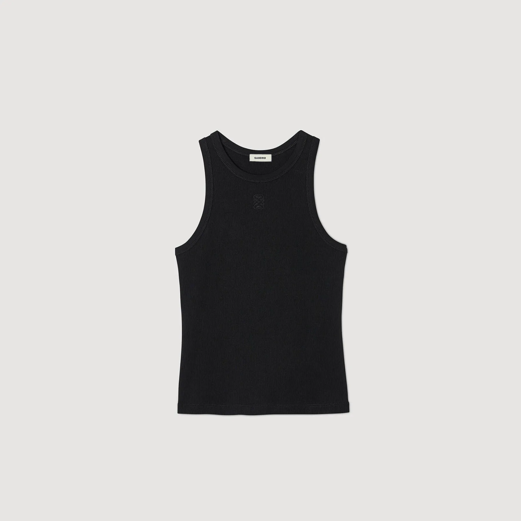 T-Shirt Sem Mangas Com Decote Redondo, Cavas Americanas E Pormenor Bordado No Peito.