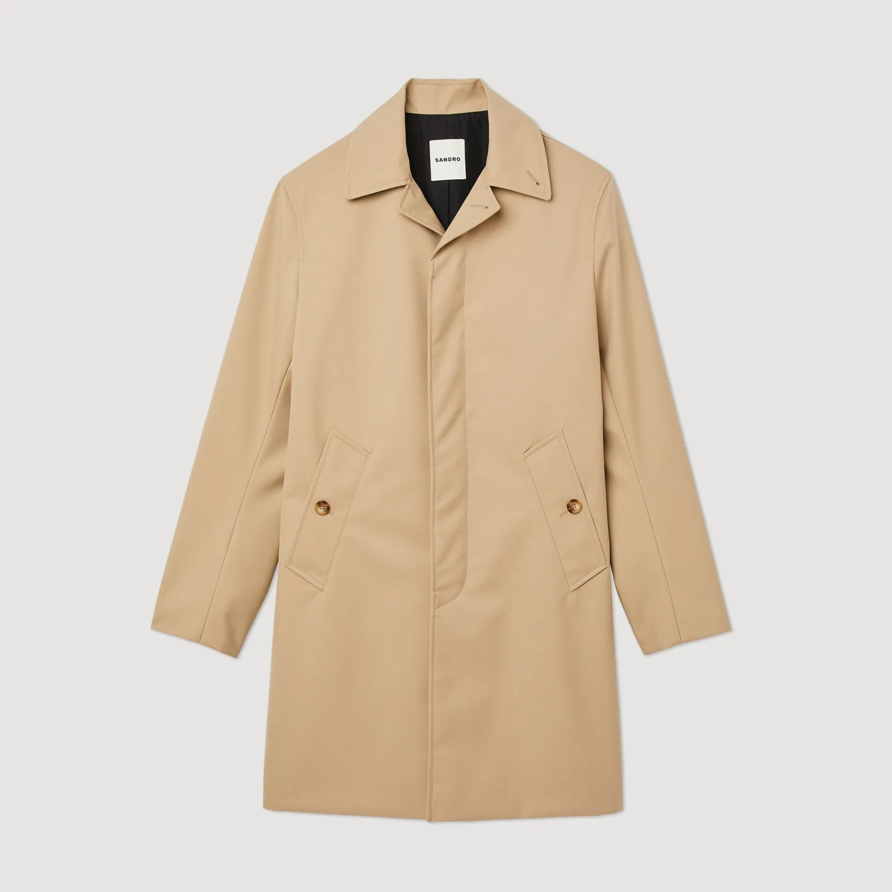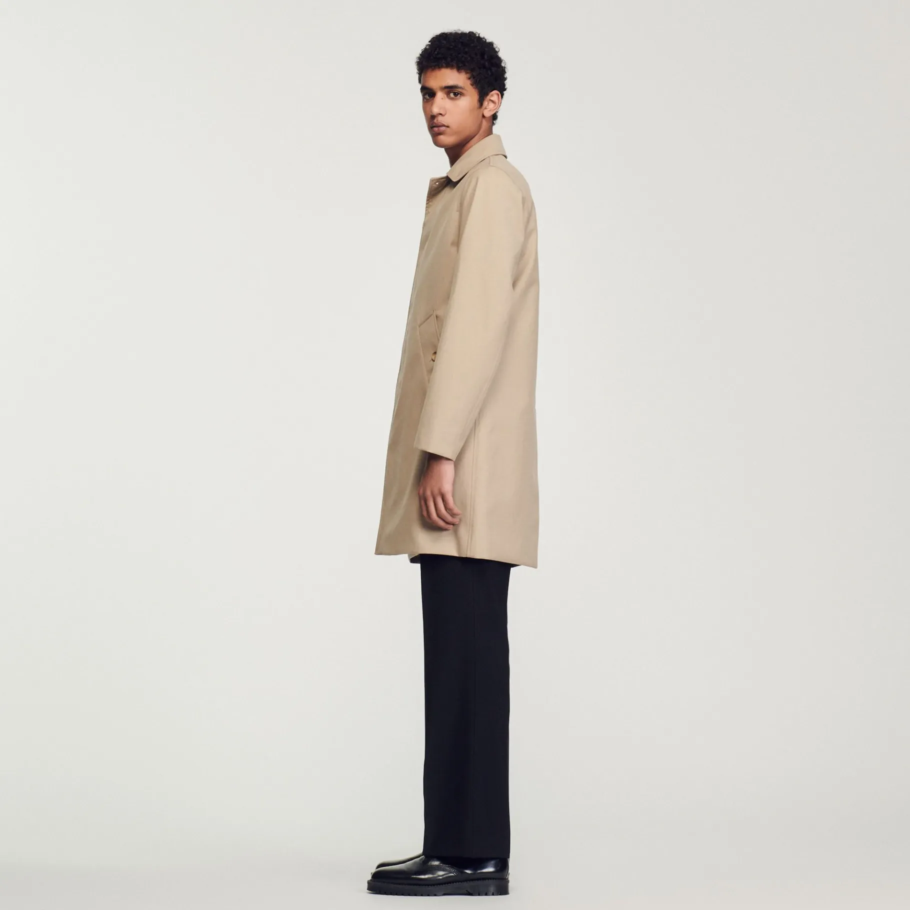Casaco Impermeável Semi-Longo Com Manga Comprida E Gola De Camisa Com Fecho De Botão.