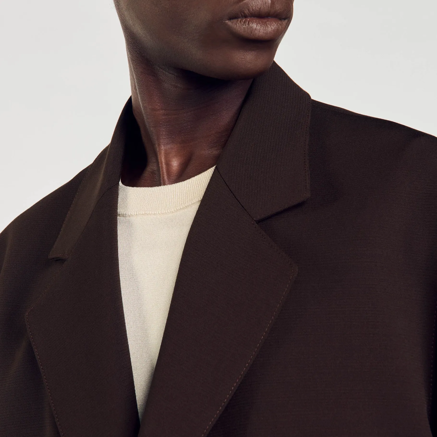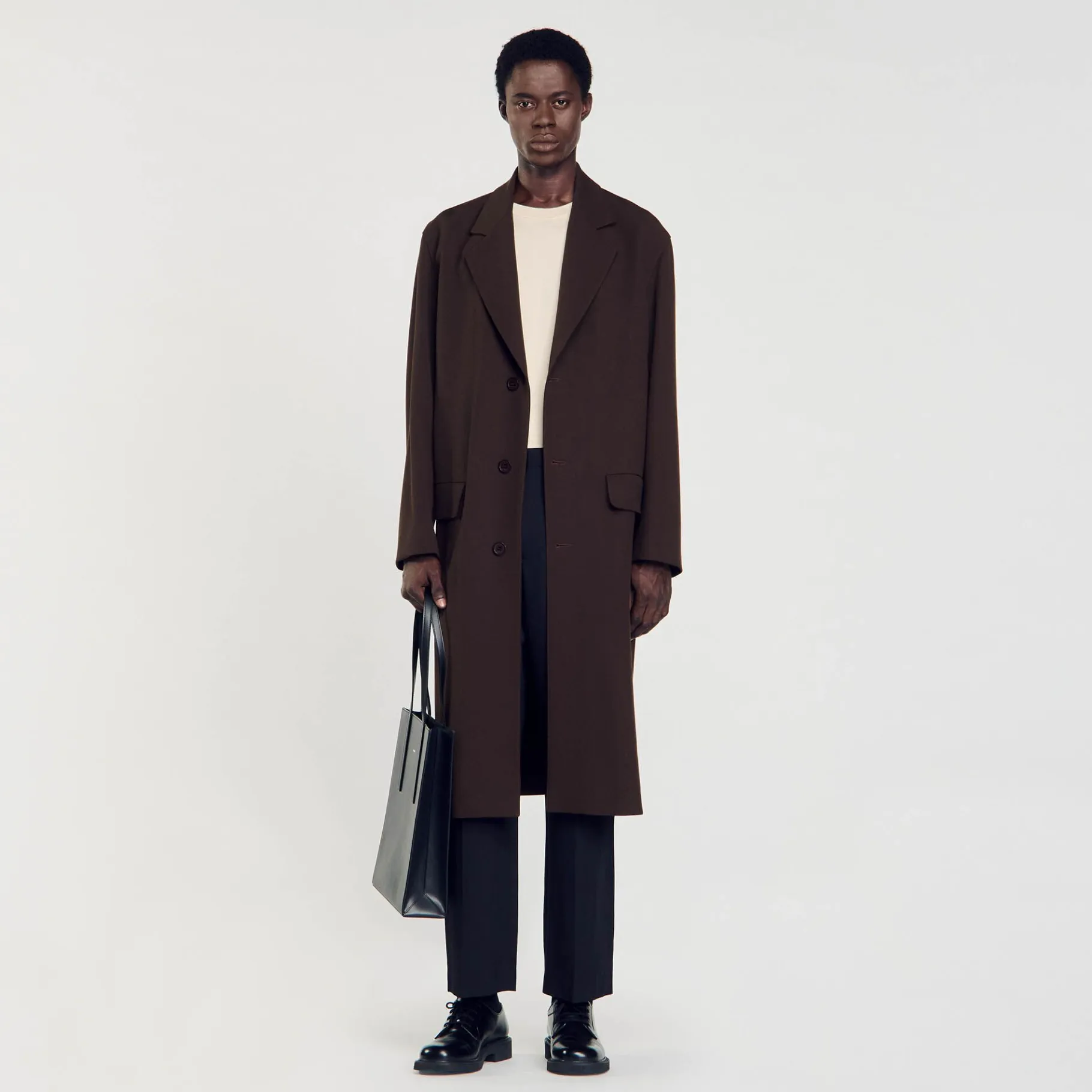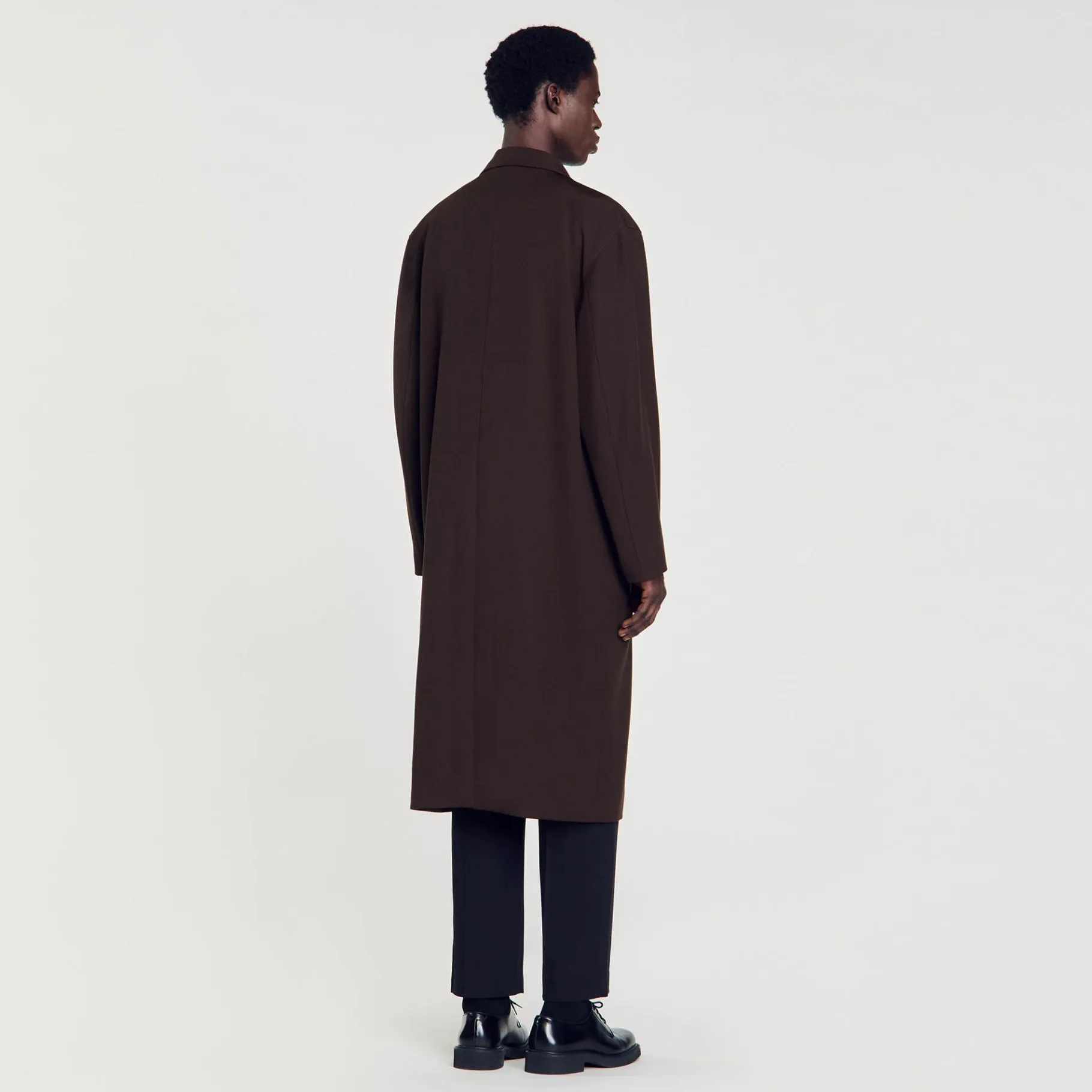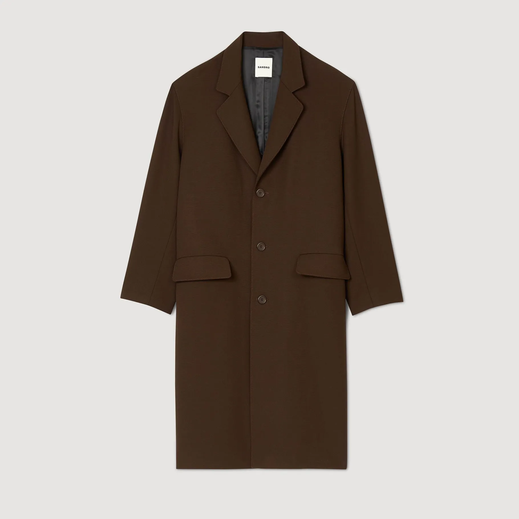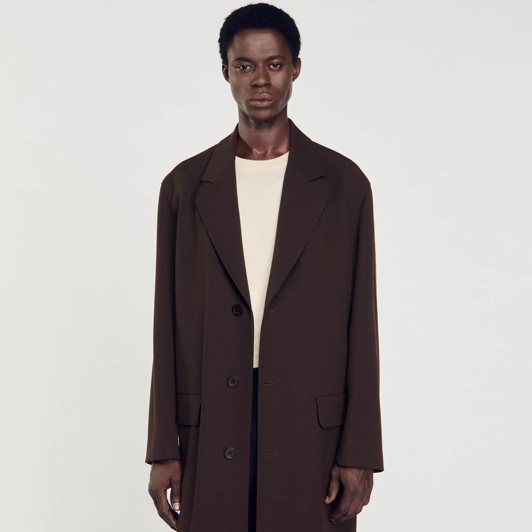 Casaco Largo E Muito Comprido De Lã Com Caimento Fluido, Manga Comprida, Gola À Medida, Fecho De Botão E Fenda Atrás.