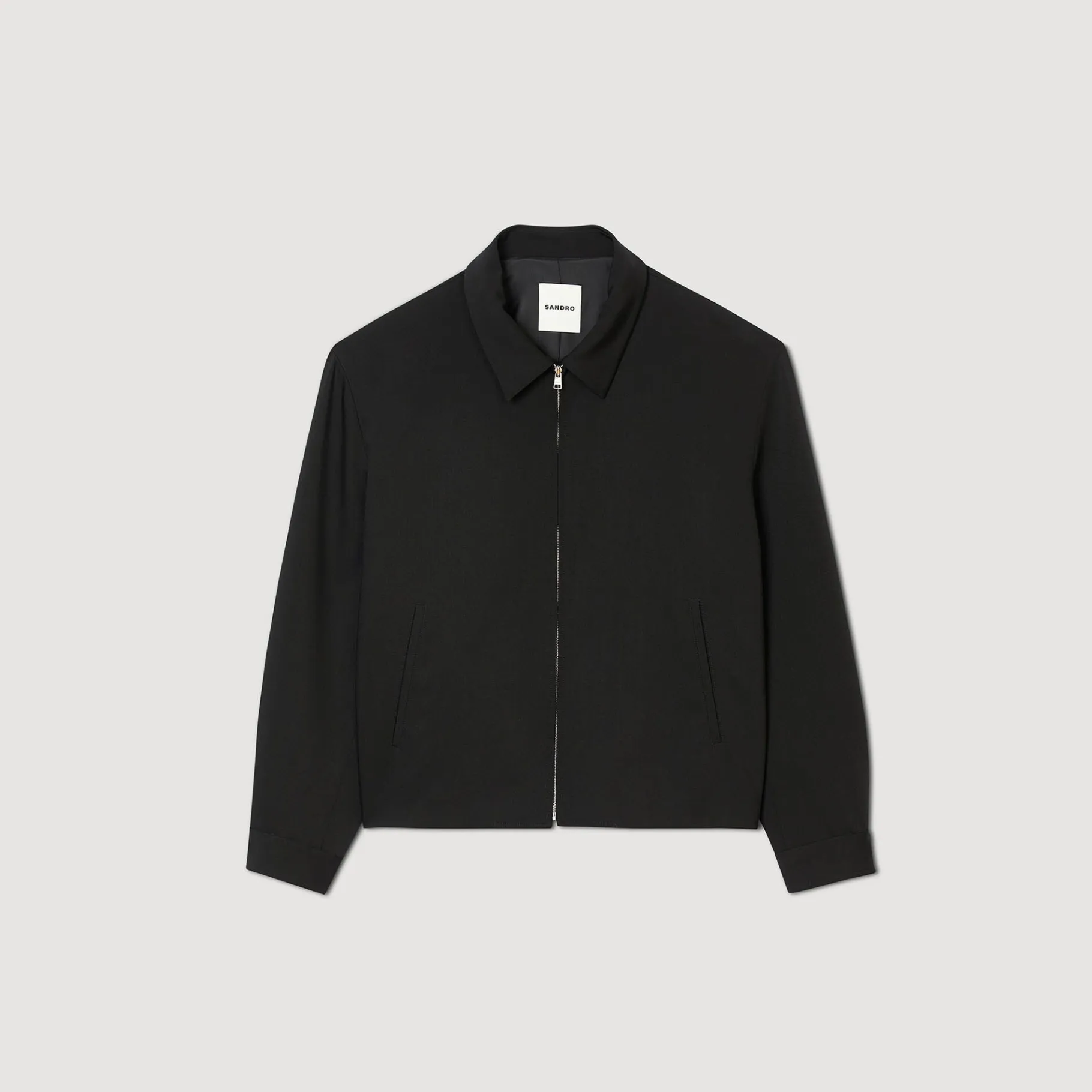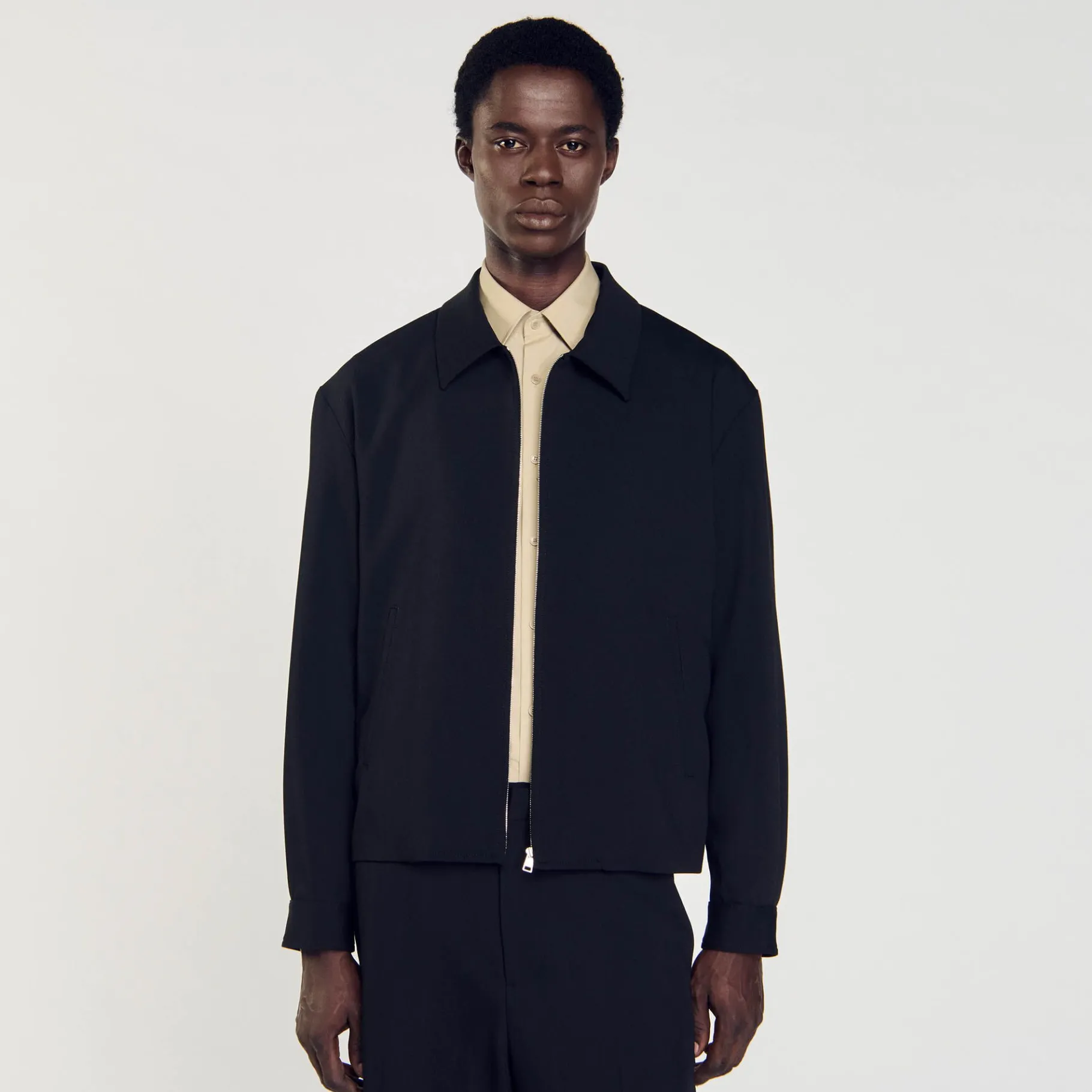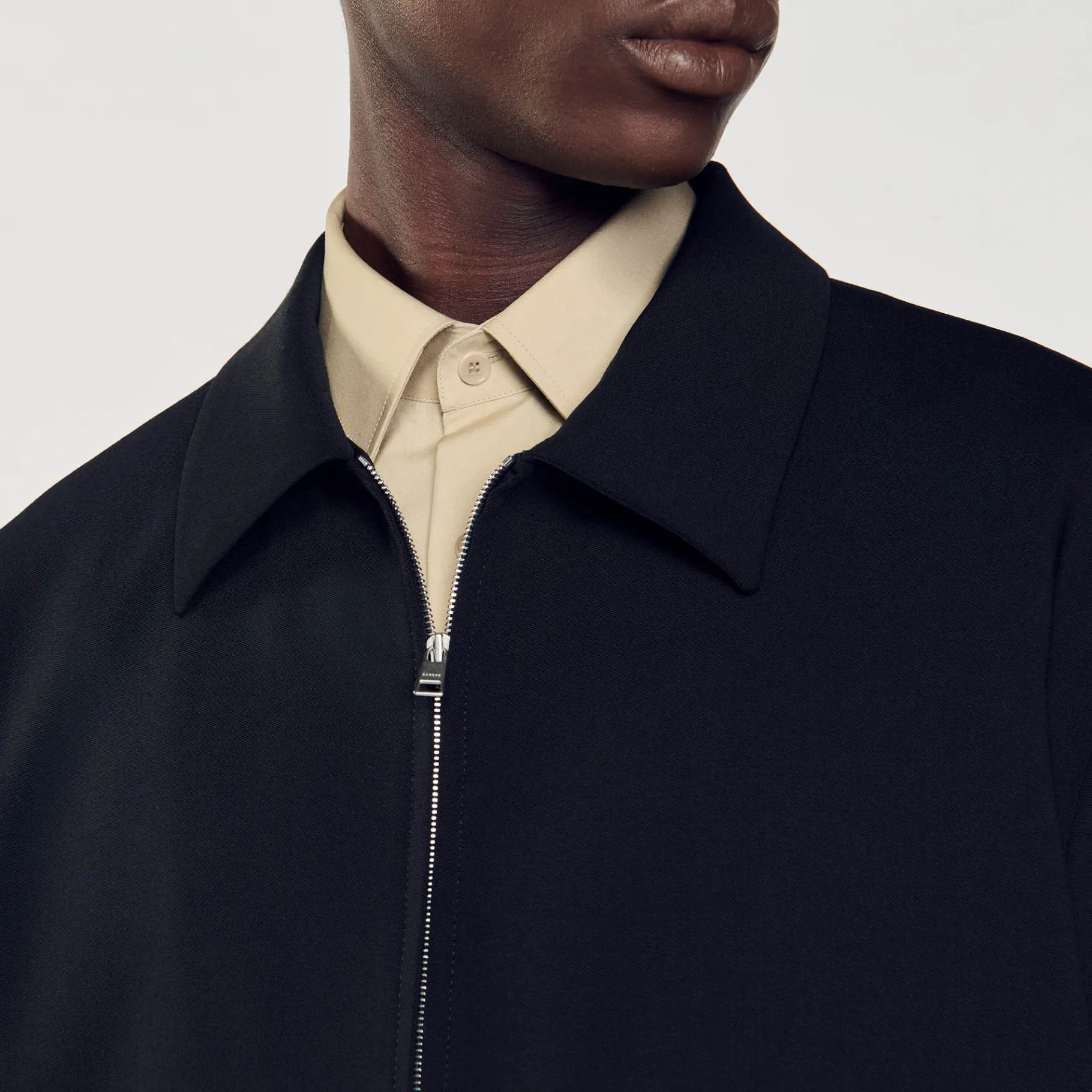 Casaco De Manga Comprida Com Gola De Camisa, Fecho De Correr, Bolsos Frontais De Debrum, Prega Solta Atrás E Bolso Interior Com Fecho De Correr.