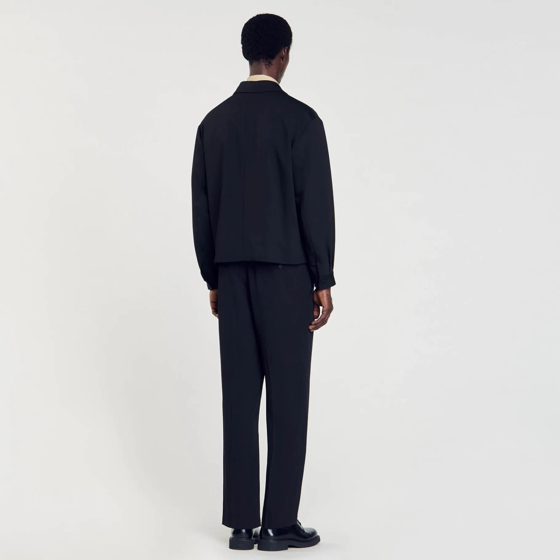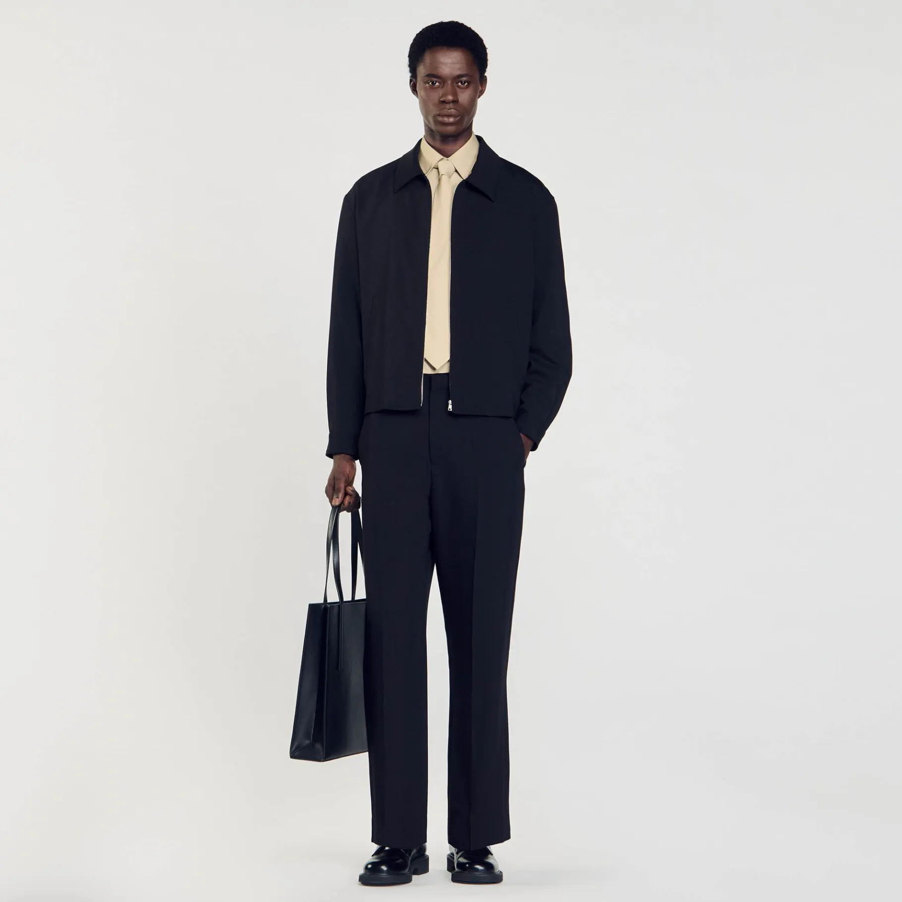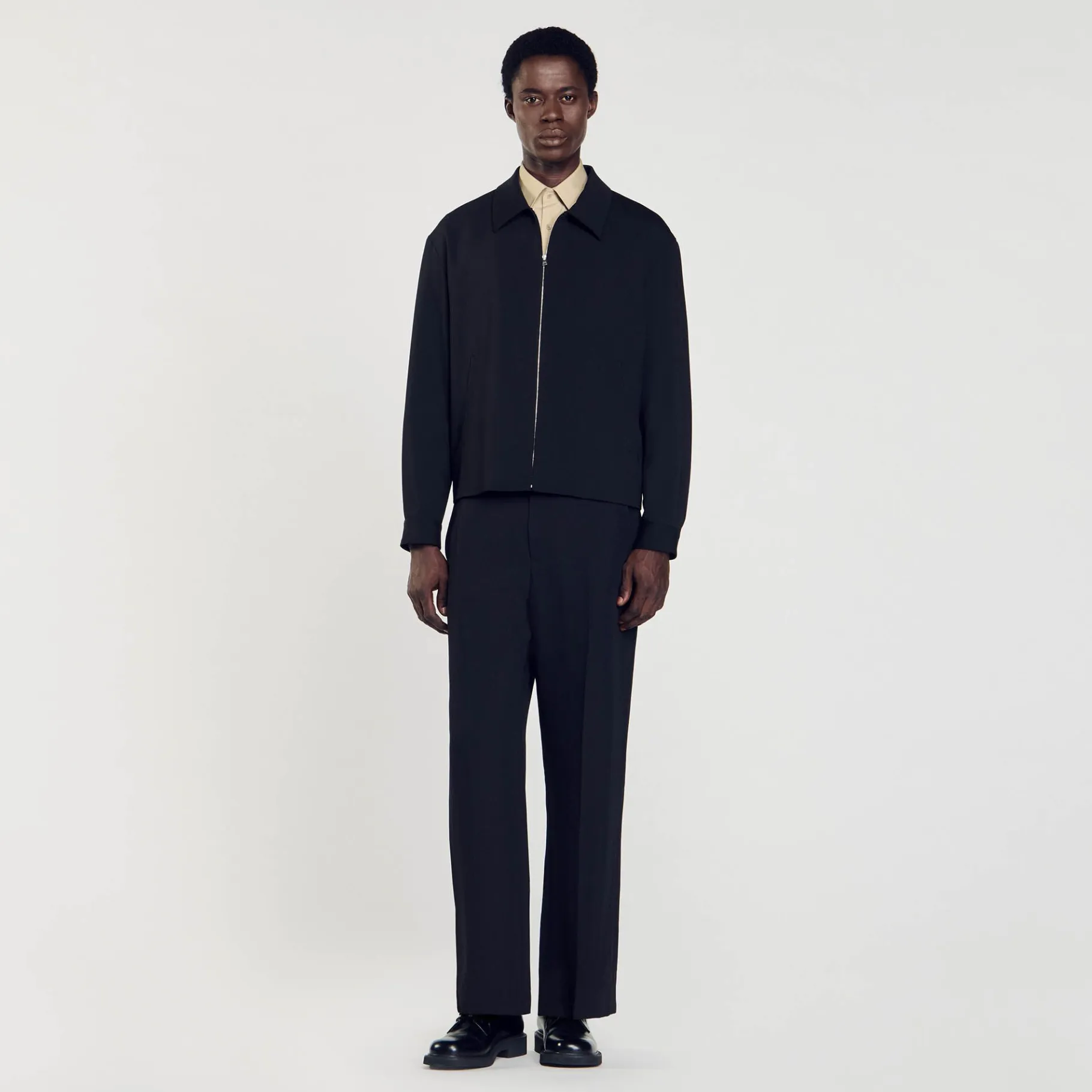 Casaco De Manga Comprida Com Gola De Camisa, Fecho De Correr, Bolsos Frontais De Debrum, Prega Solta Atrás E Bolso Interior Com Fecho De Correr.