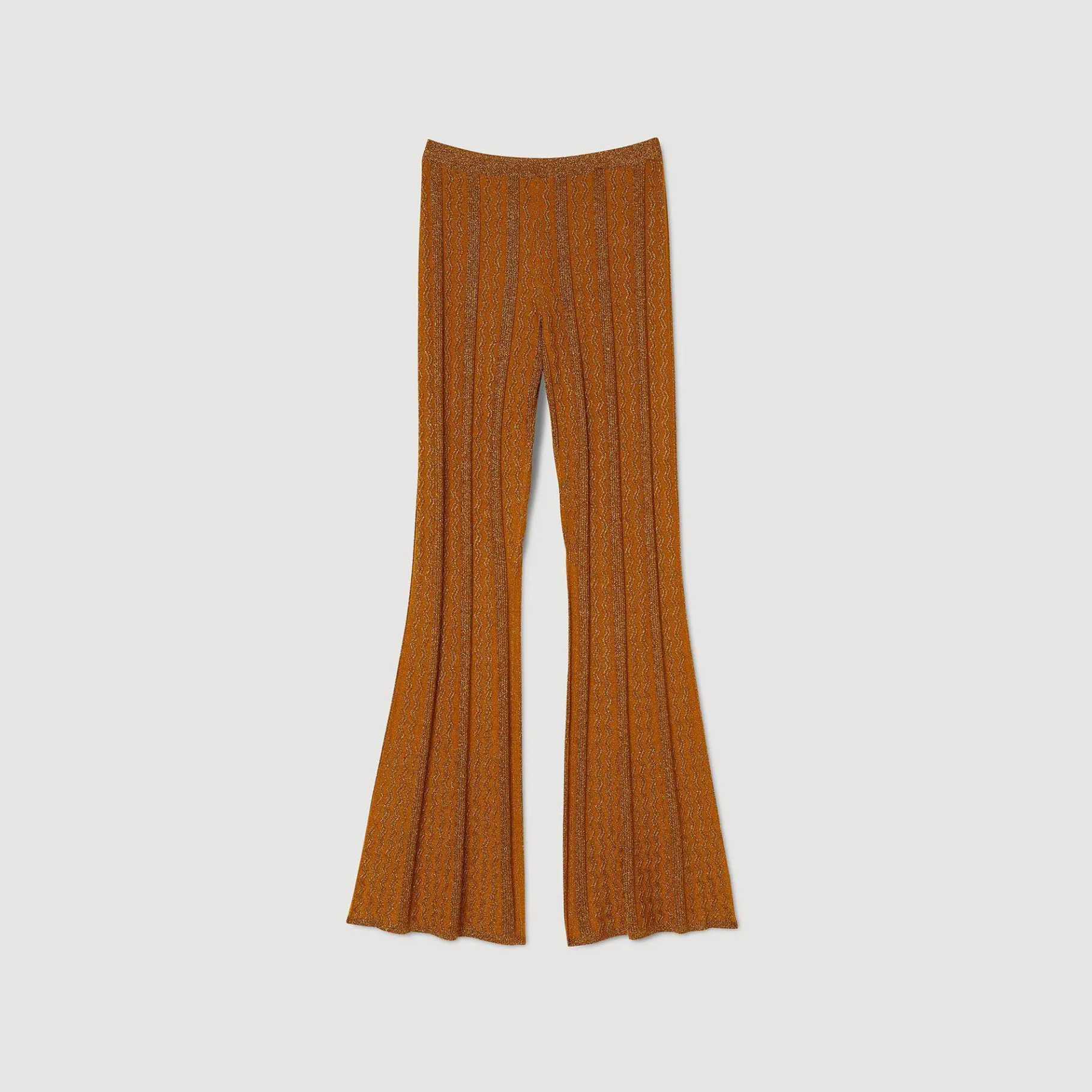 Calças Largas Em Malha Trançada Com Incrustações De Fibra Metálica Brilhante.