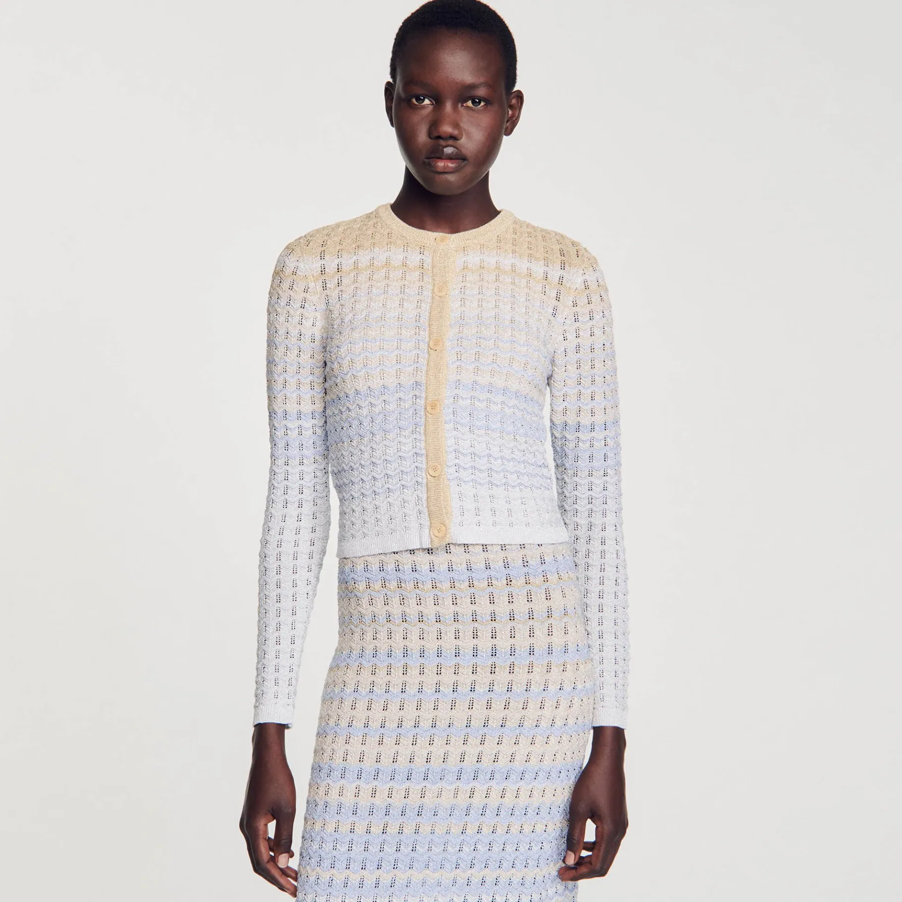 - Cardigã De Malha Pointelle Sandro Femme