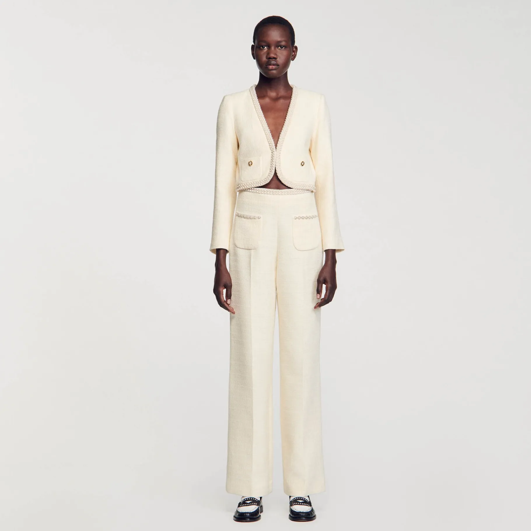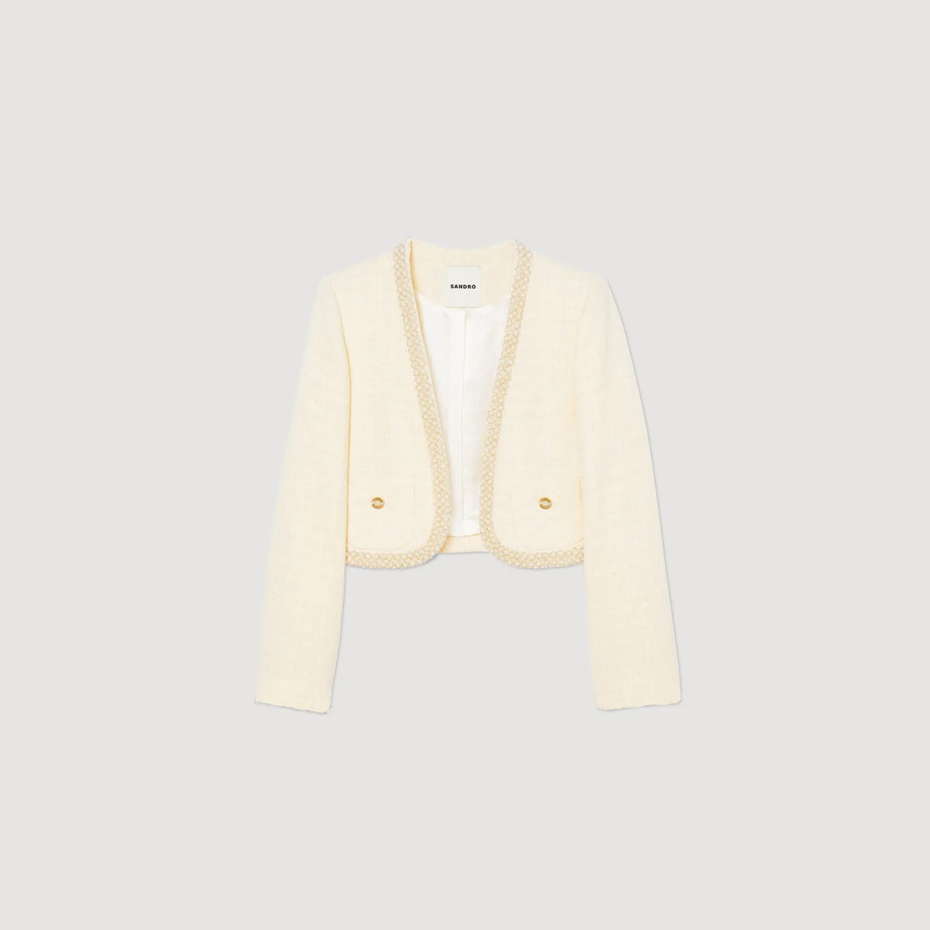 Jaqueta Curta De Sarja Com Mangas Compridas, Bolsos De Aplicação E Divisas De Pedra.
