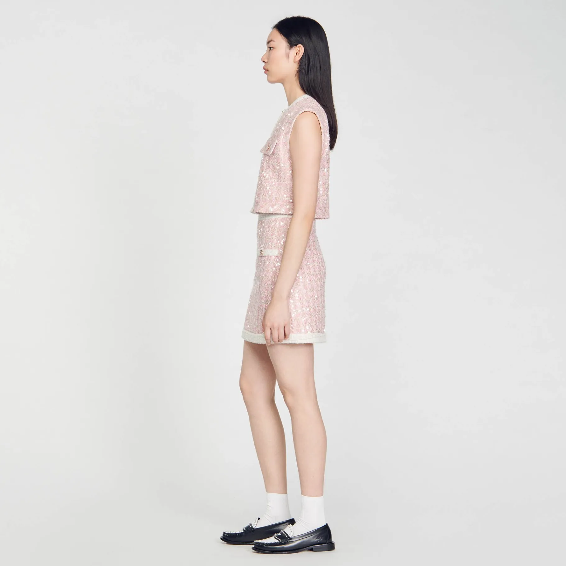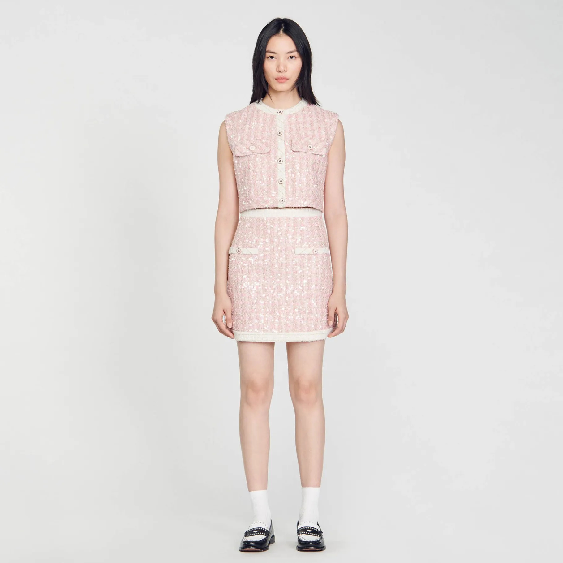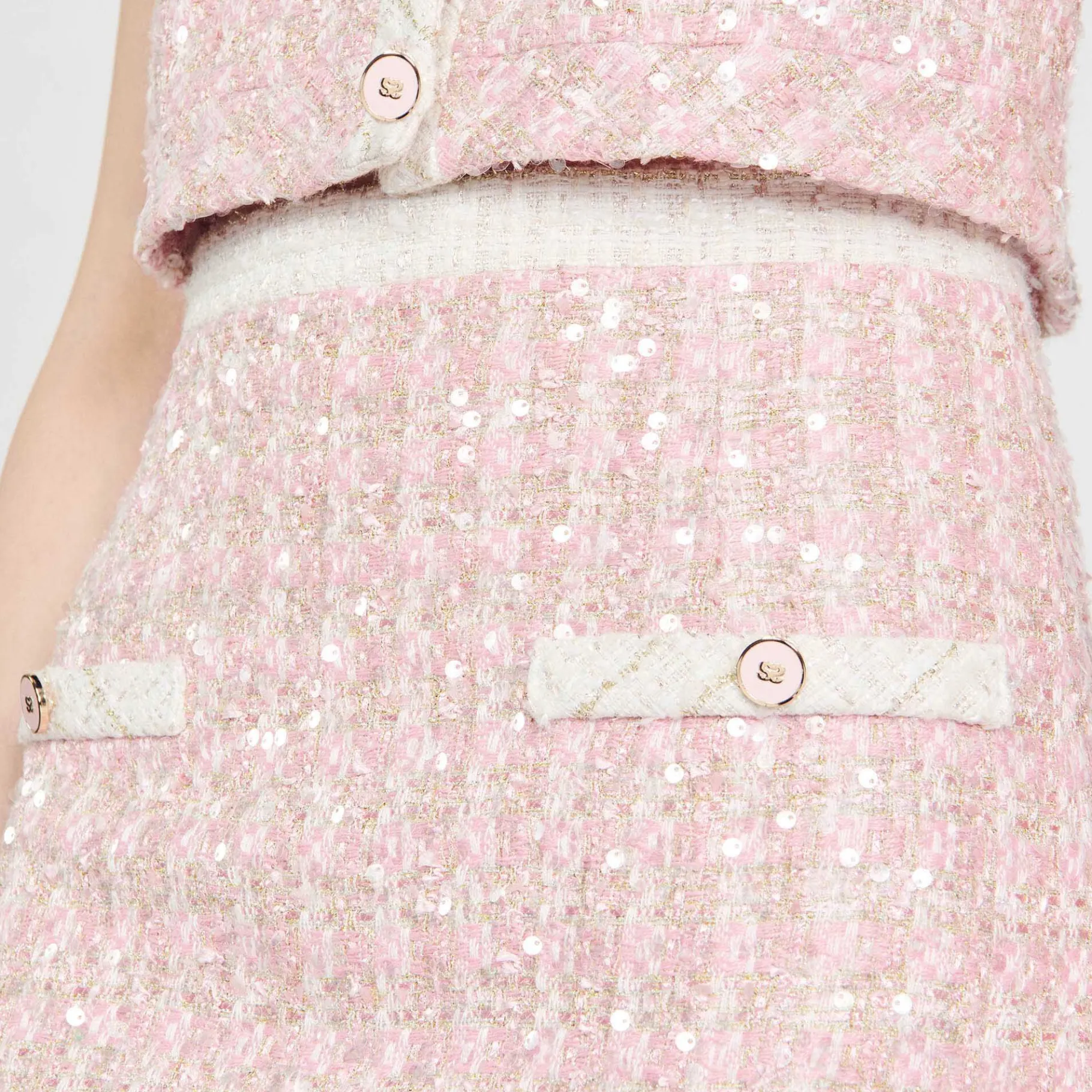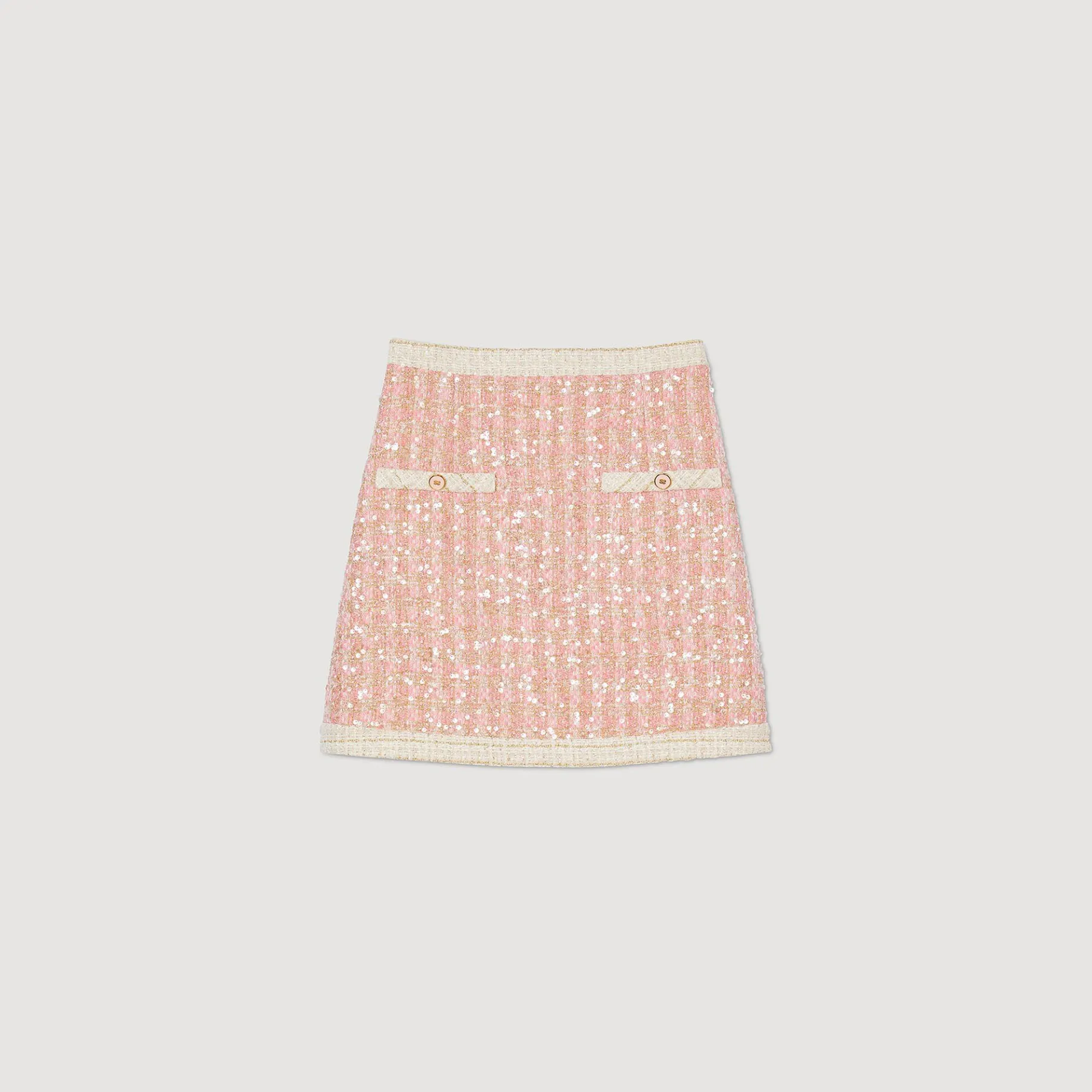Saia Curta Em Sarja Misturada Com Fios Metálicos, Cós E Parte Inferior Com Bolsos Contrastantes.