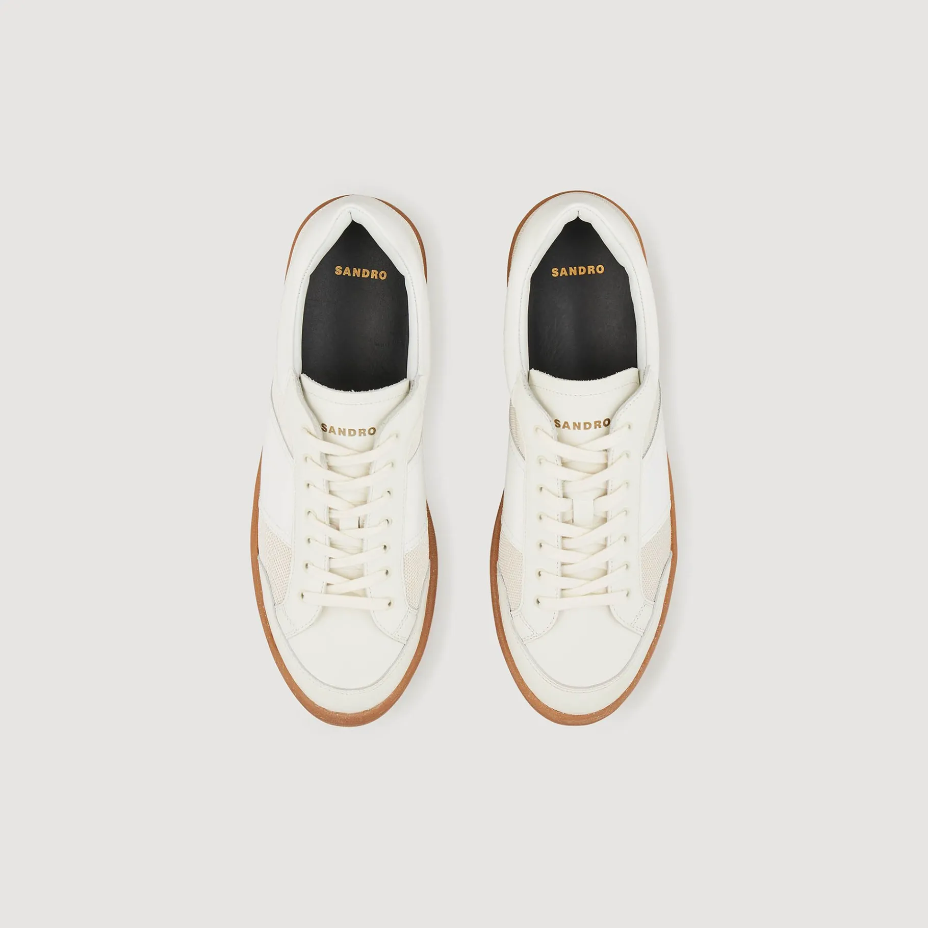 Tênis Mescla Couro E Mesh Com Cadarço E Solado De Borracha Com Relevo Sandro Na Lateral.