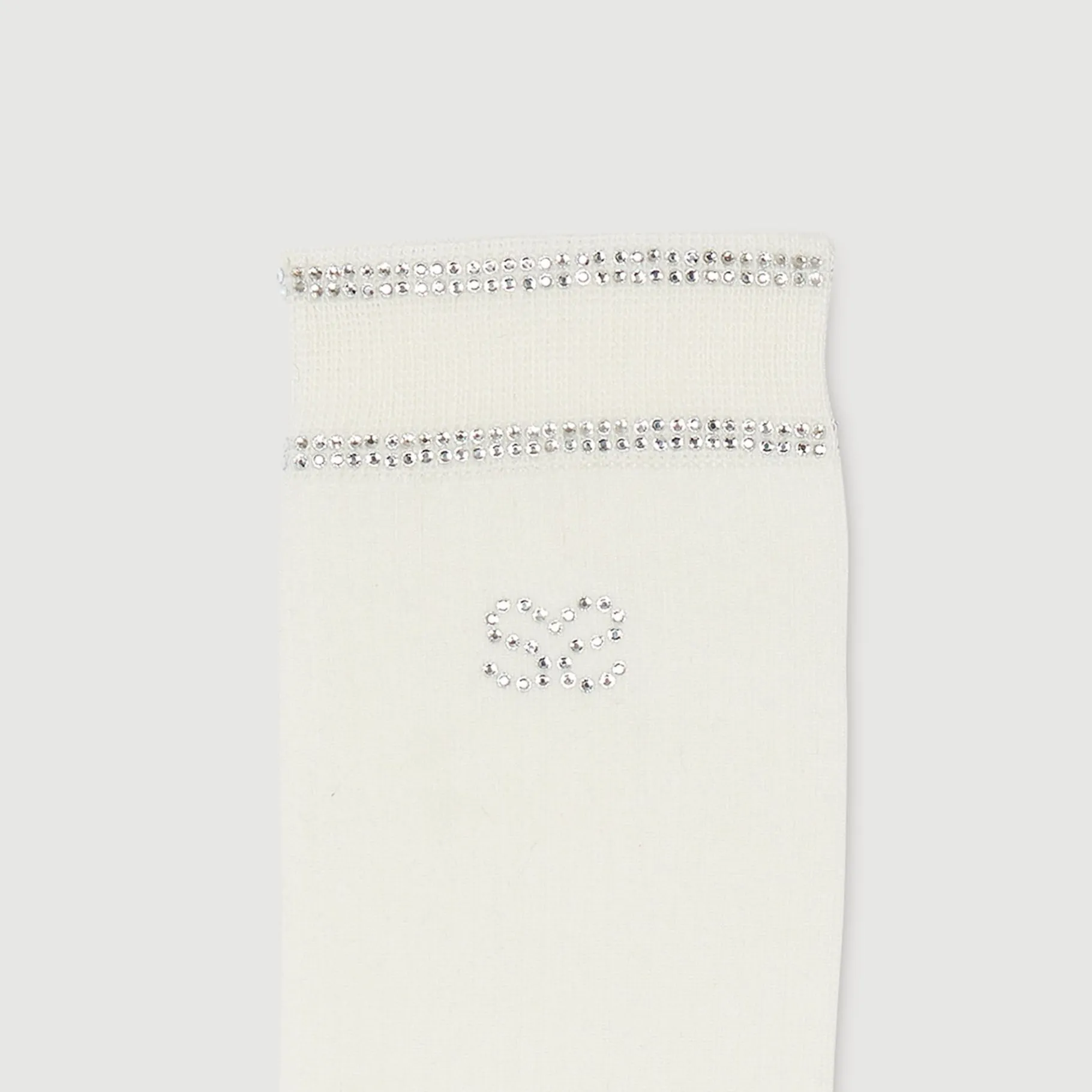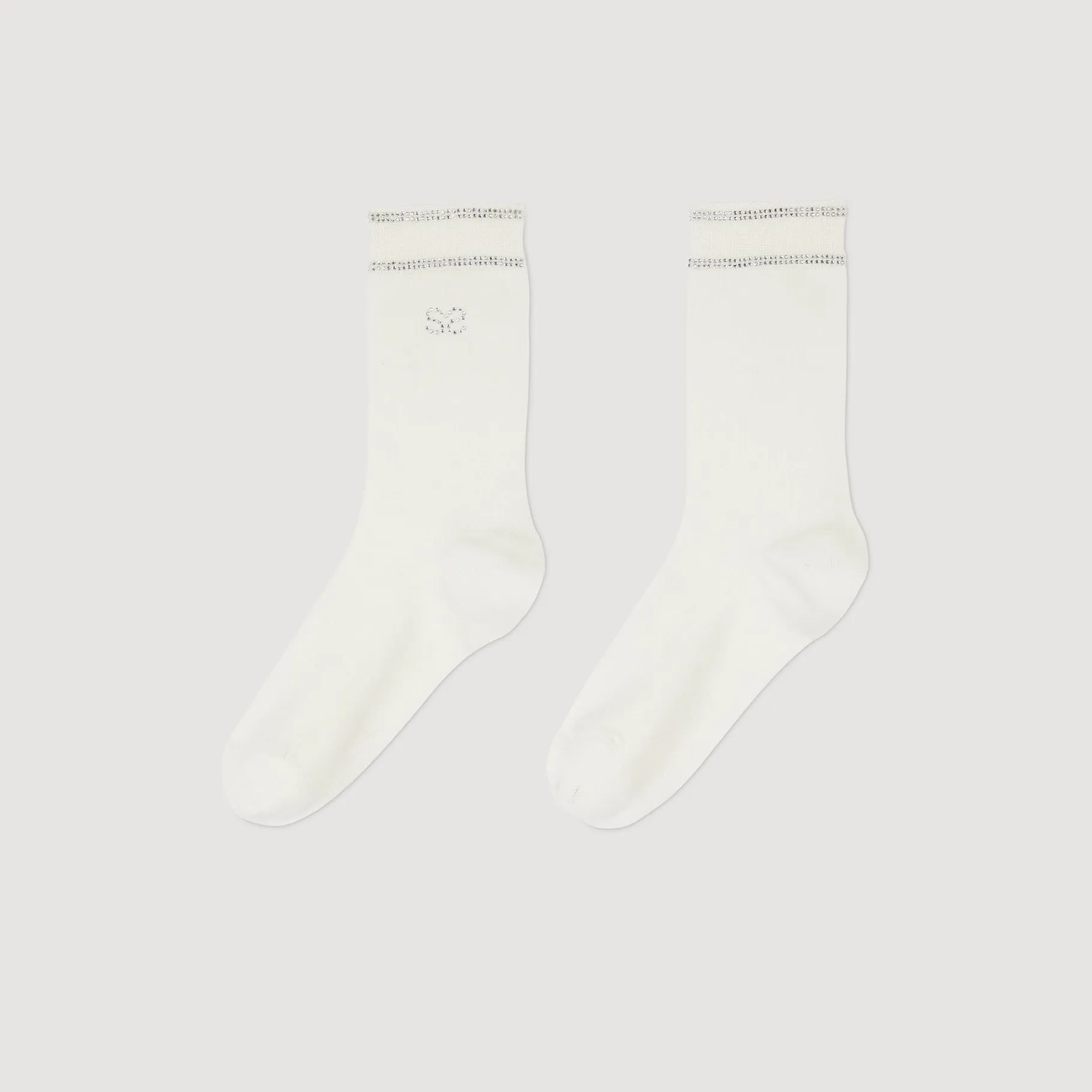 Meias Caneladas Decoradas Com Logotipo S Duplo E Linhas De Strass.