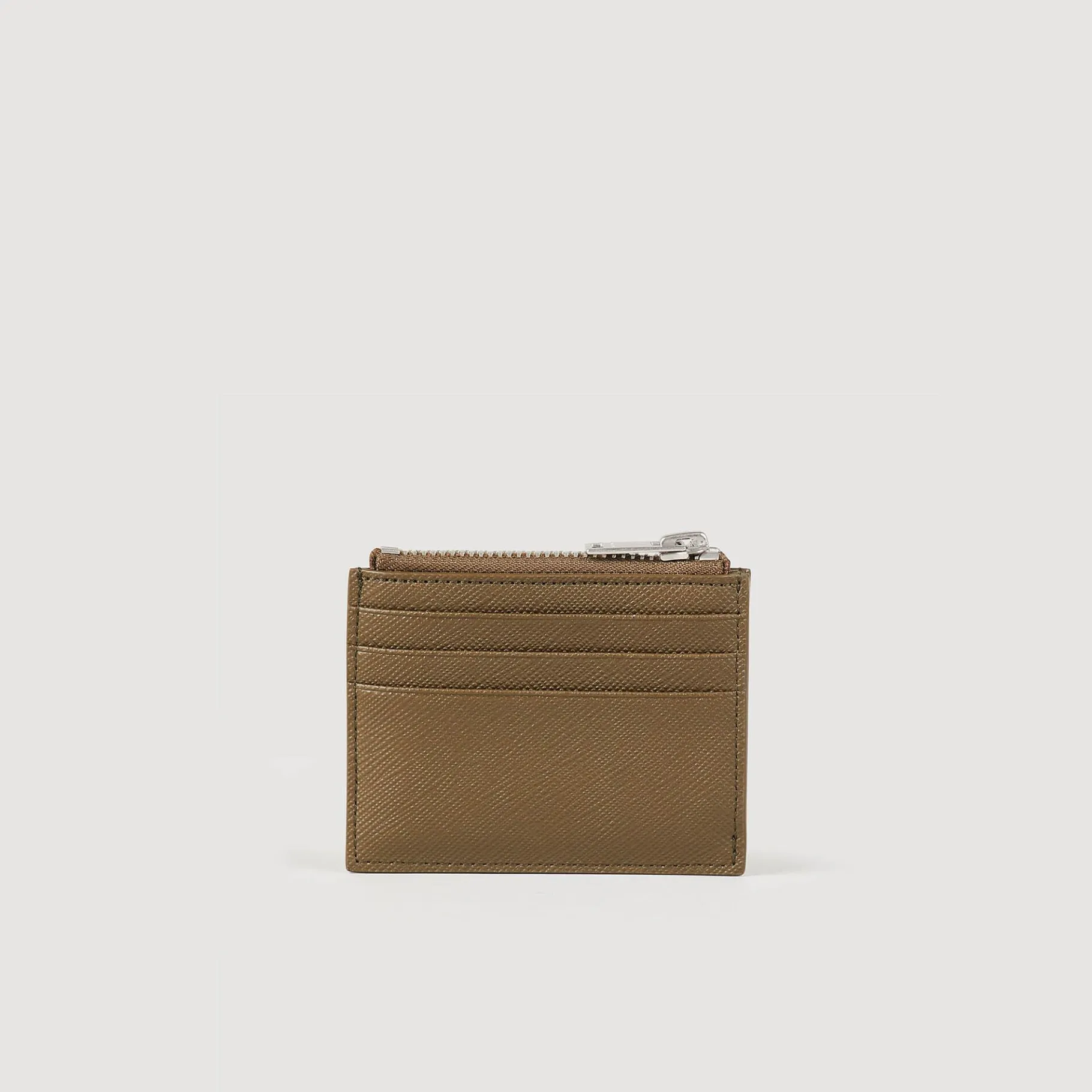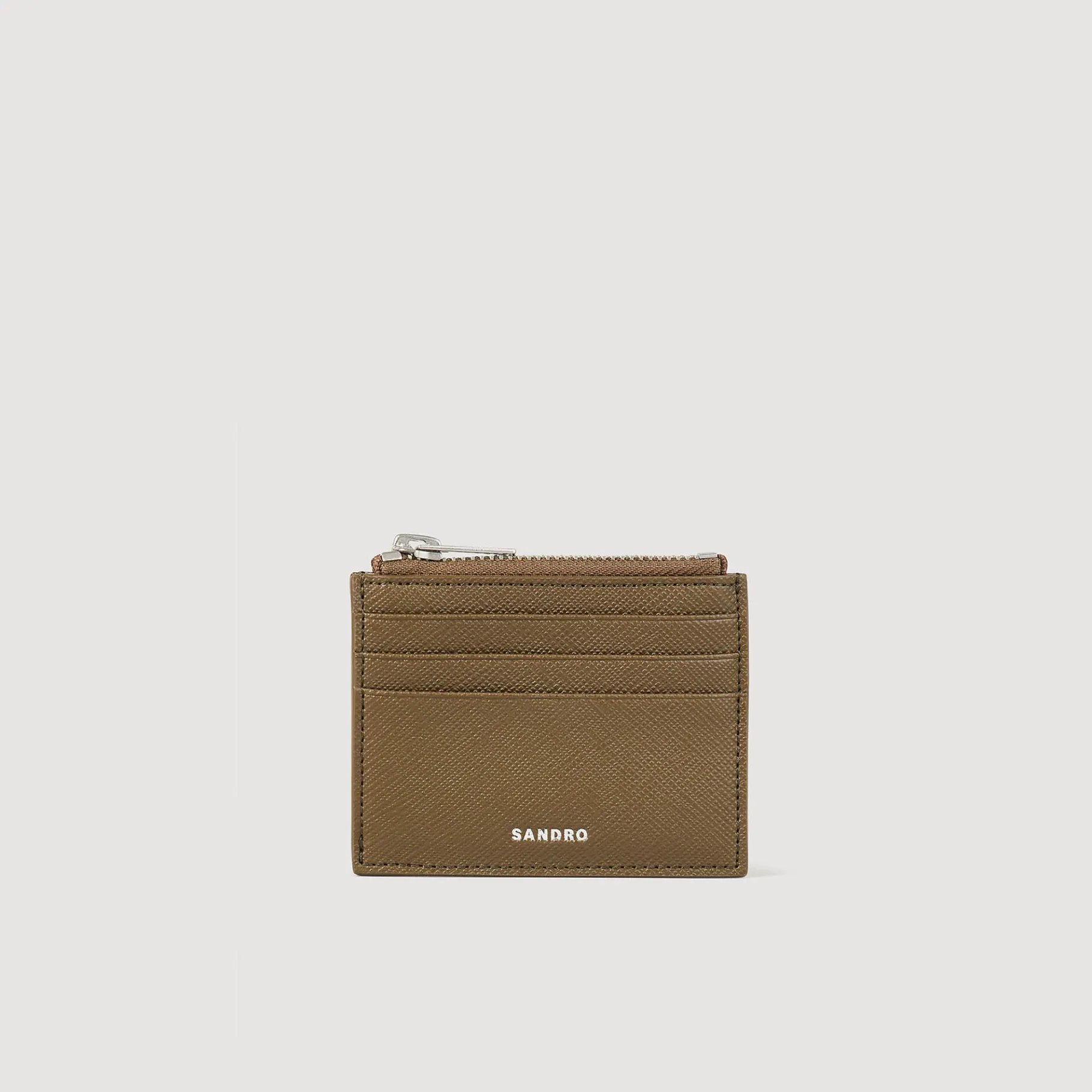 Porta-Cartões Em Couro Saffiano Com 3 Compartimentos Para Cartões E Fecho De Correr.