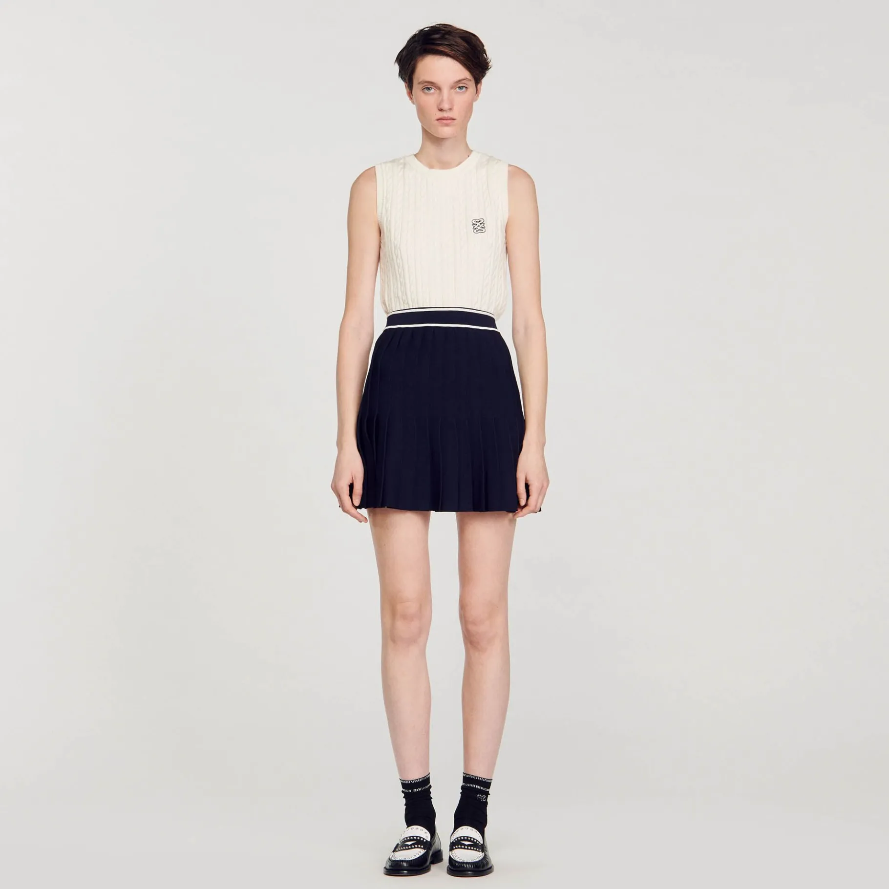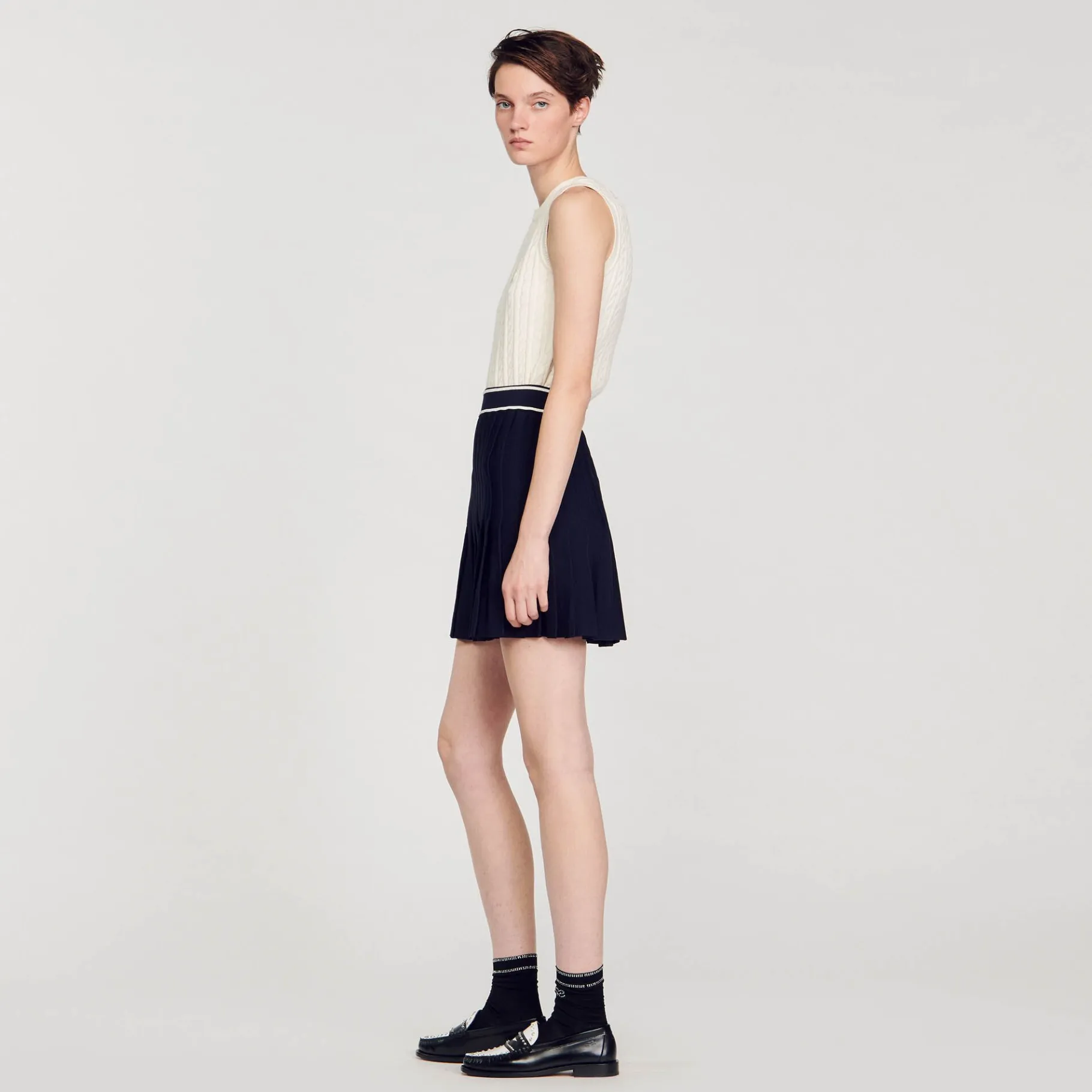 Saia Curta De Malha Plissada Com Cinto Elástico Na Cintura Decorado Com Faixas Contrastantes.