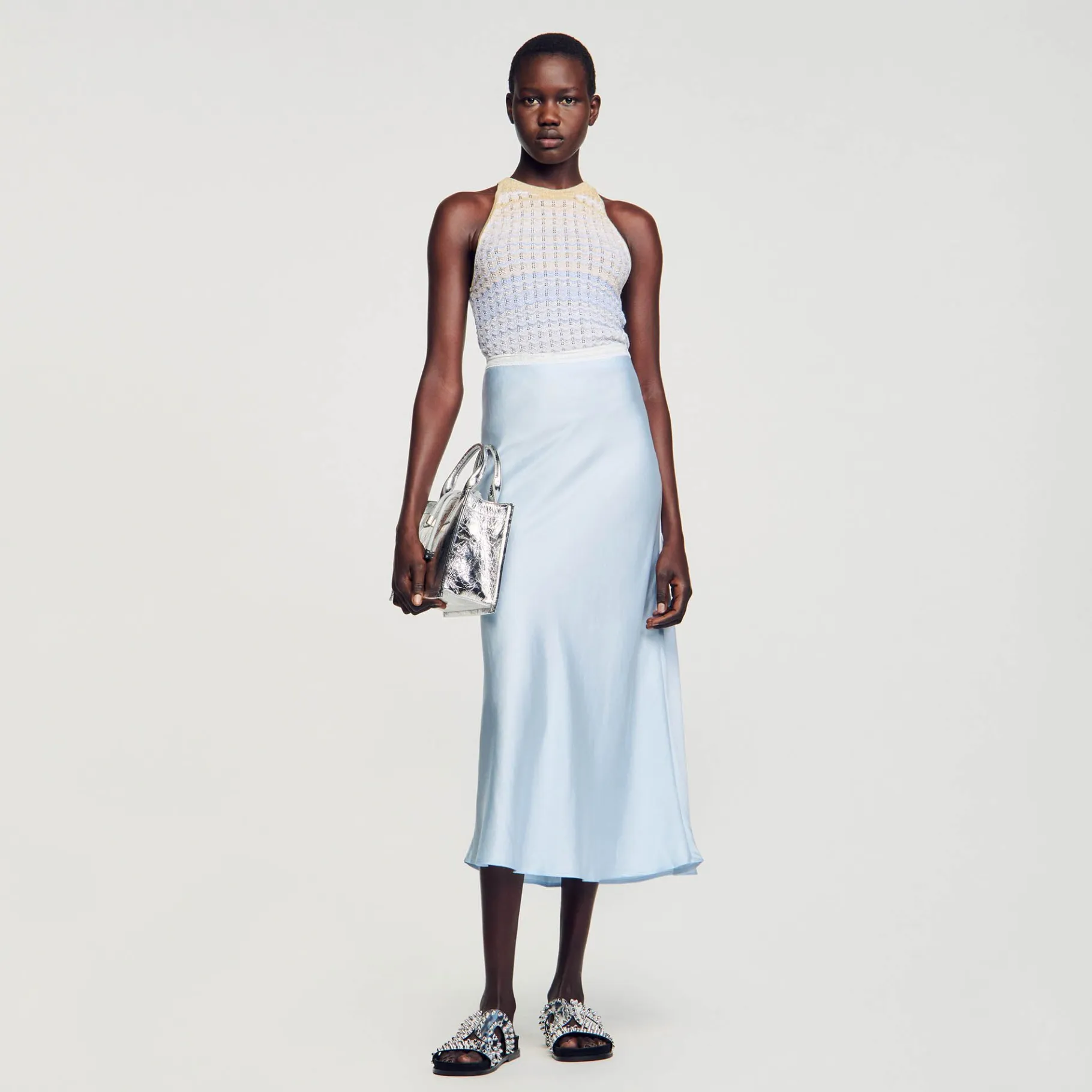 Saia Longa Reta E Fluida Em Mescla De Linho Acetinado, Com Cinto De Renda Na Cintura Com Iniciais Sandro.