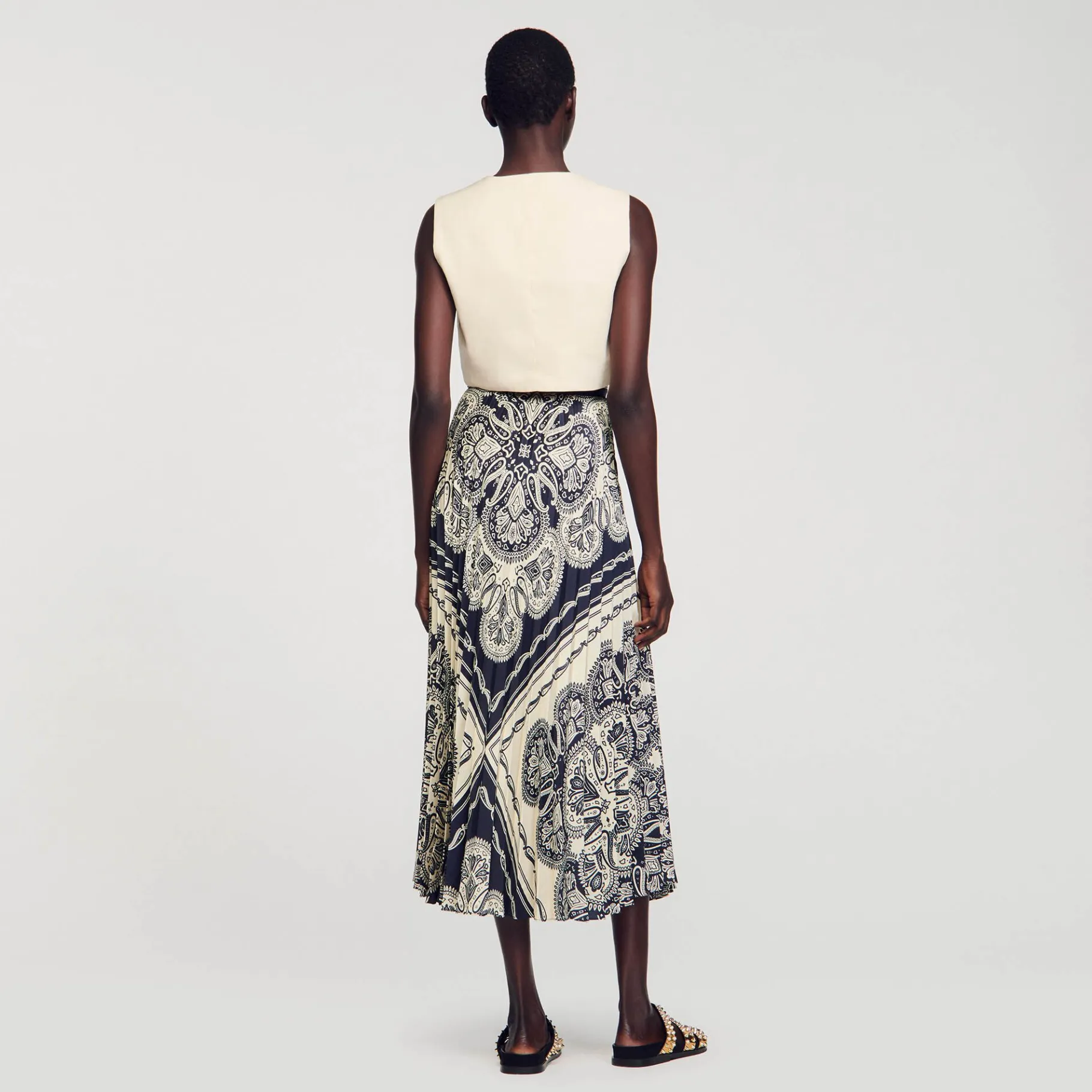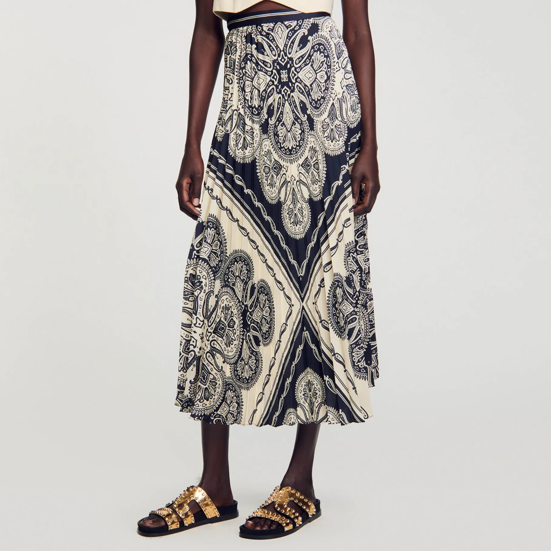 - Sandro Saia Feminina Longa Plissada