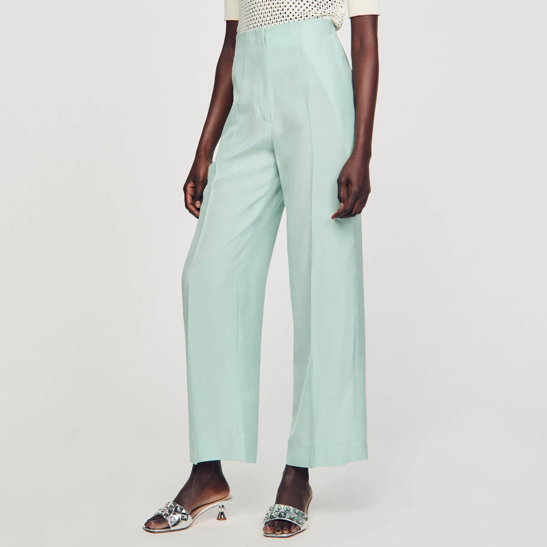 Calça Larga De Cintura Alta, Justa Na Cintura, Com Bolsos Italianos Nas Laterais.