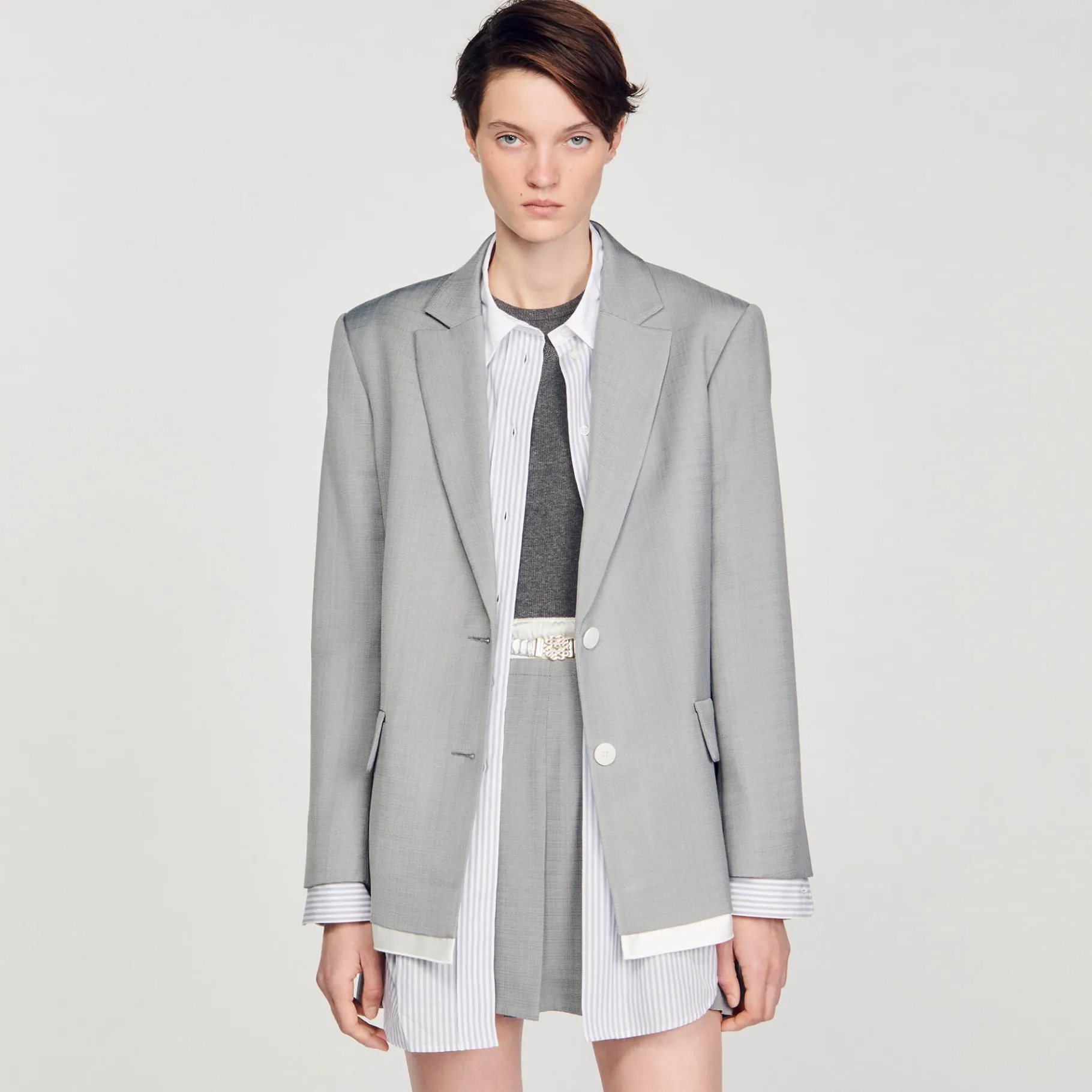- Jaqueta Larga De Tweed Sandro Mulhersandro Femme