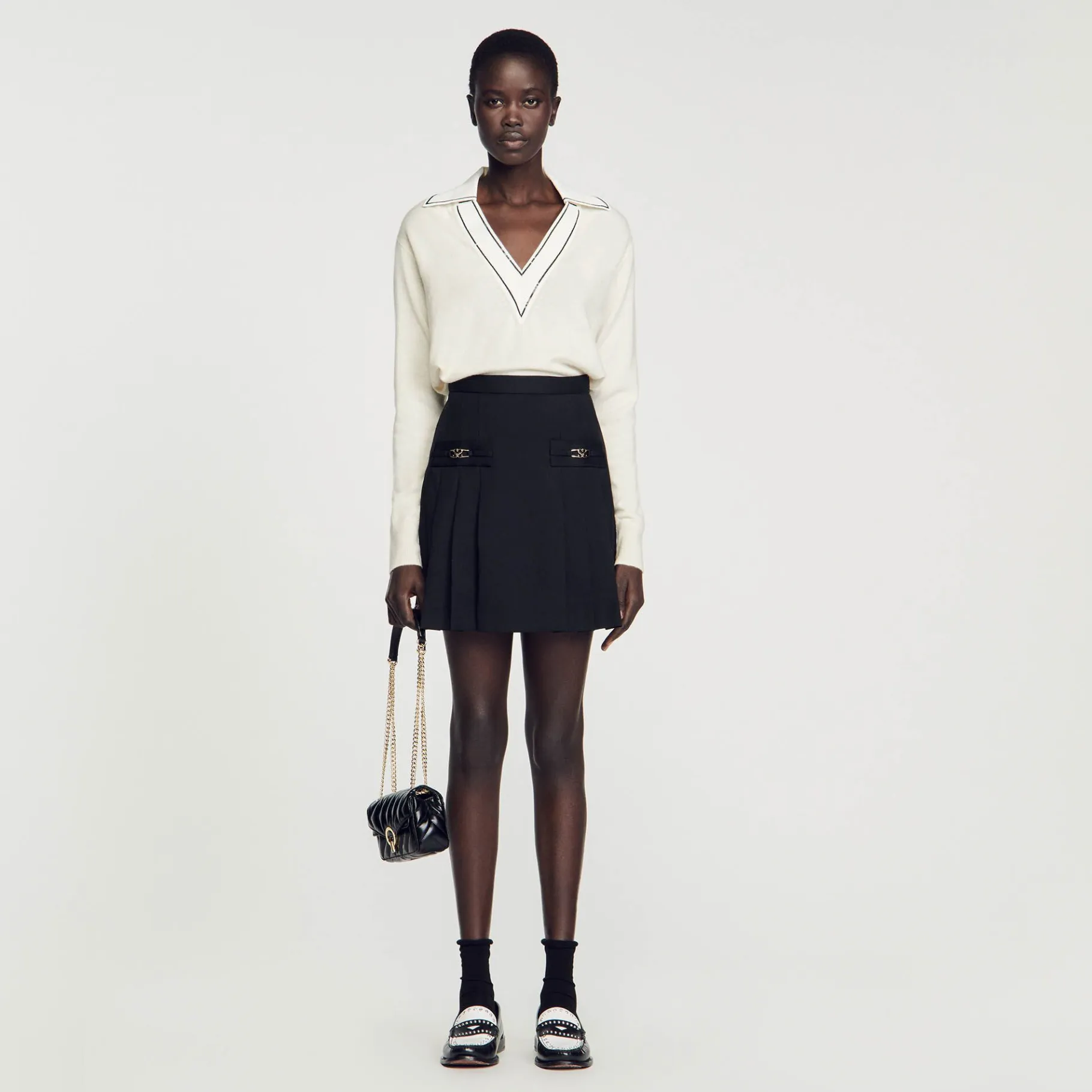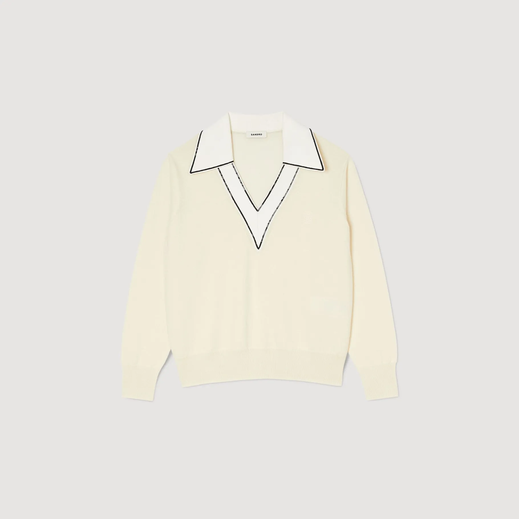 - Polo Com Decote Em V Com Lapela E Acabamentos Em Contraste