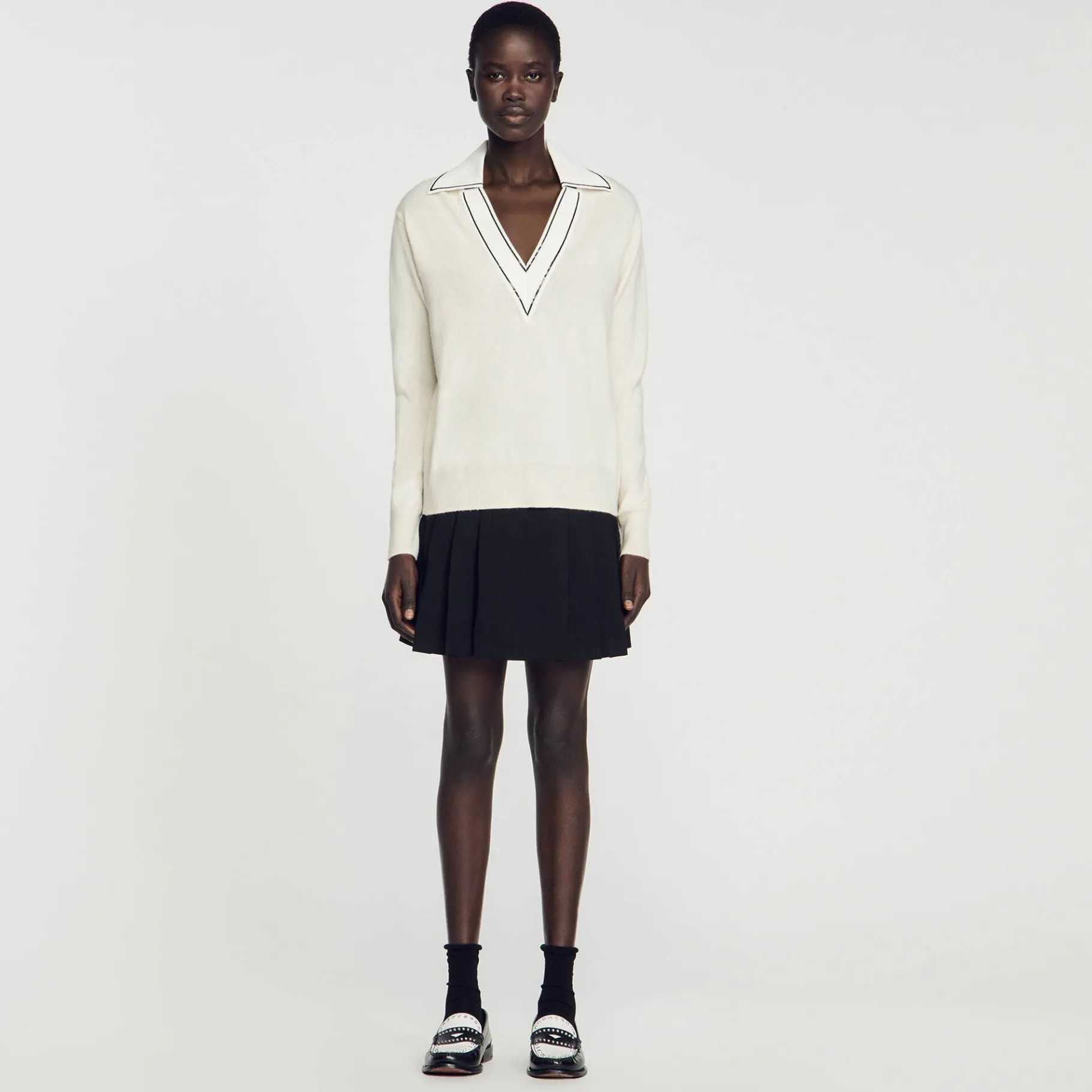 Suéter Grande De Malha Com Decote Em V Em Contraste, Mangas Compridas E Punhos E Cintura Canelados.
