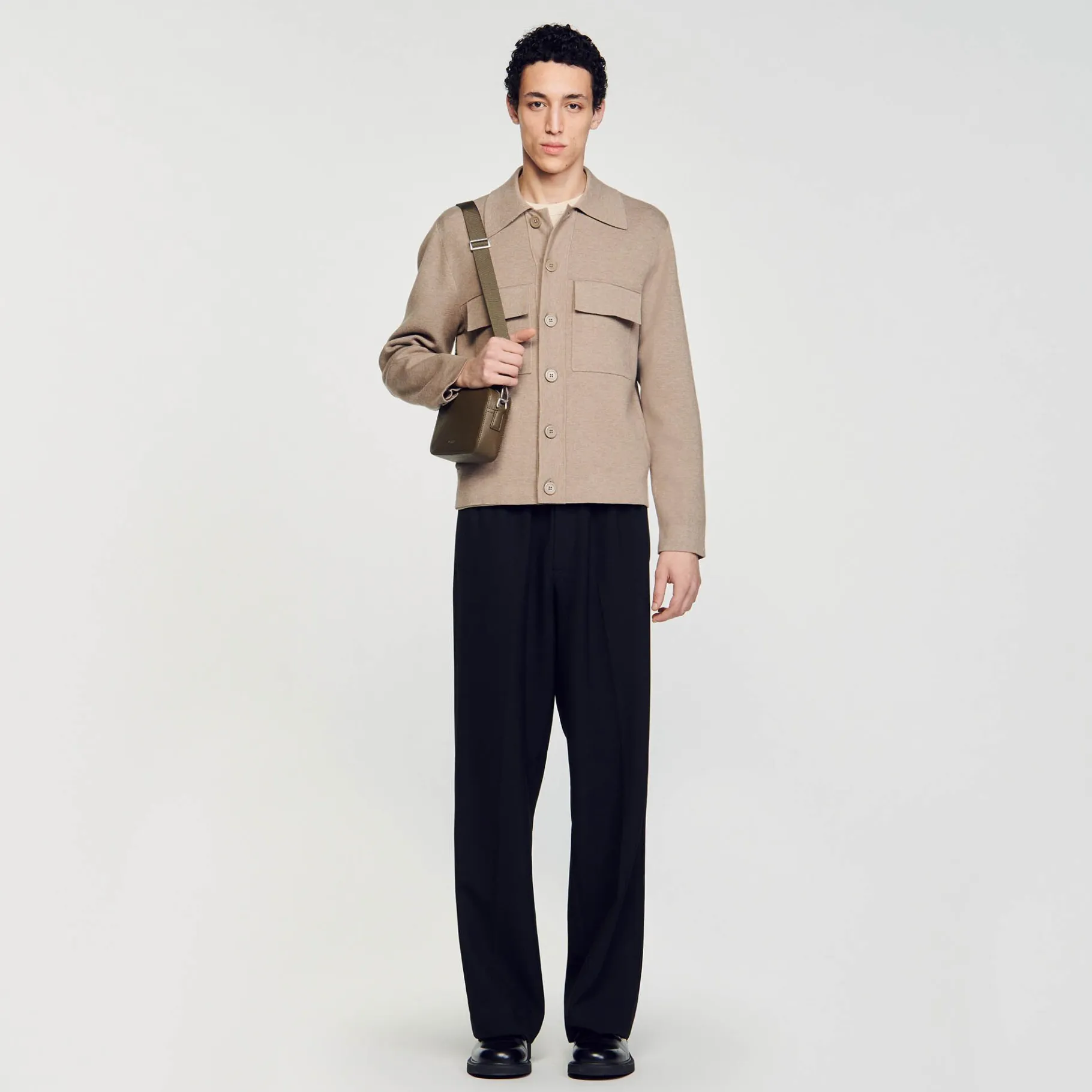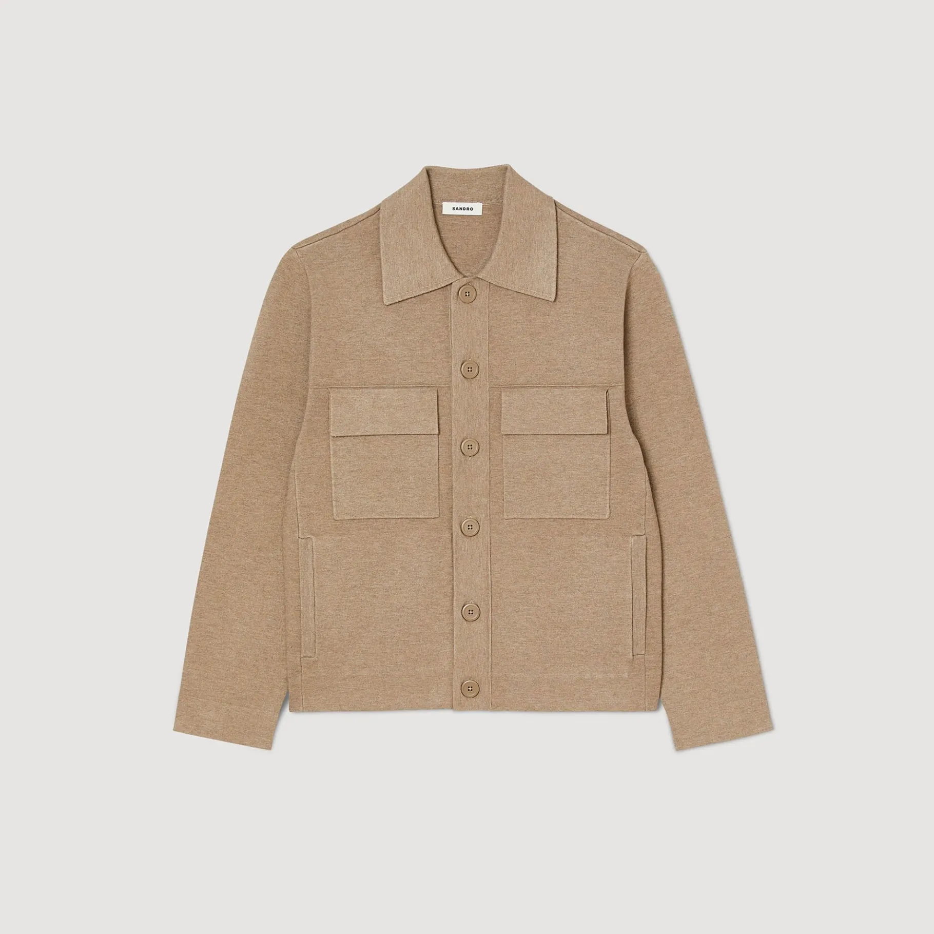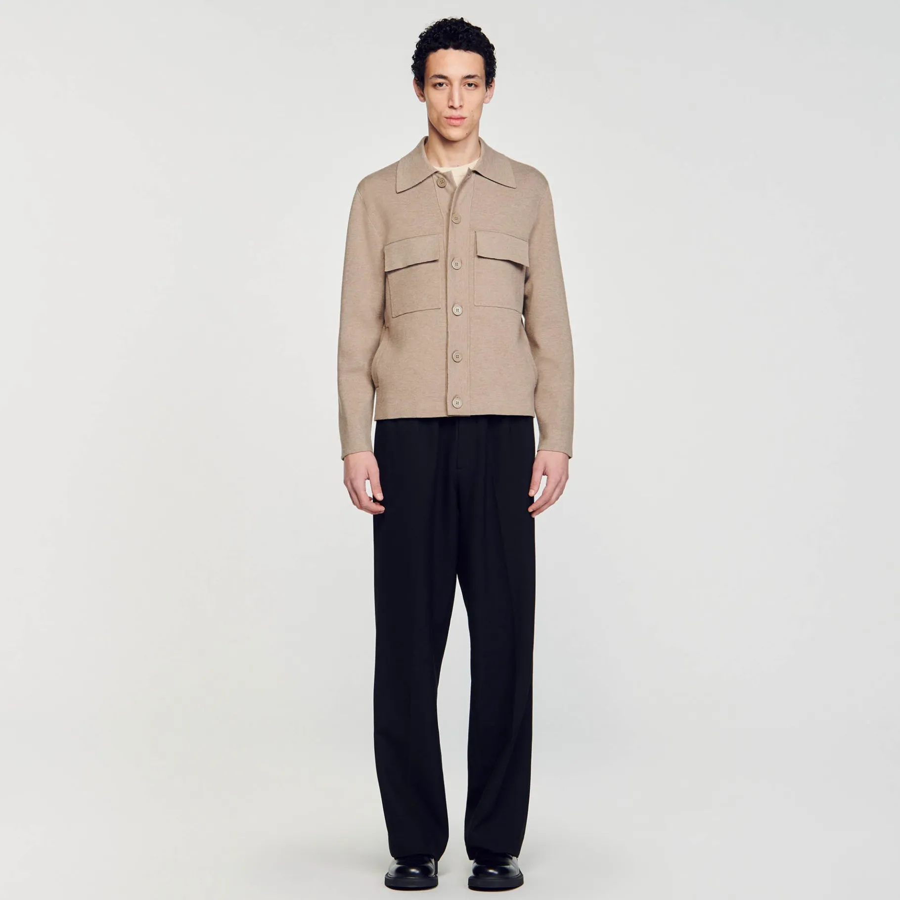 Jaqueta De Malha Milan Com Gola Clássica, Manga Comprida, Fecho De Botão E Bolsos De Aplicação No Peito E Dois Bolsos Laterais.
