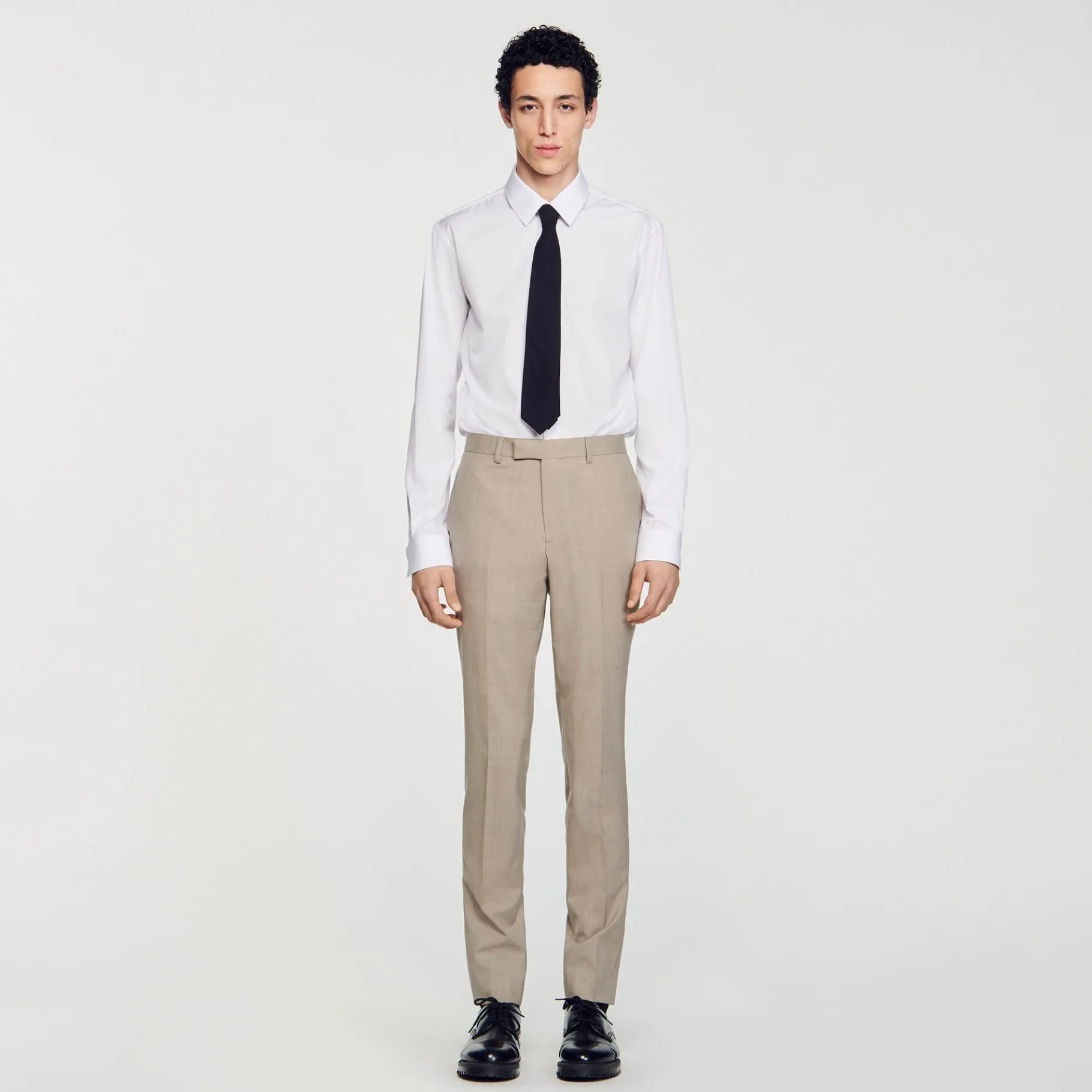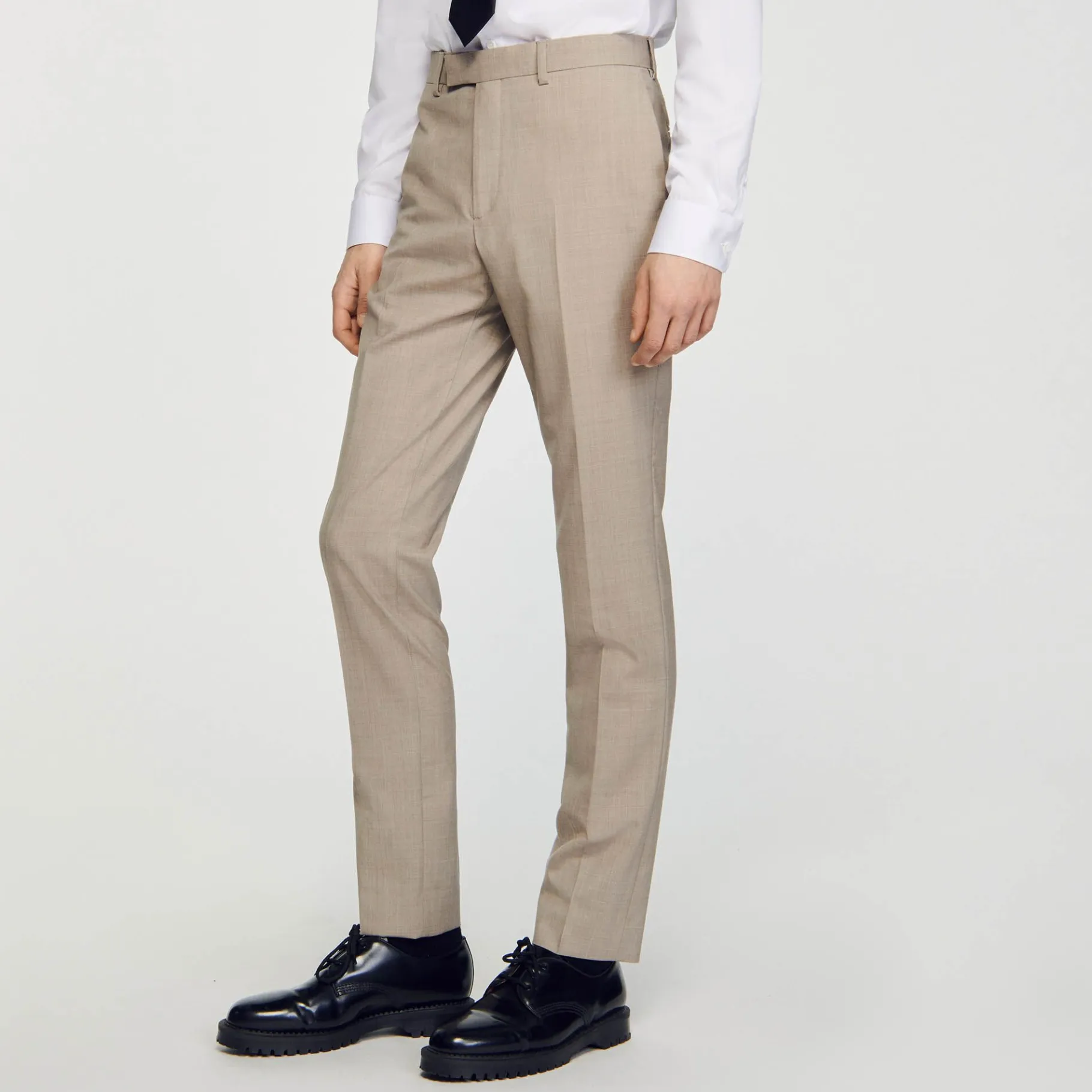 Calça De Terno De Lã Com Cordão Elástico Na Cintura.
