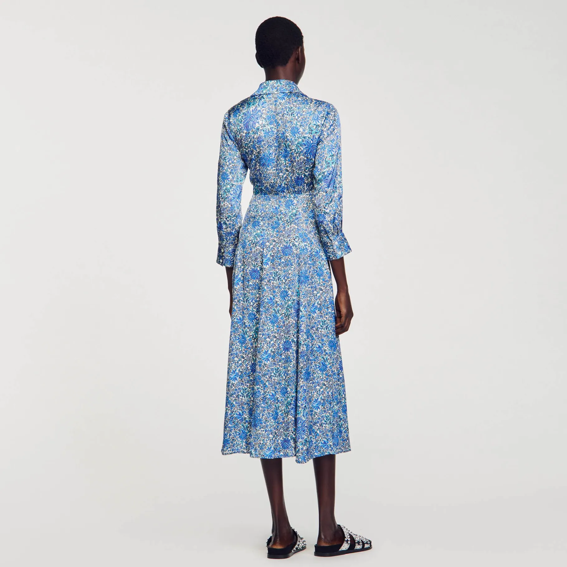 - Vestido Feminino Camisa Midi De Cetim Sandro