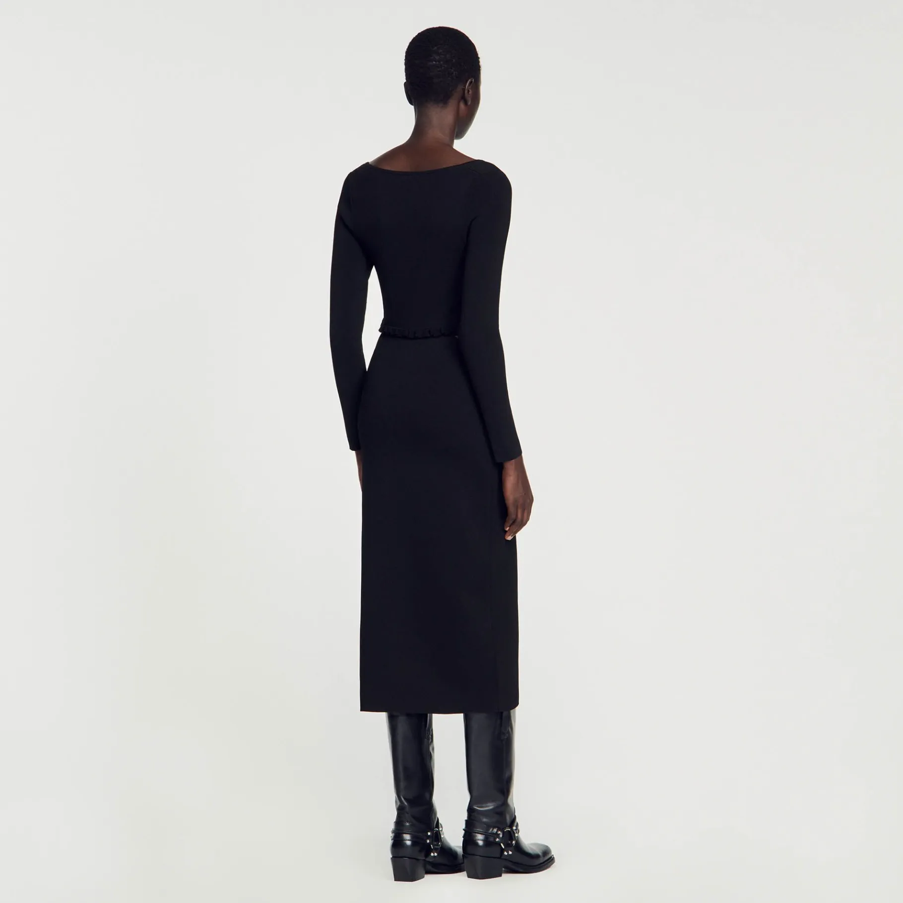 - Vestido Midi Em Malha Canelada Sandro Femme