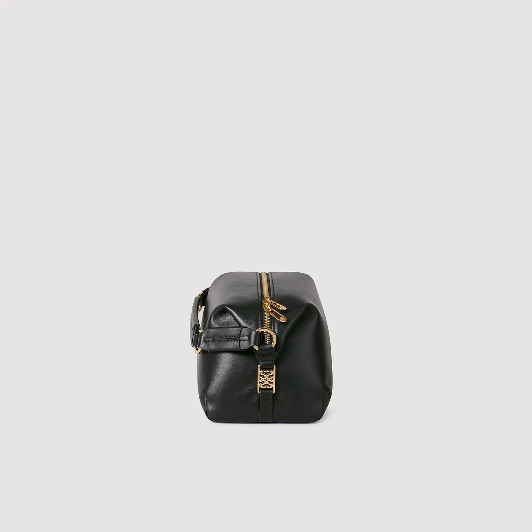 Bolsa Confeccionada Em Couro, Com Alça Curta, Fechamento Em Zíper, Alça Removível E Detalhe De Fivela De Metal Com Duplo S Nas Laterais.