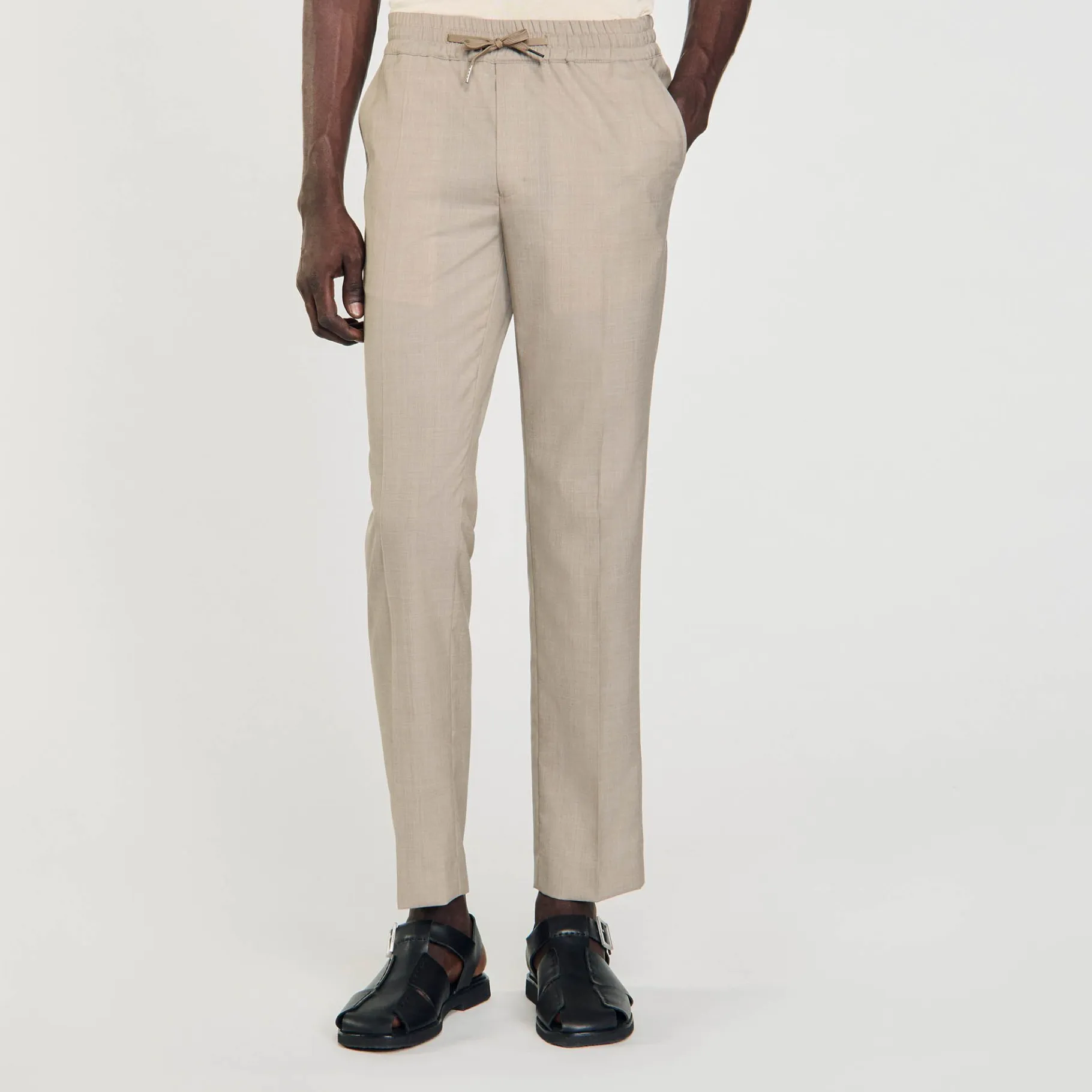 Calça Reta Com Cintura Elástica Com Cordões E Bolsos Nas Laterais.