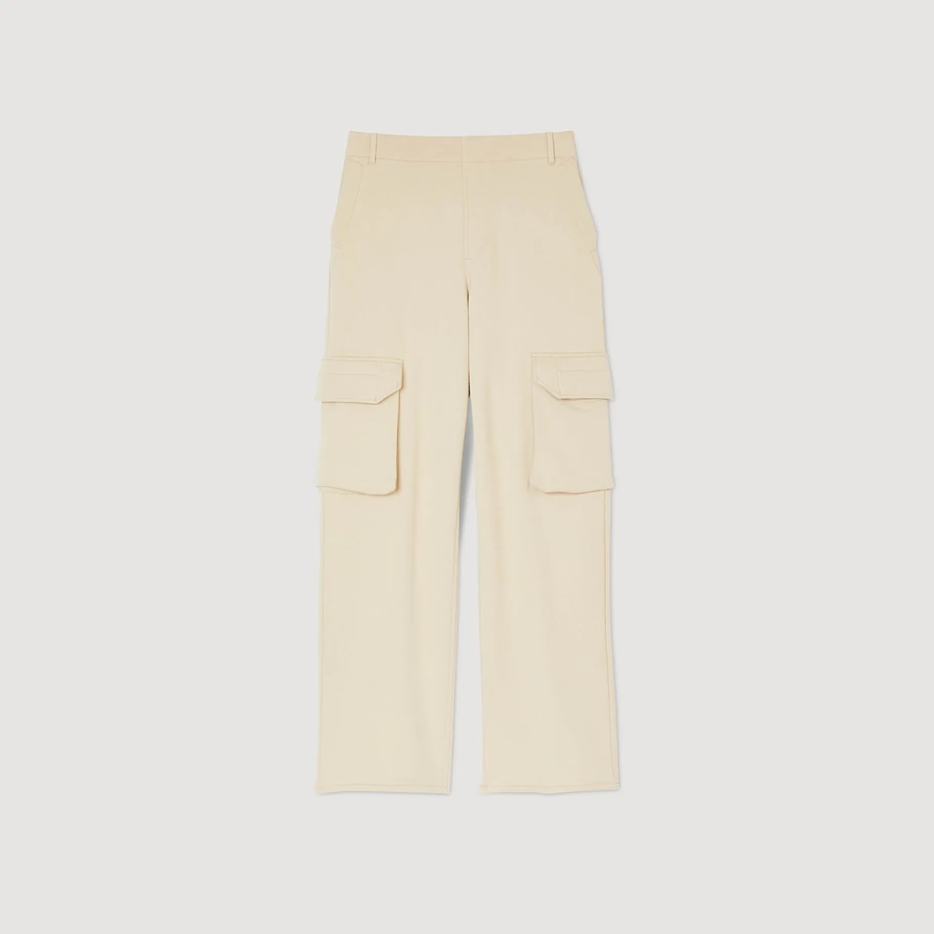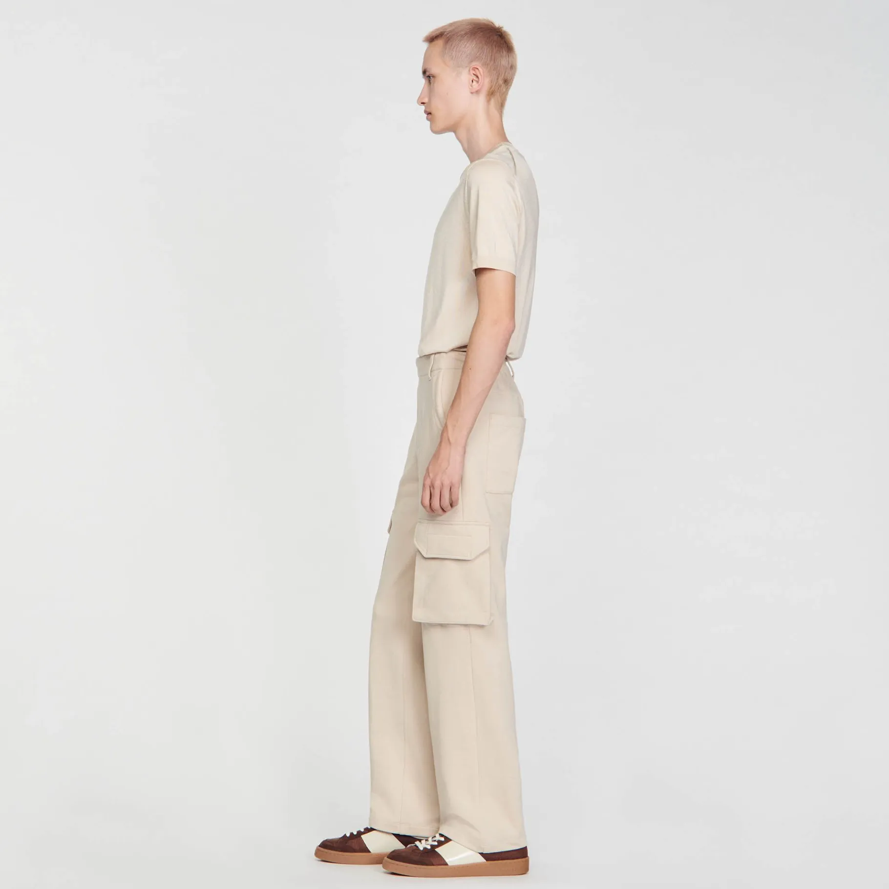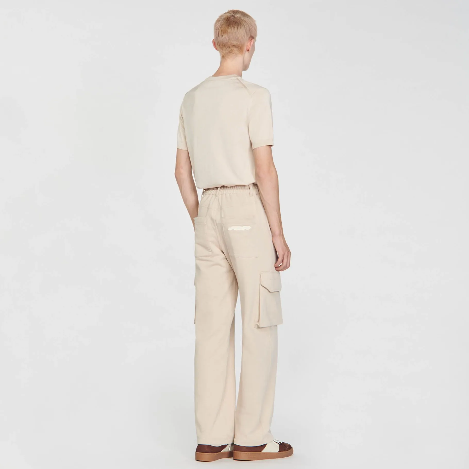 Calça De Moletom De Lã Escovada Com Bolsos Cargo Nas Laterais E Bordado Sandro.