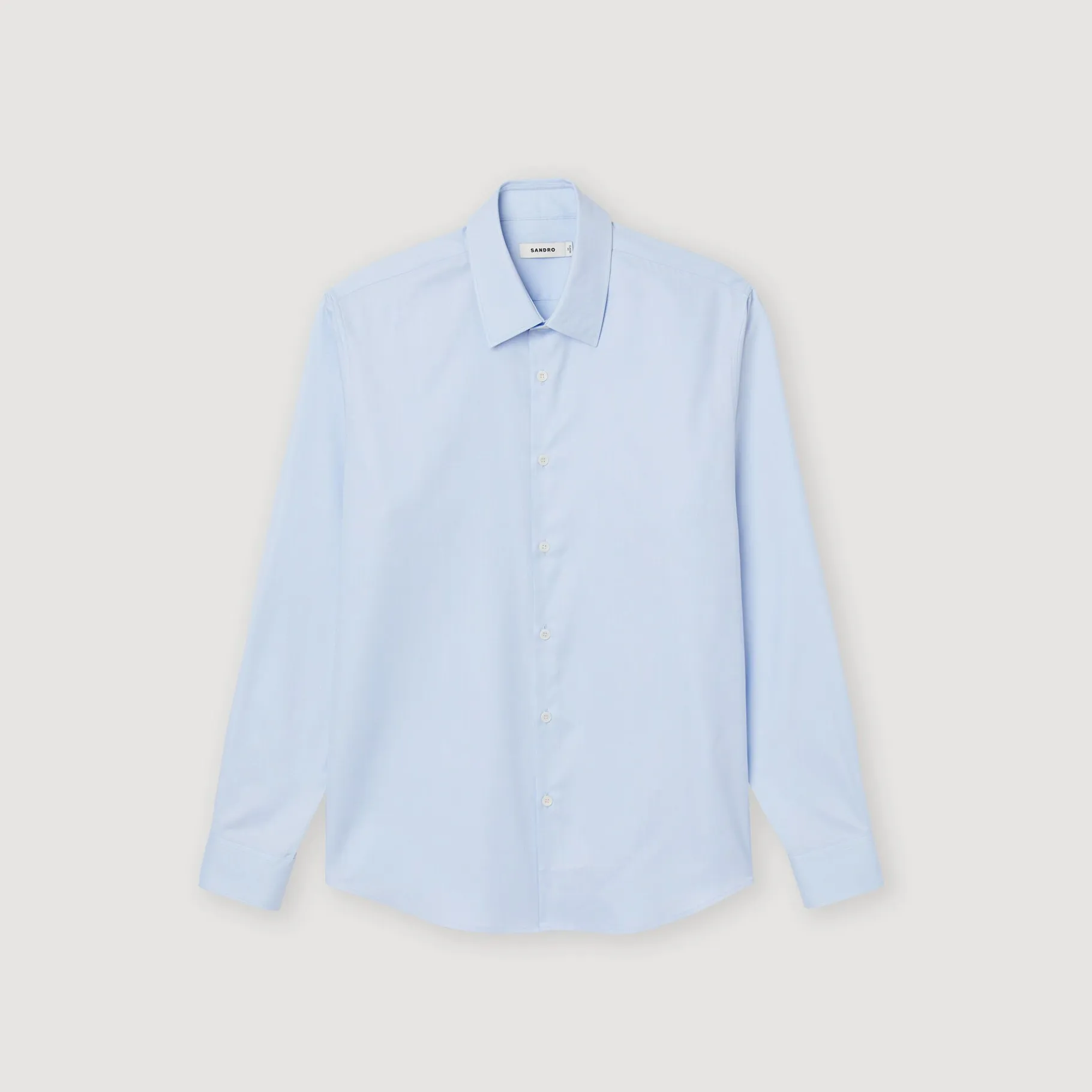 Camisa De Algodão Com Mangas Compridas, Punhos Abotoados, Gola Clássica E Fecho De Botão.