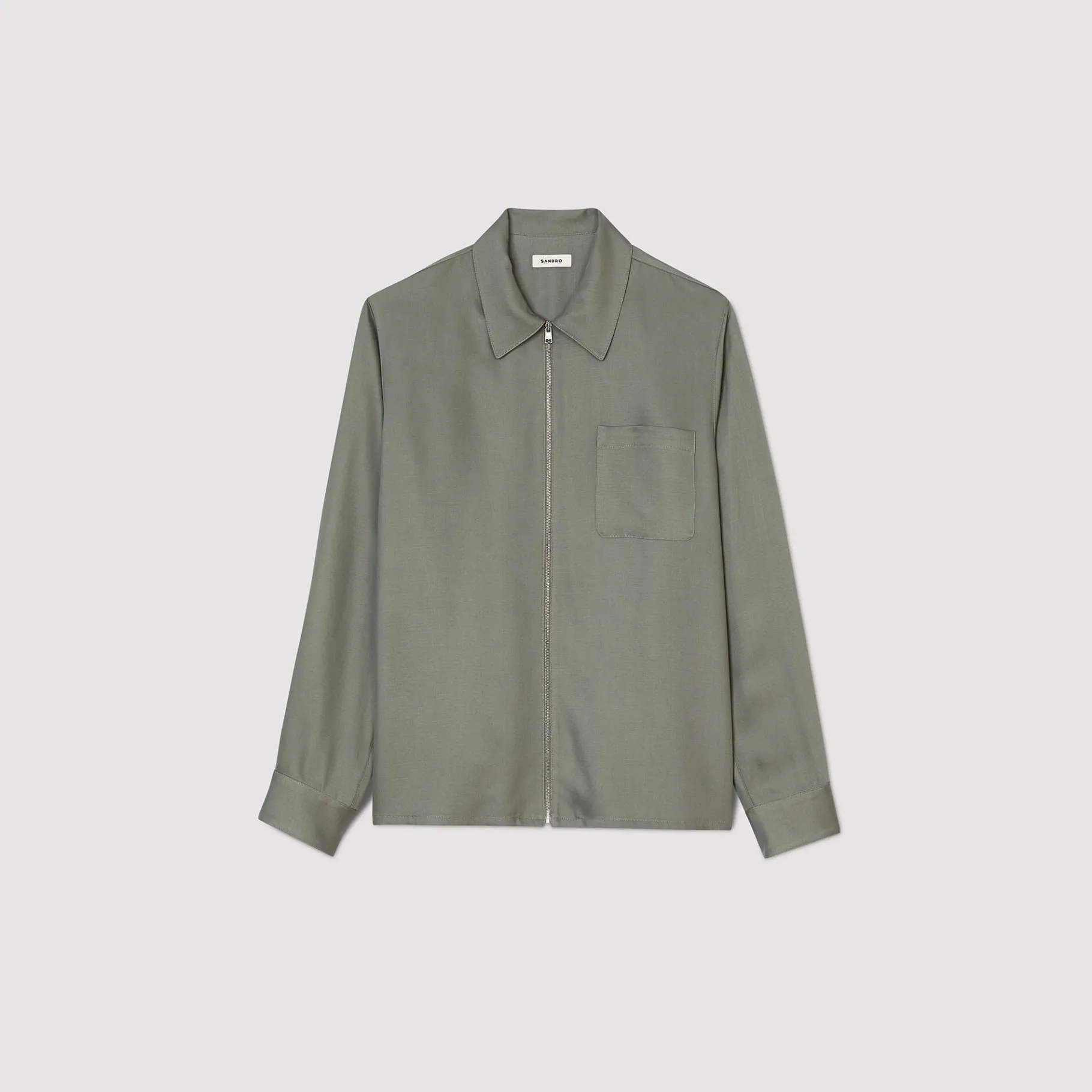Camisa Fluida De Manga Comprida Com Gola Clássica E Fecho De Correr.