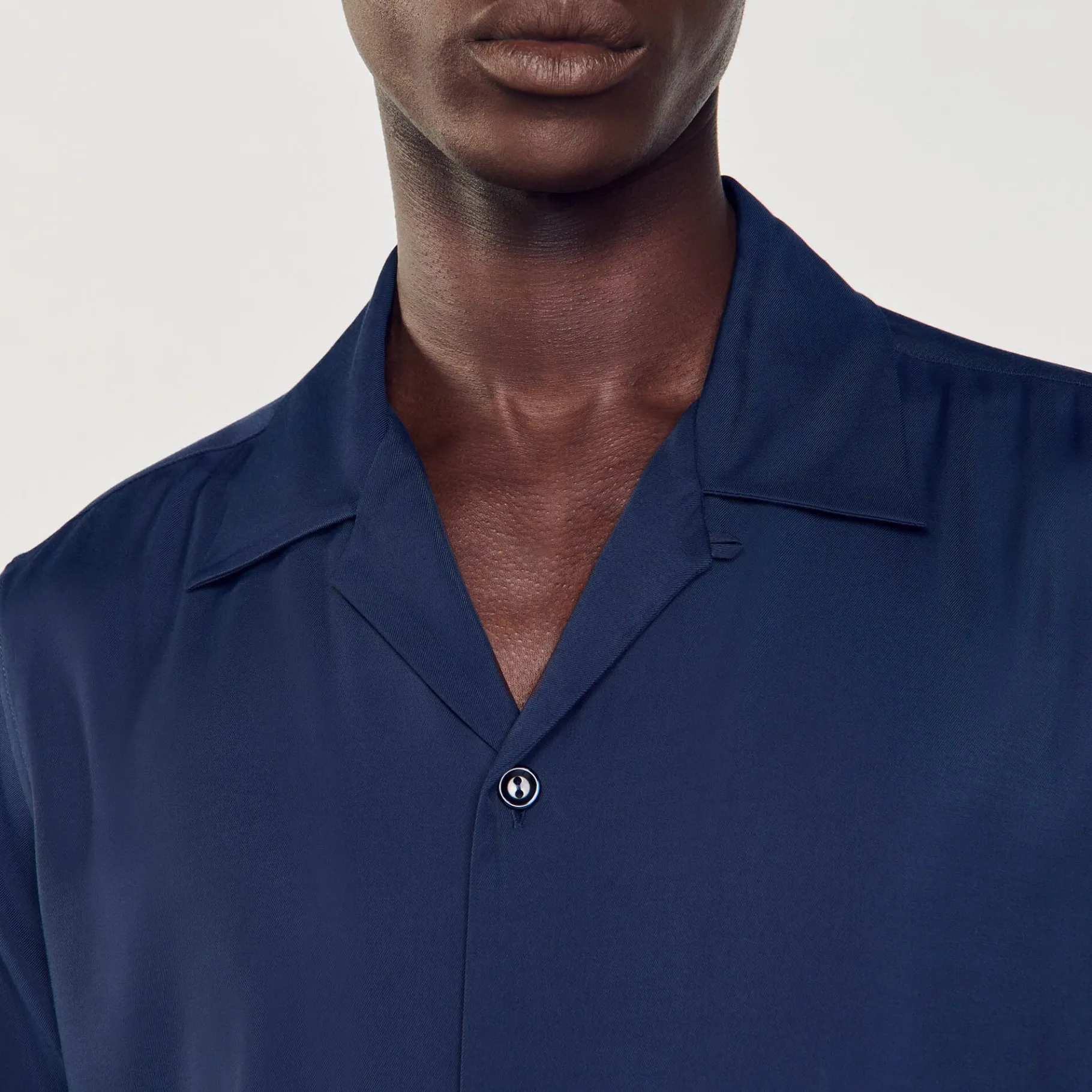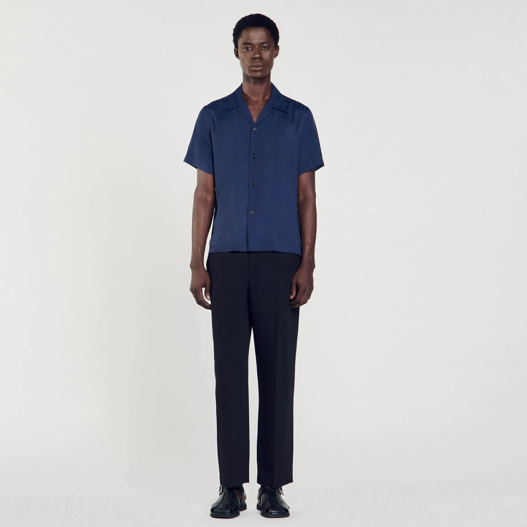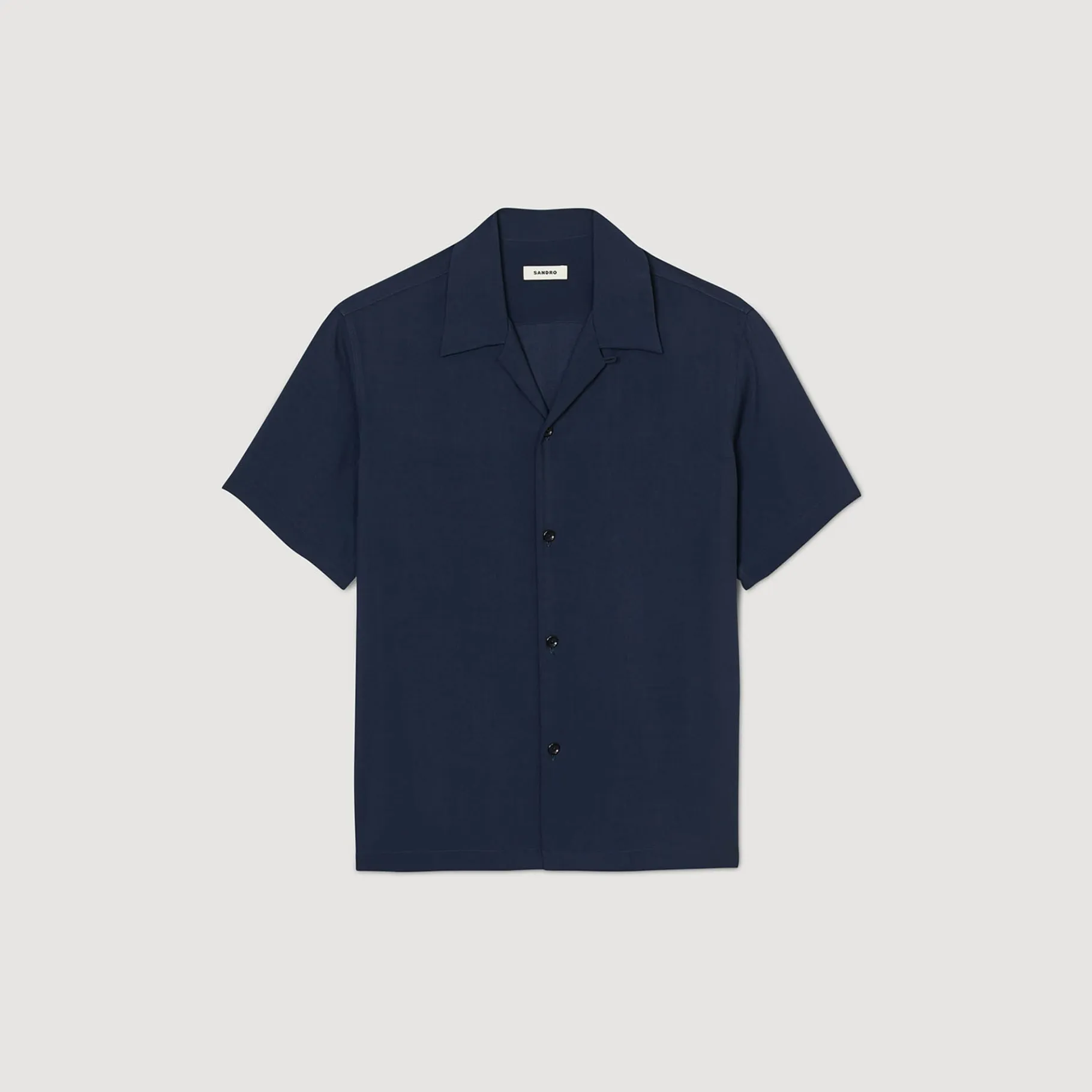 Camisa De Manga Curta Com Gola Italiana E Fecho De Botão.