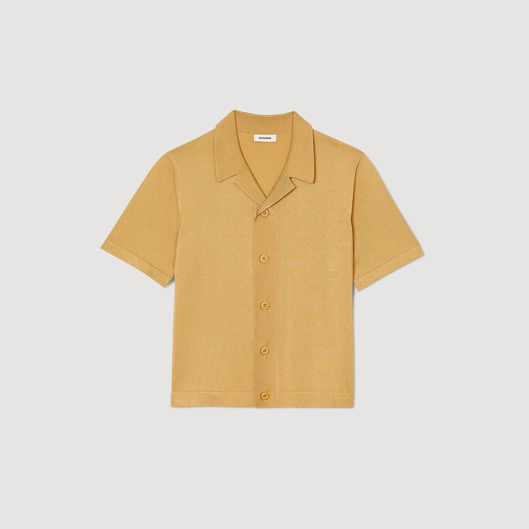 Camisa Fluida De Manga Curta E Gola Estilo Tubarão, Com Fecho De Botão.