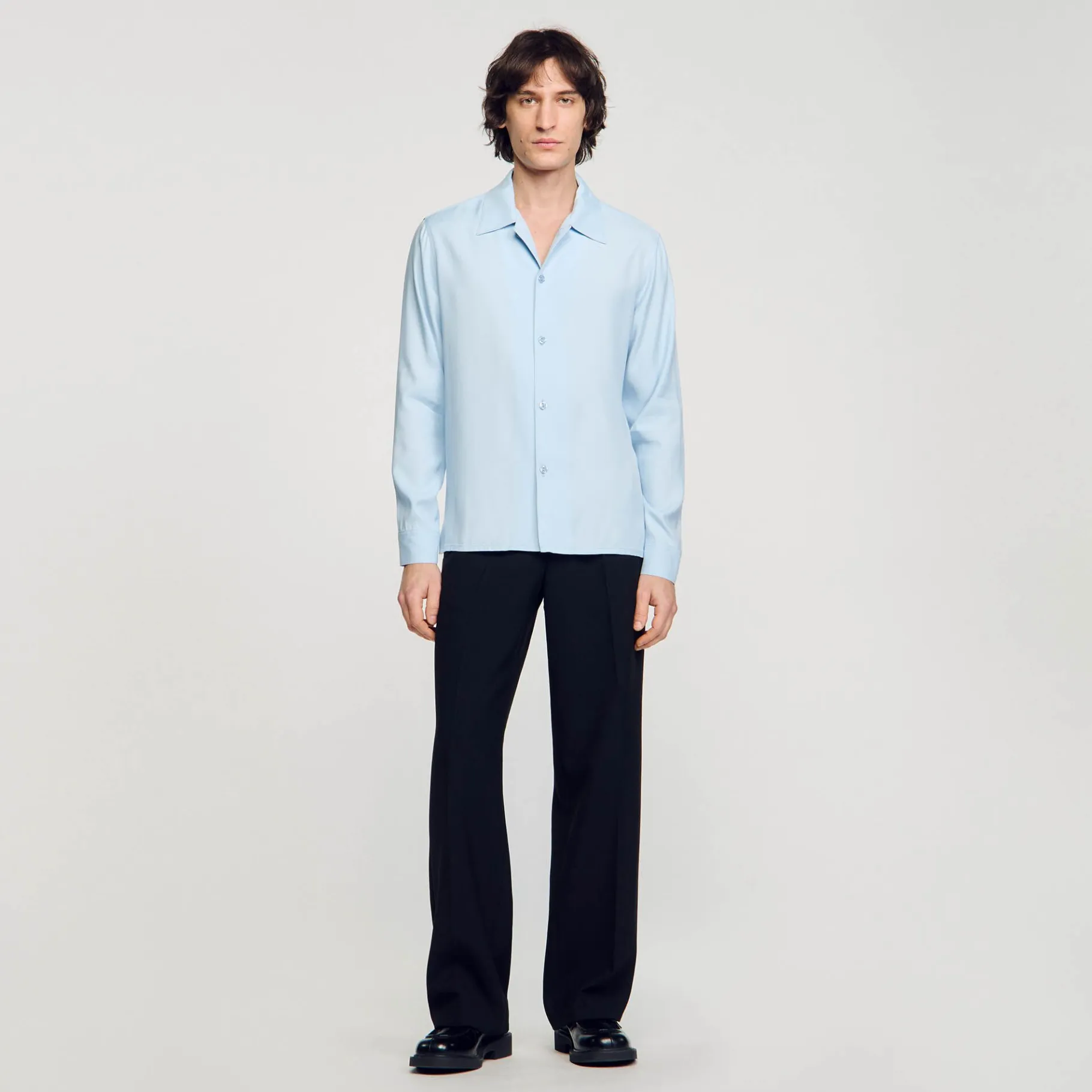 Camisa Fluida Com Mangas Compridas, Punhos Abotoados, Gola Italiana E Fecho De Botão.