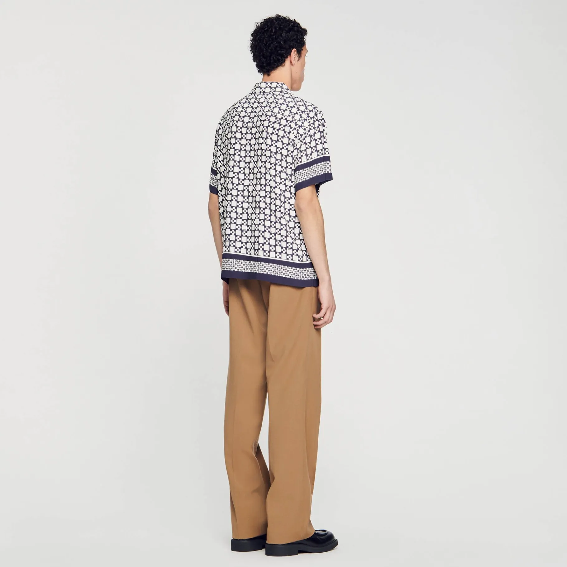 Camisa Fluida Com Estampa Square Cross, Gola Italiana, Manga Curta E Fecho De Botão.