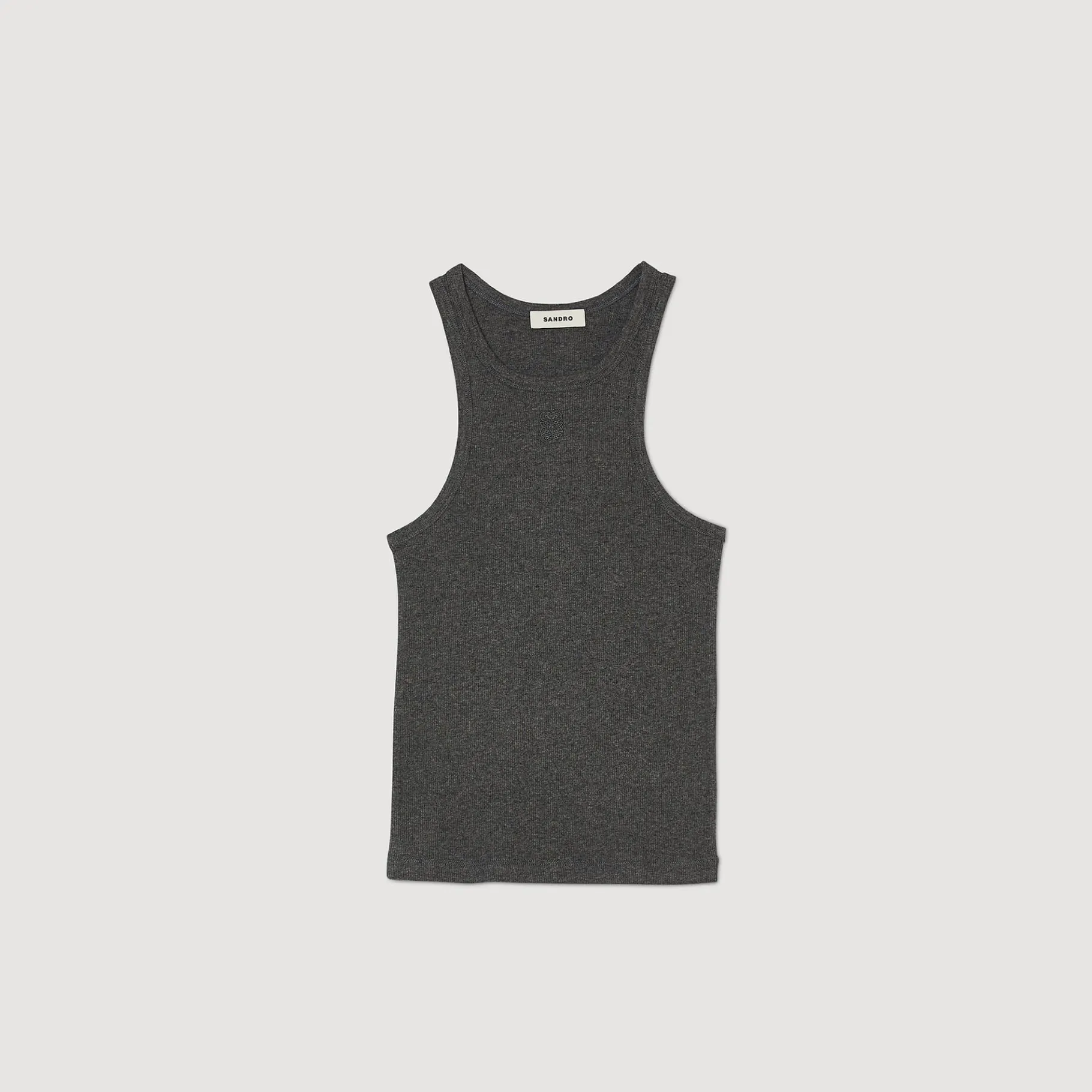 Regata Curta Com Decote Redondo E Cavas Americanas, Decorada Com Bordado Duplo S No Peito.