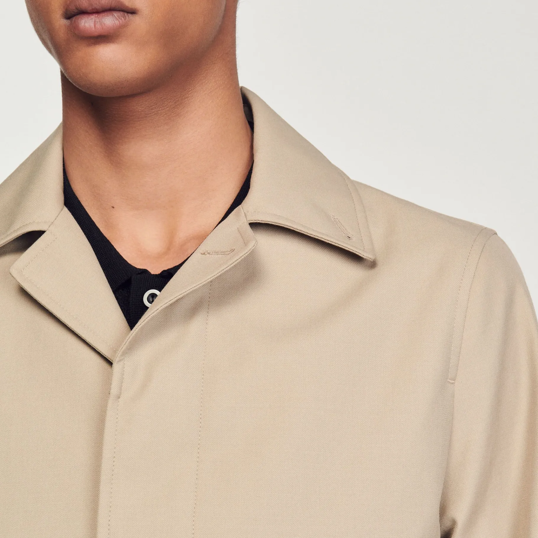 Casaco Impermeável Semi-Longo Com Manga Comprida E Gola De Camisa Com Fecho De Botão.