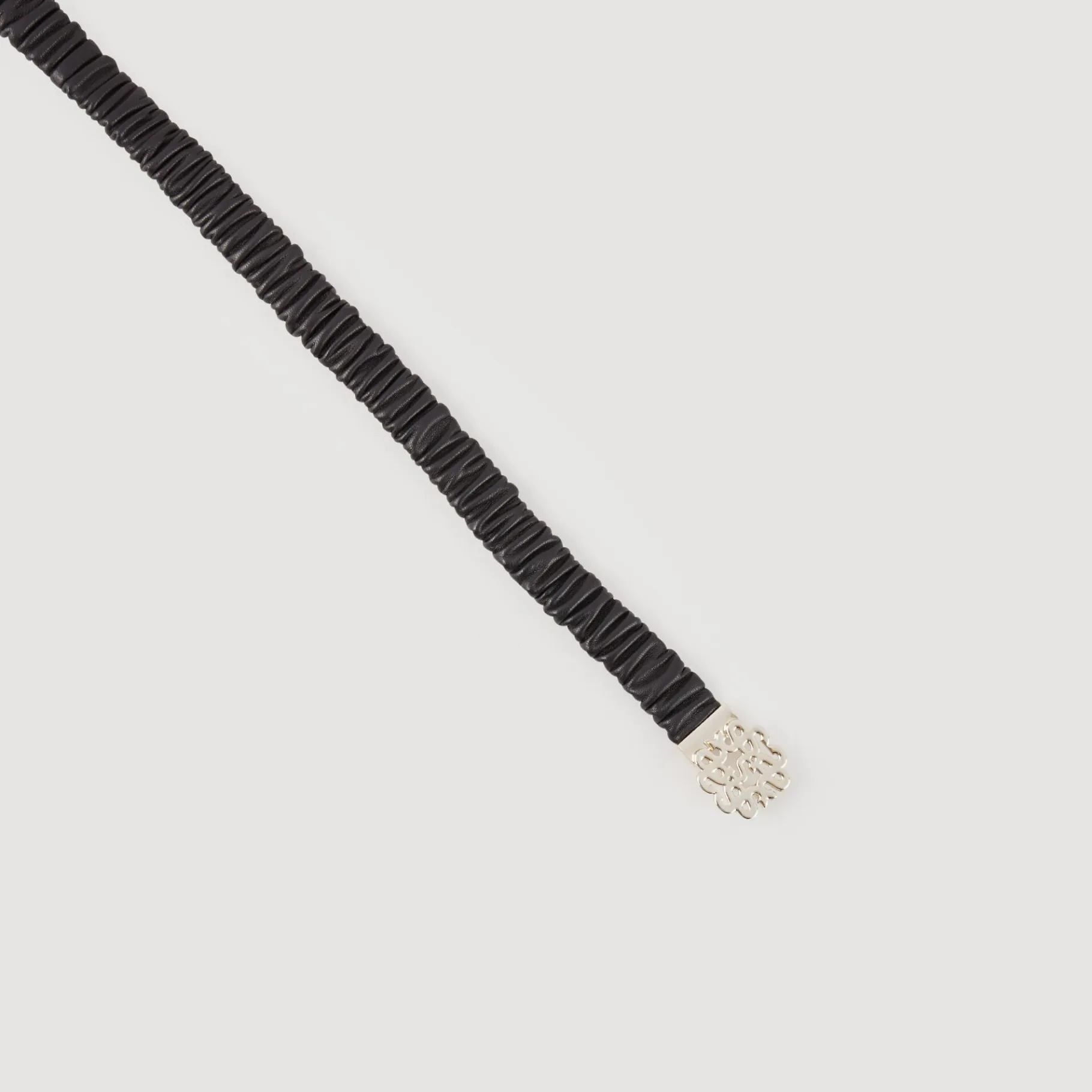 Cinto Elástico De Couro Franzido Com Fivela Com Logotipo Duplo S