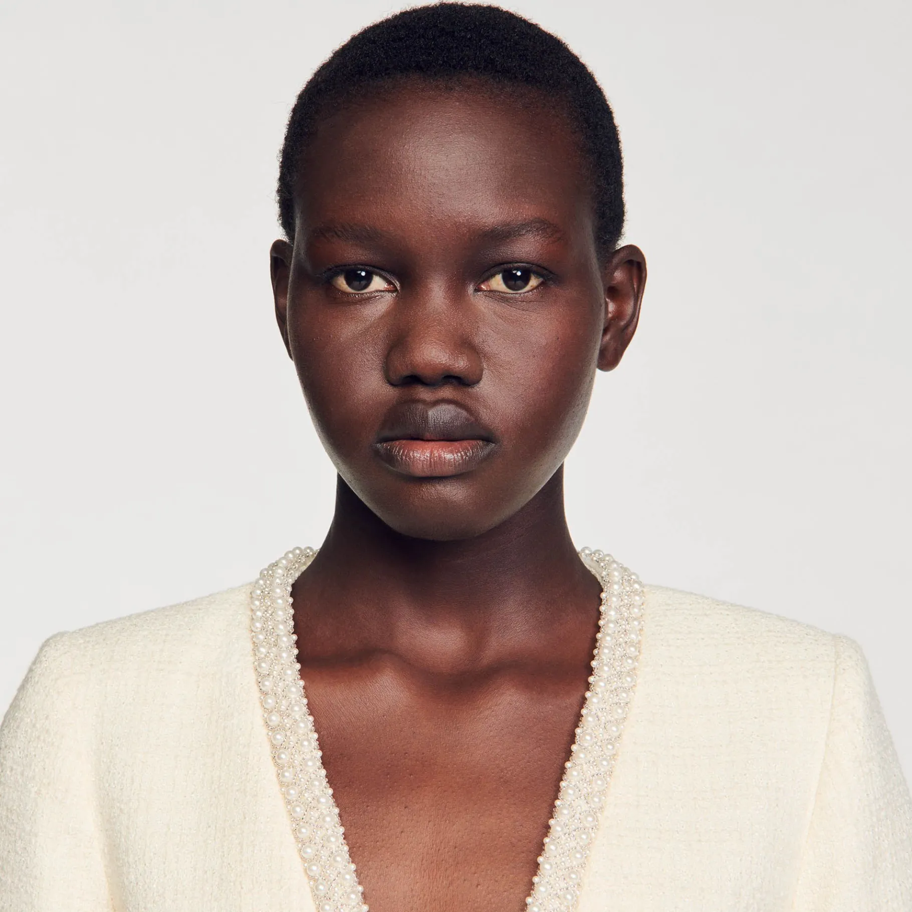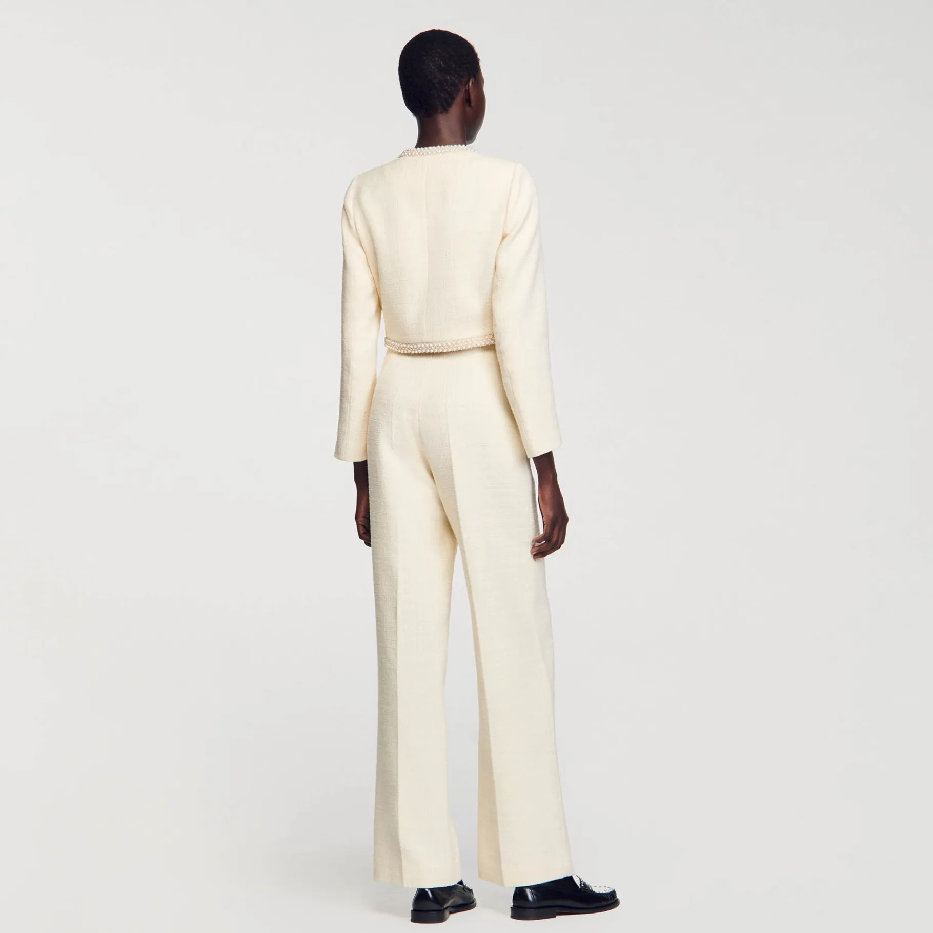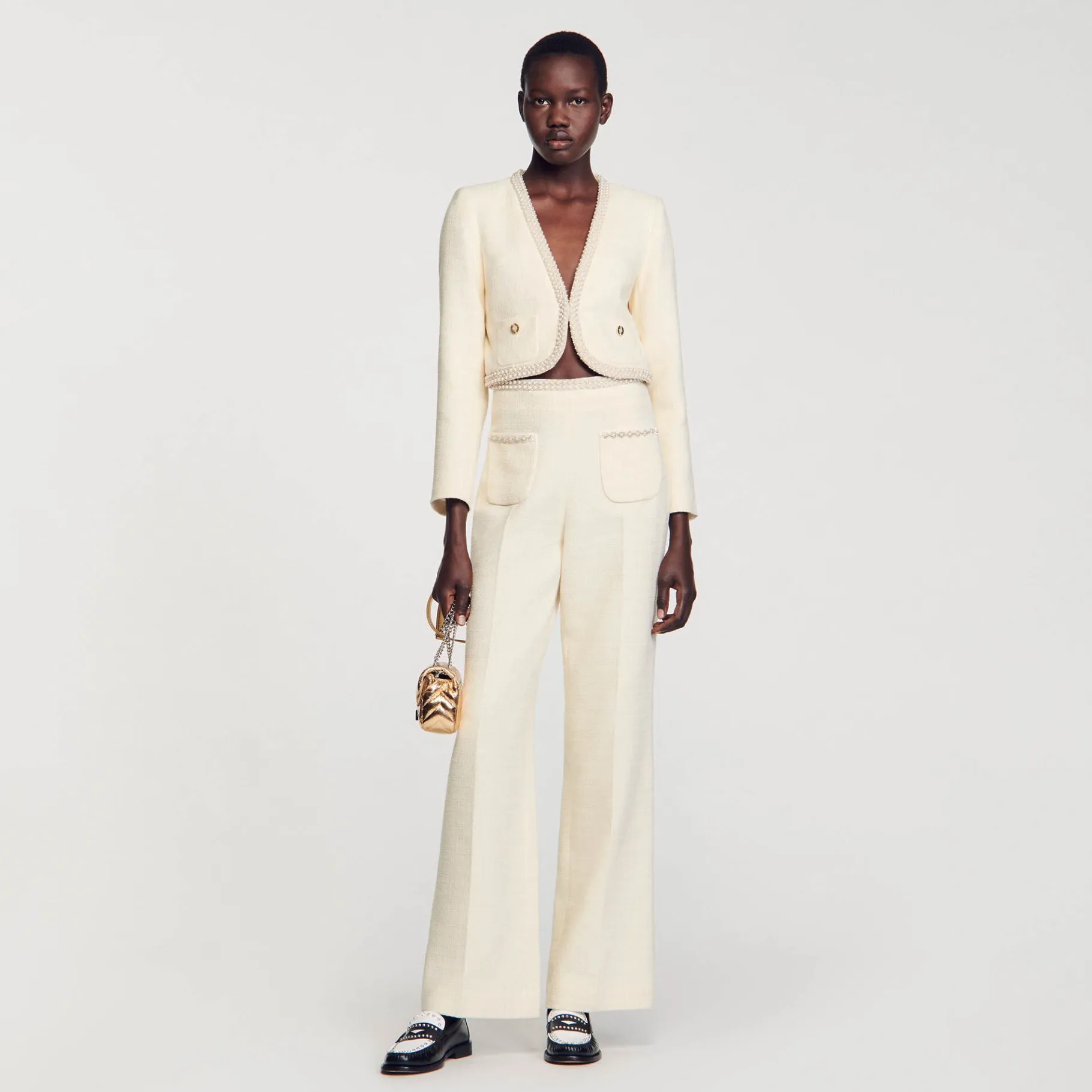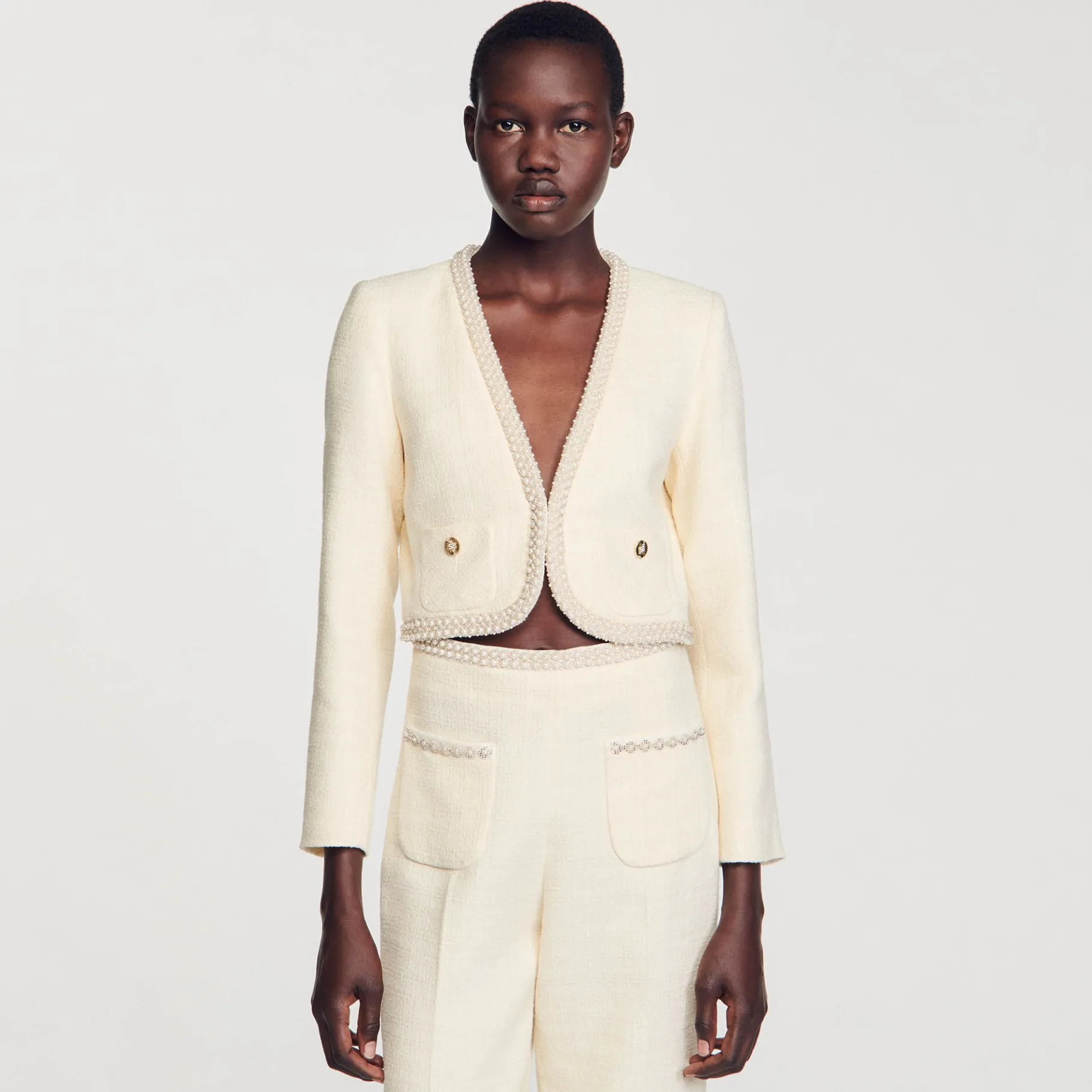 Jaqueta Curta De Sarja Com Mangas Compridas, Bolsos De Aplicação E Divisas De Pedra.
