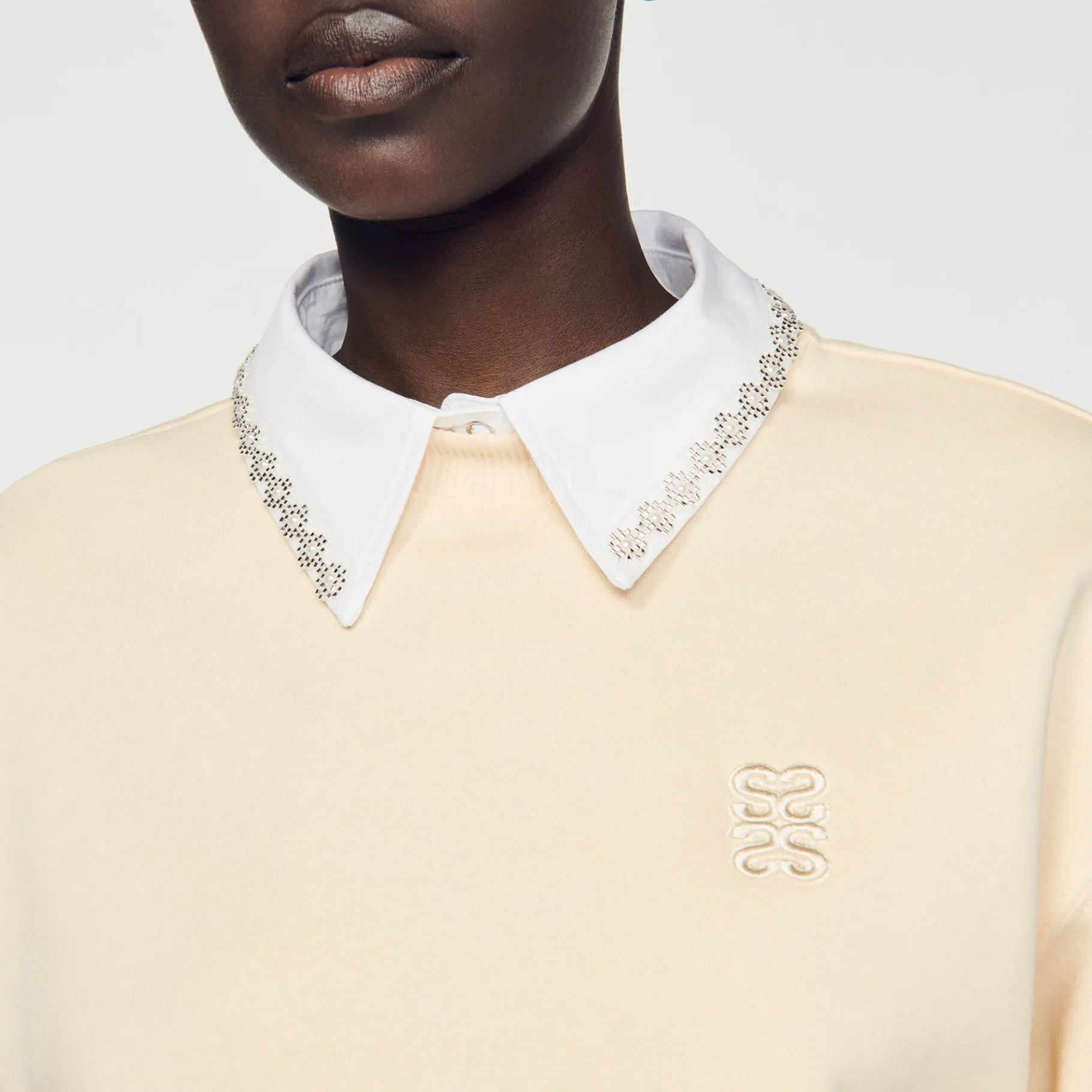 - Gola Da Camisa Adornada Com Strass