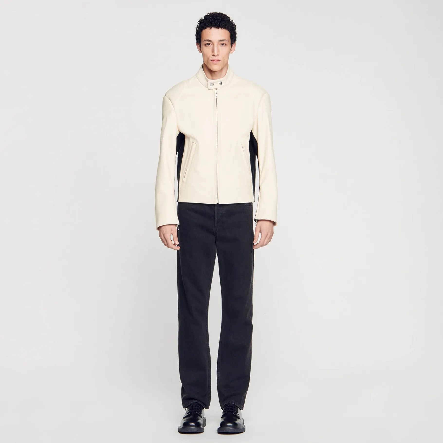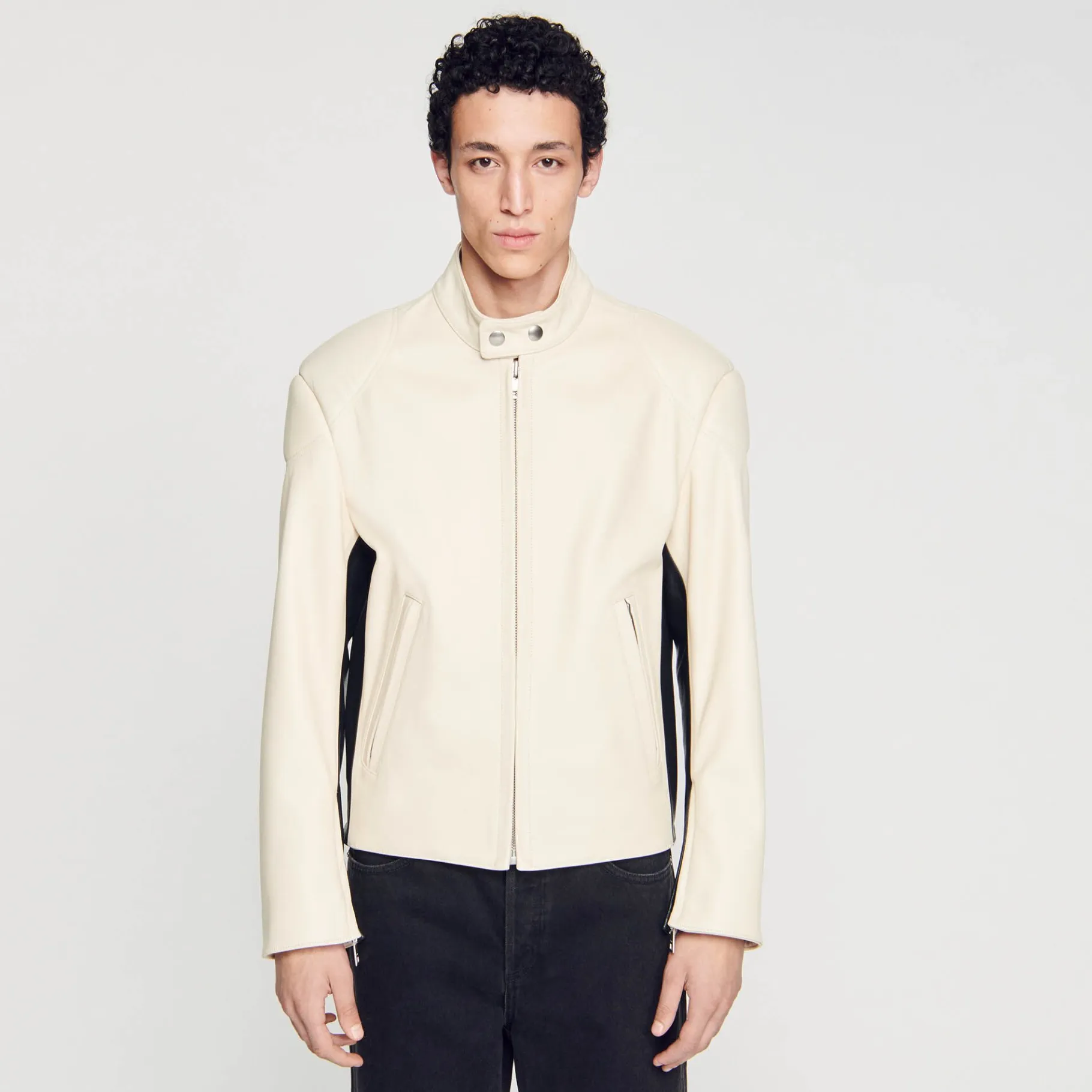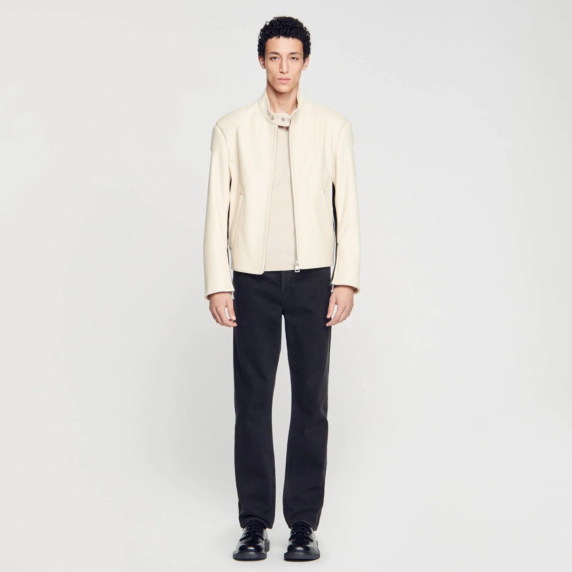 - Jaqueta Biker De Couro Liso Sandro Homme