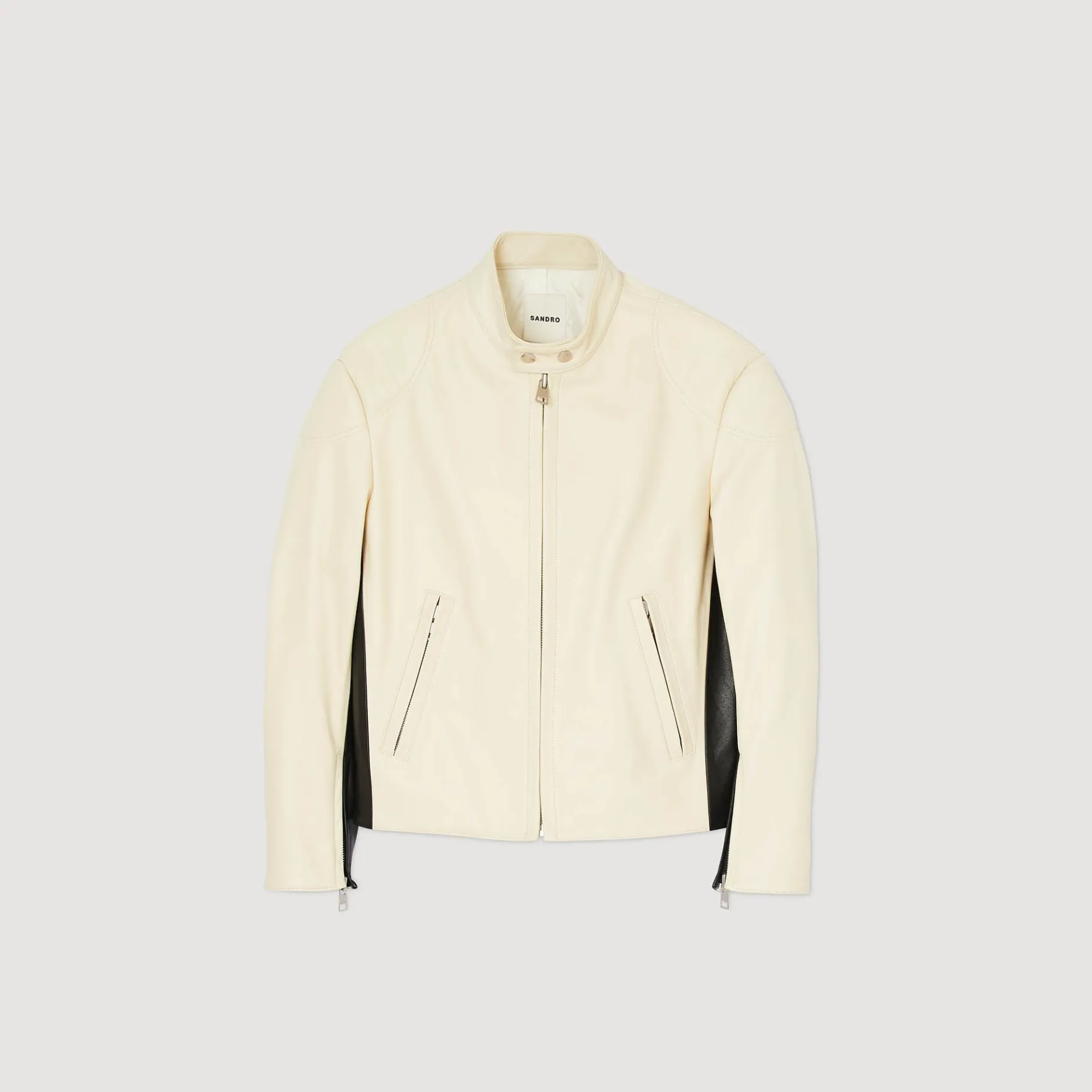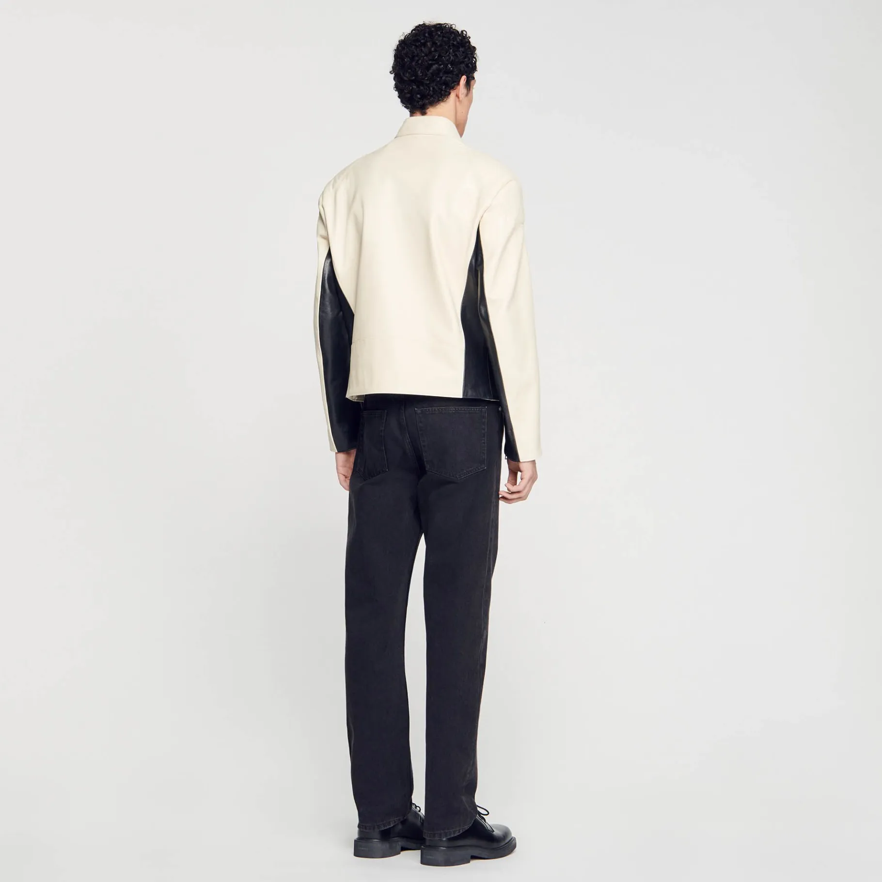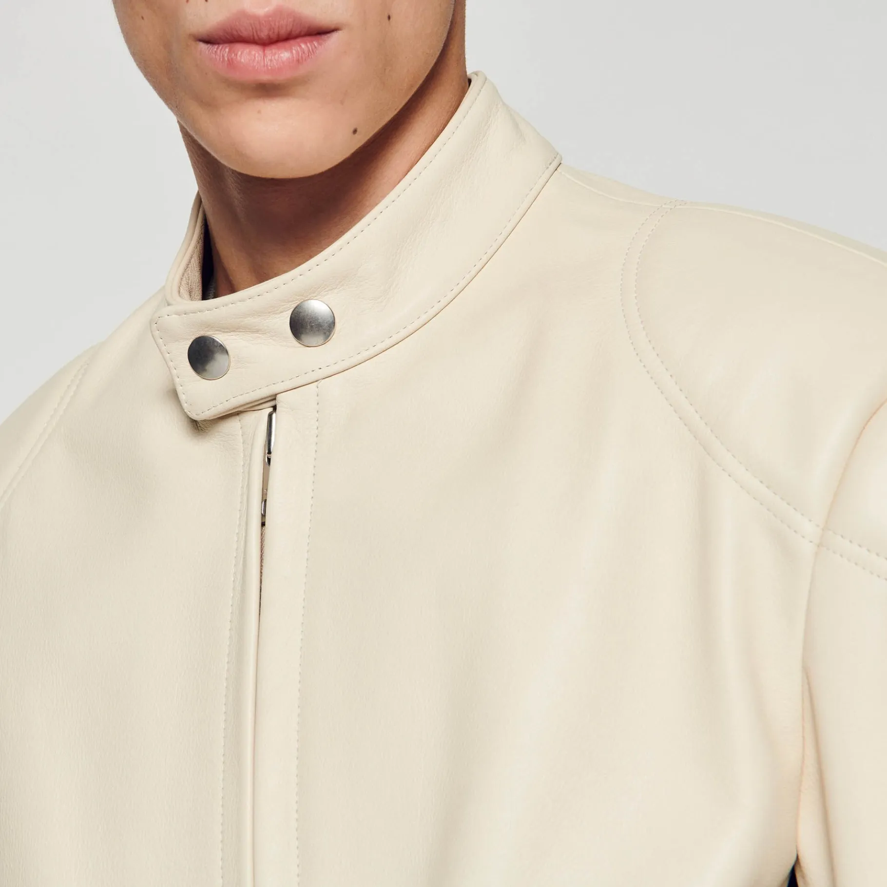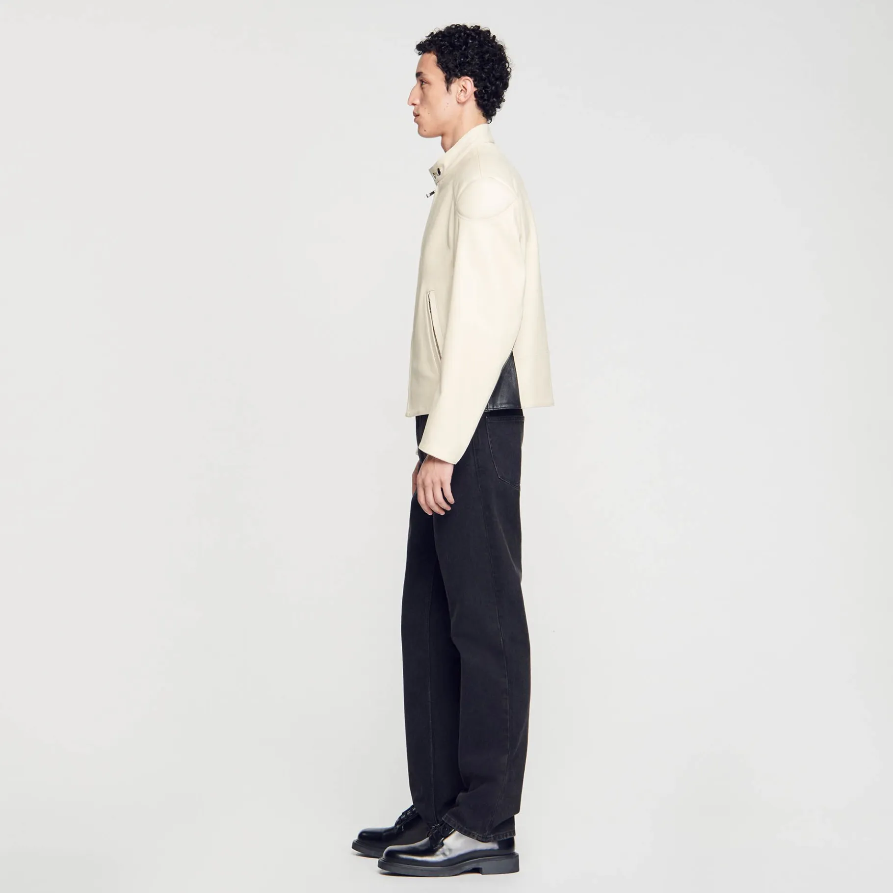 - Jaqueta Biker De Couro Liso Sandro Homme
