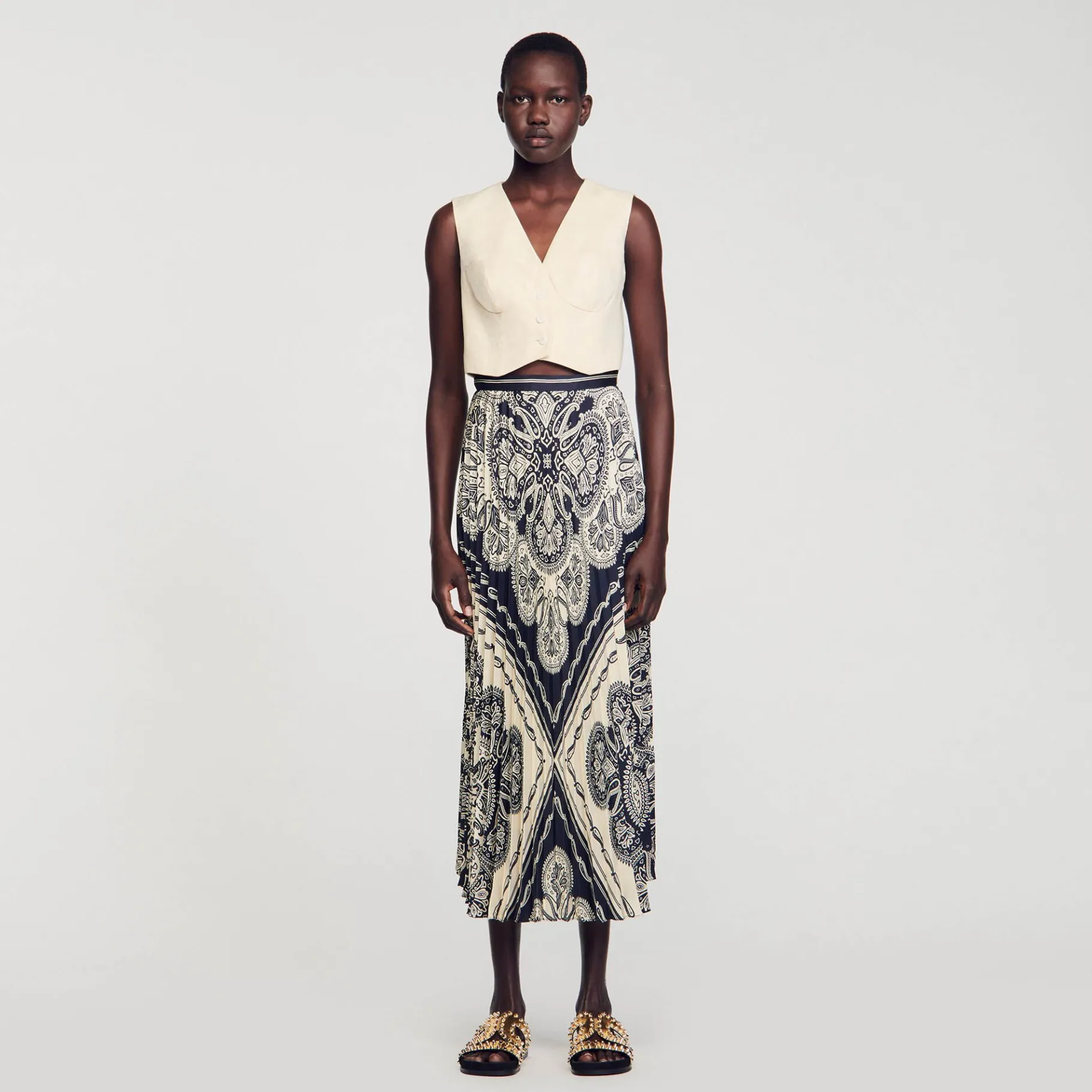 - Sandro Saia Feminina Longa Plissada
