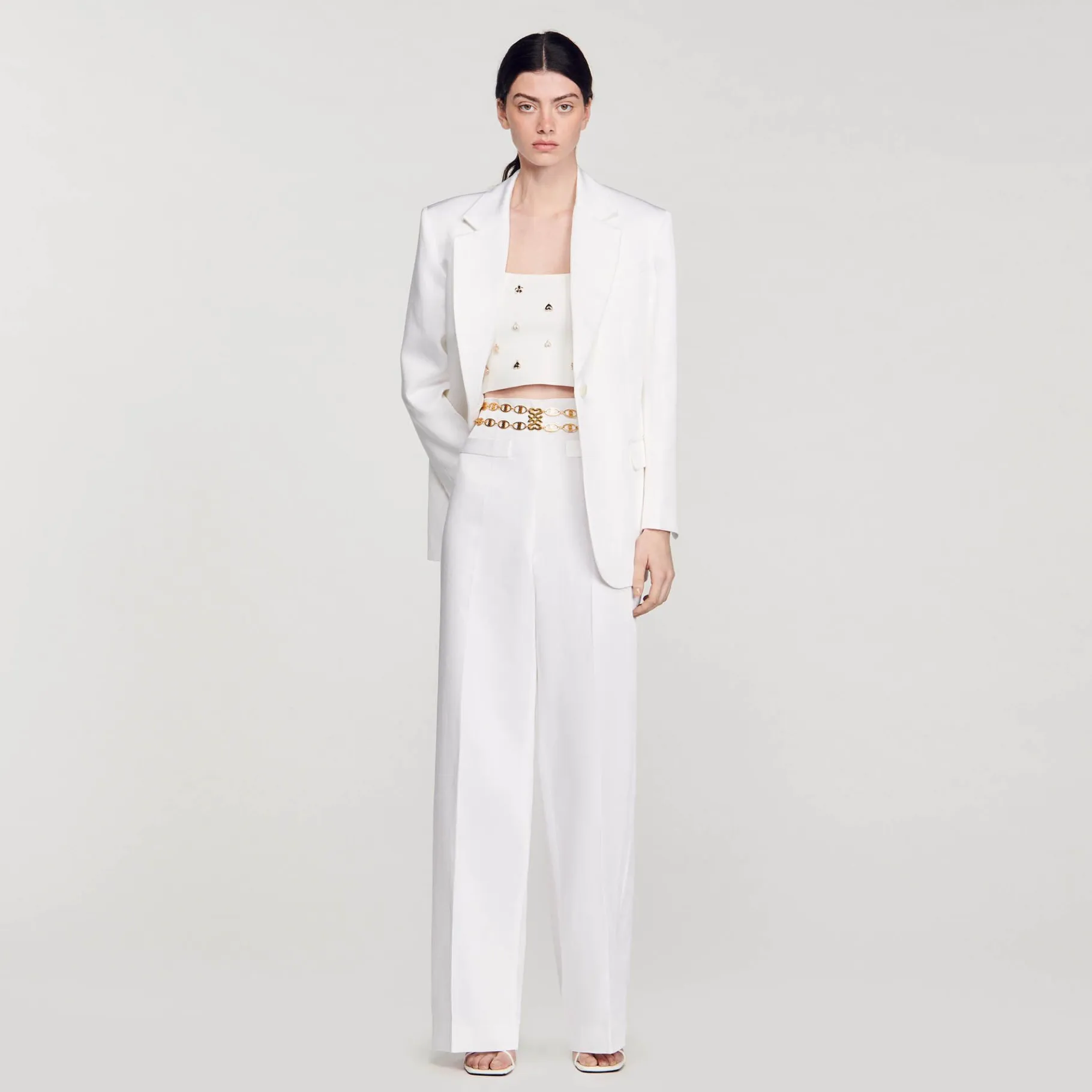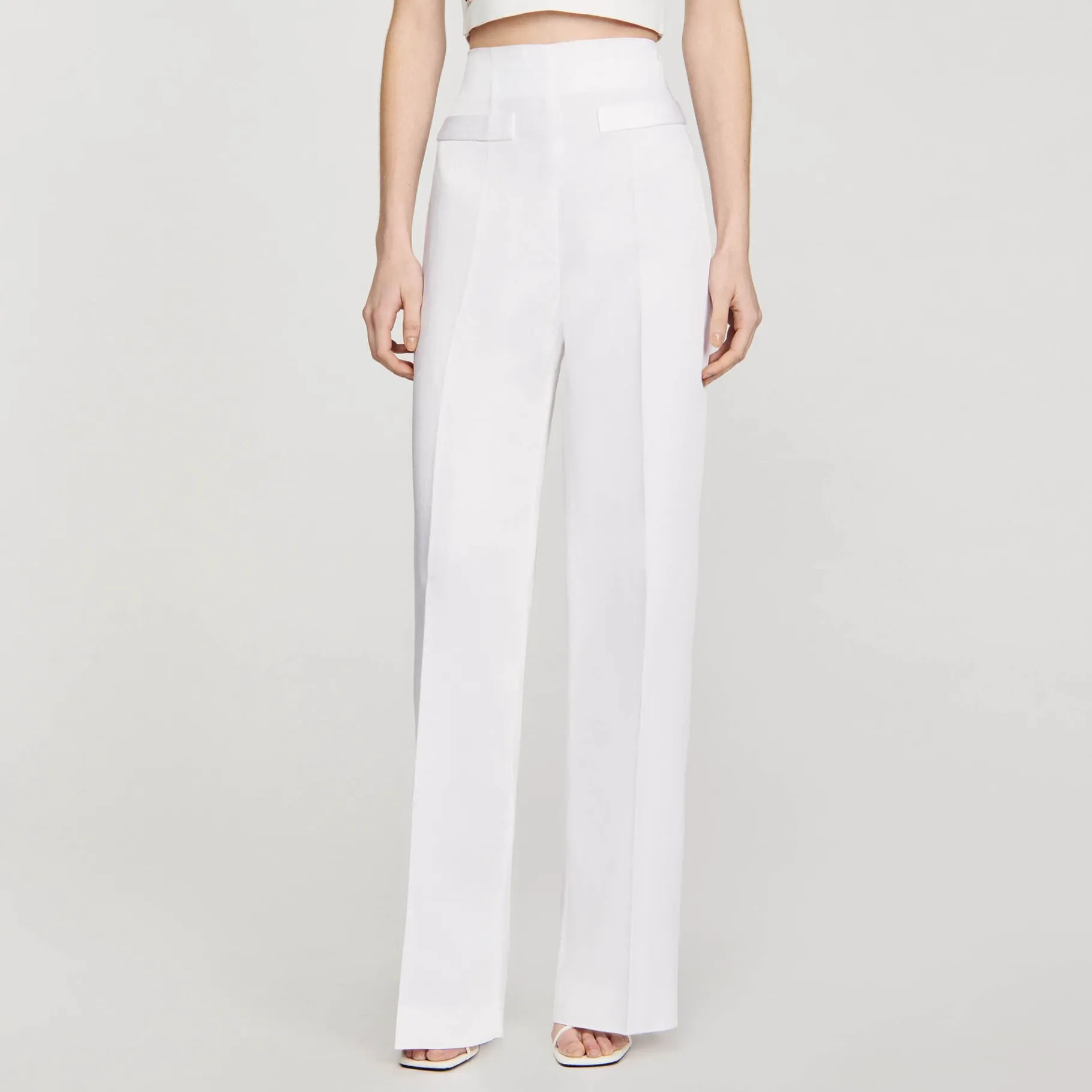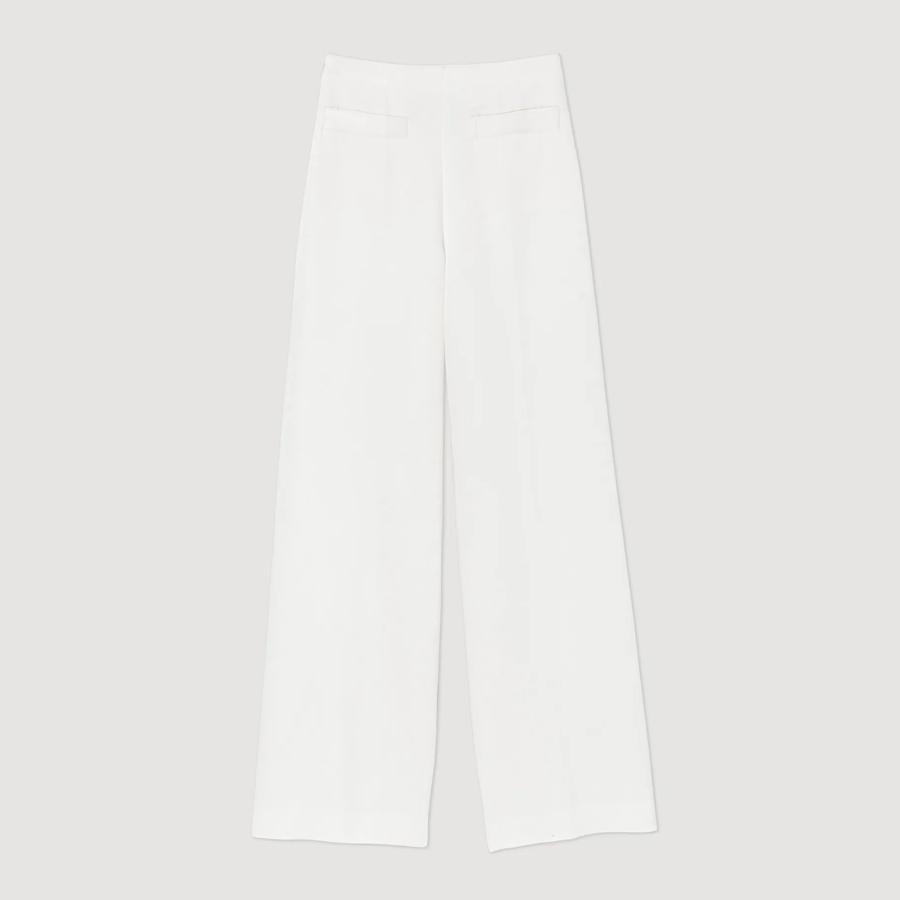 Calças Largas De Cintura Alta Com Prega Esticada, Grandes Bolsos De Debrum E Fecho De Correr Lateral.
