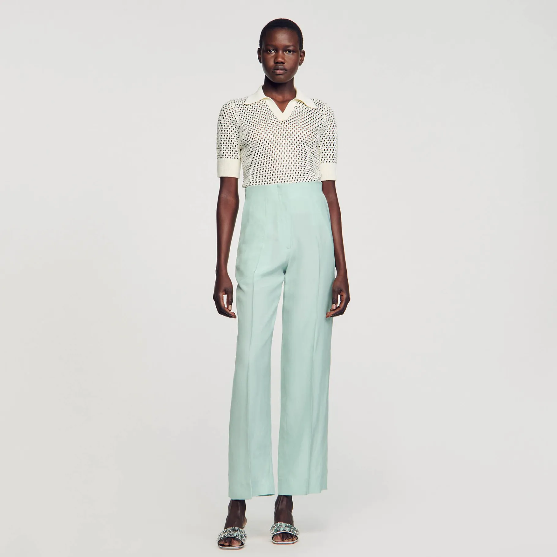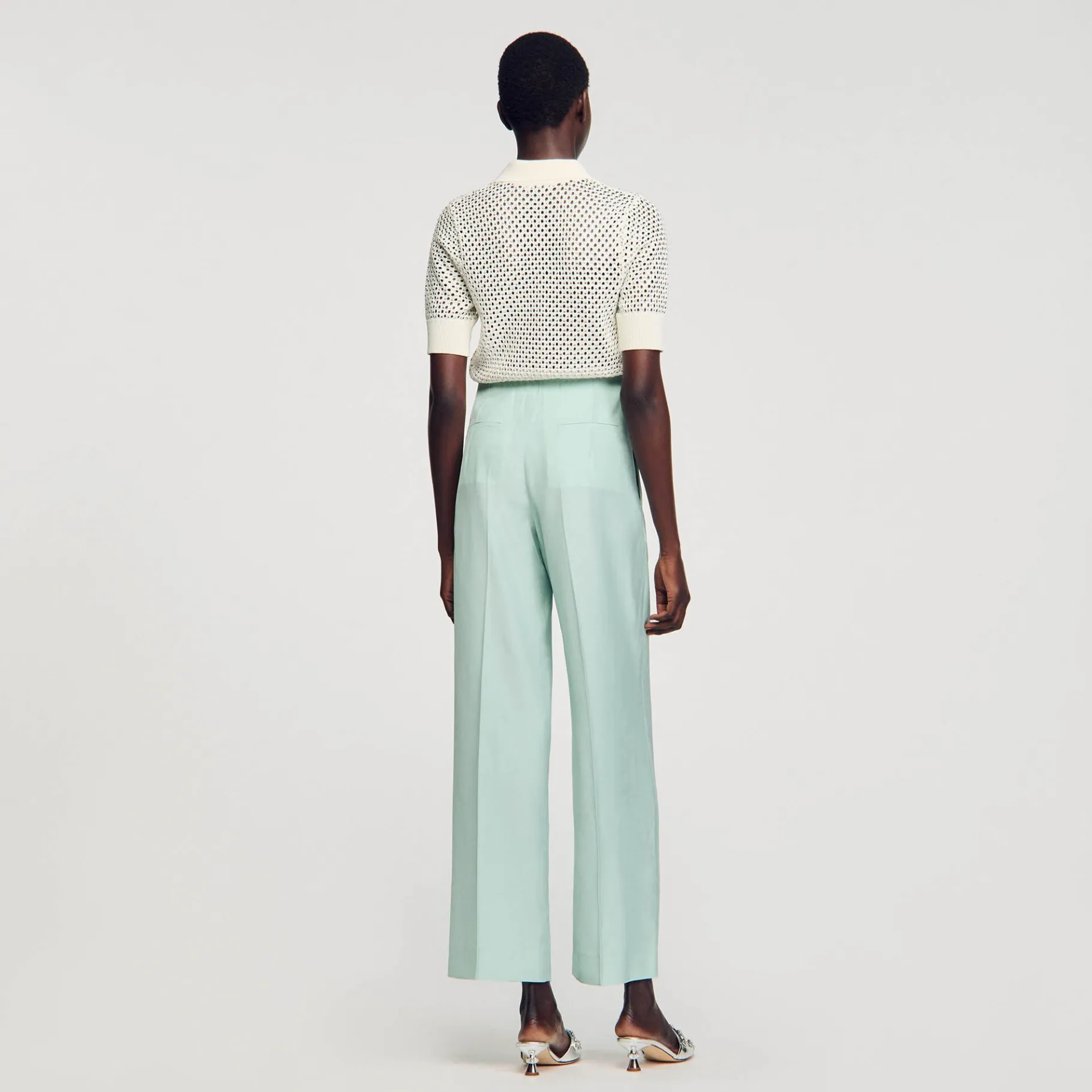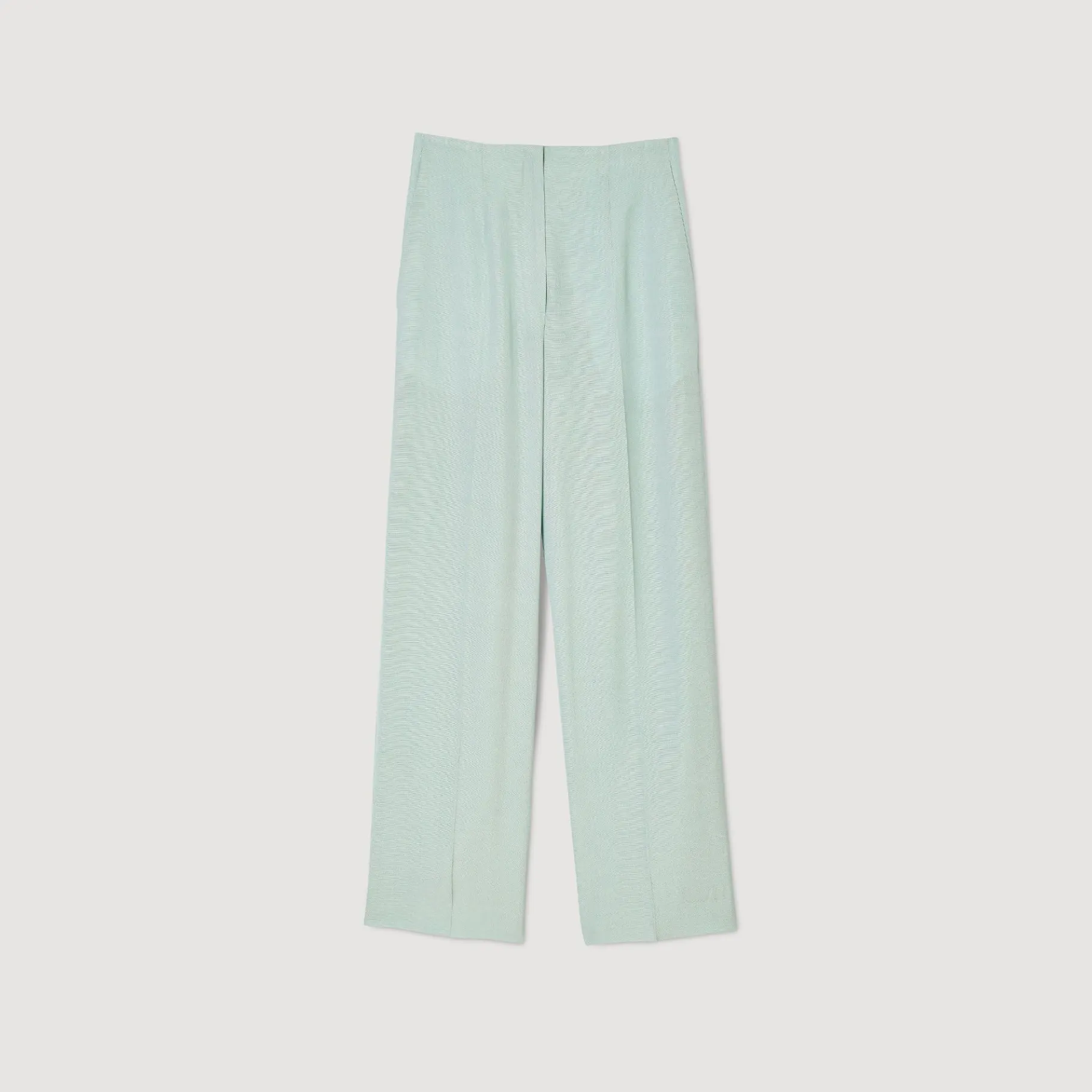 Calça Larga De Cintura Alta, Justa Na Cintura, Com Bolsos Italianos Nas Laterais.